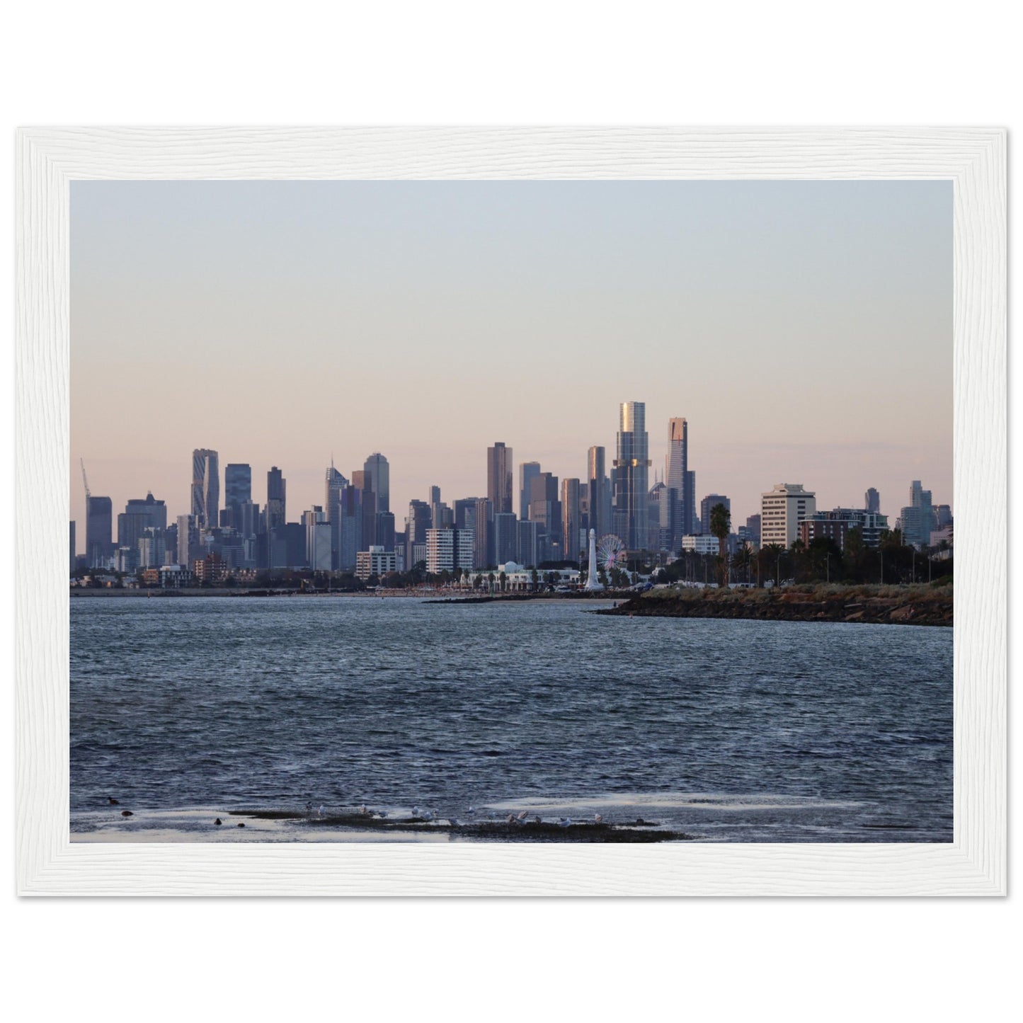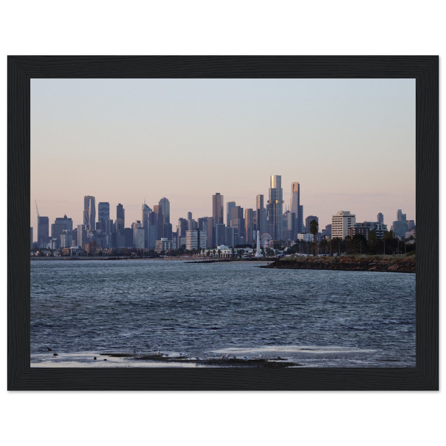 Melbourne skyline at dusk, Australia - Premium Matte Paper Wooden Framed Poster