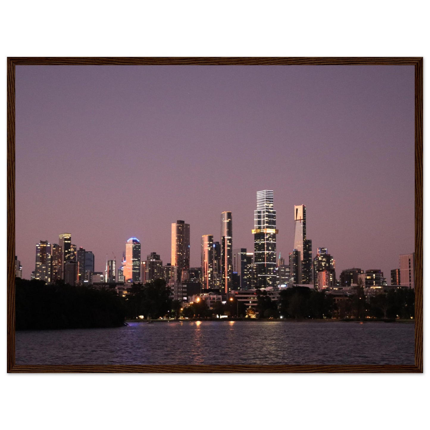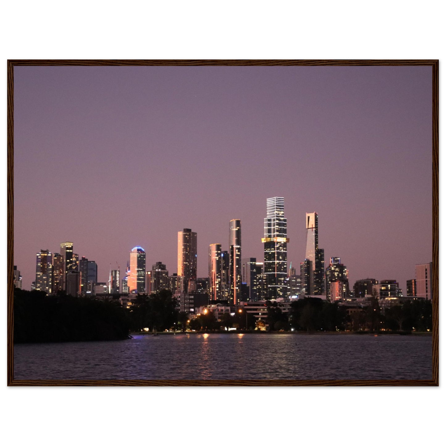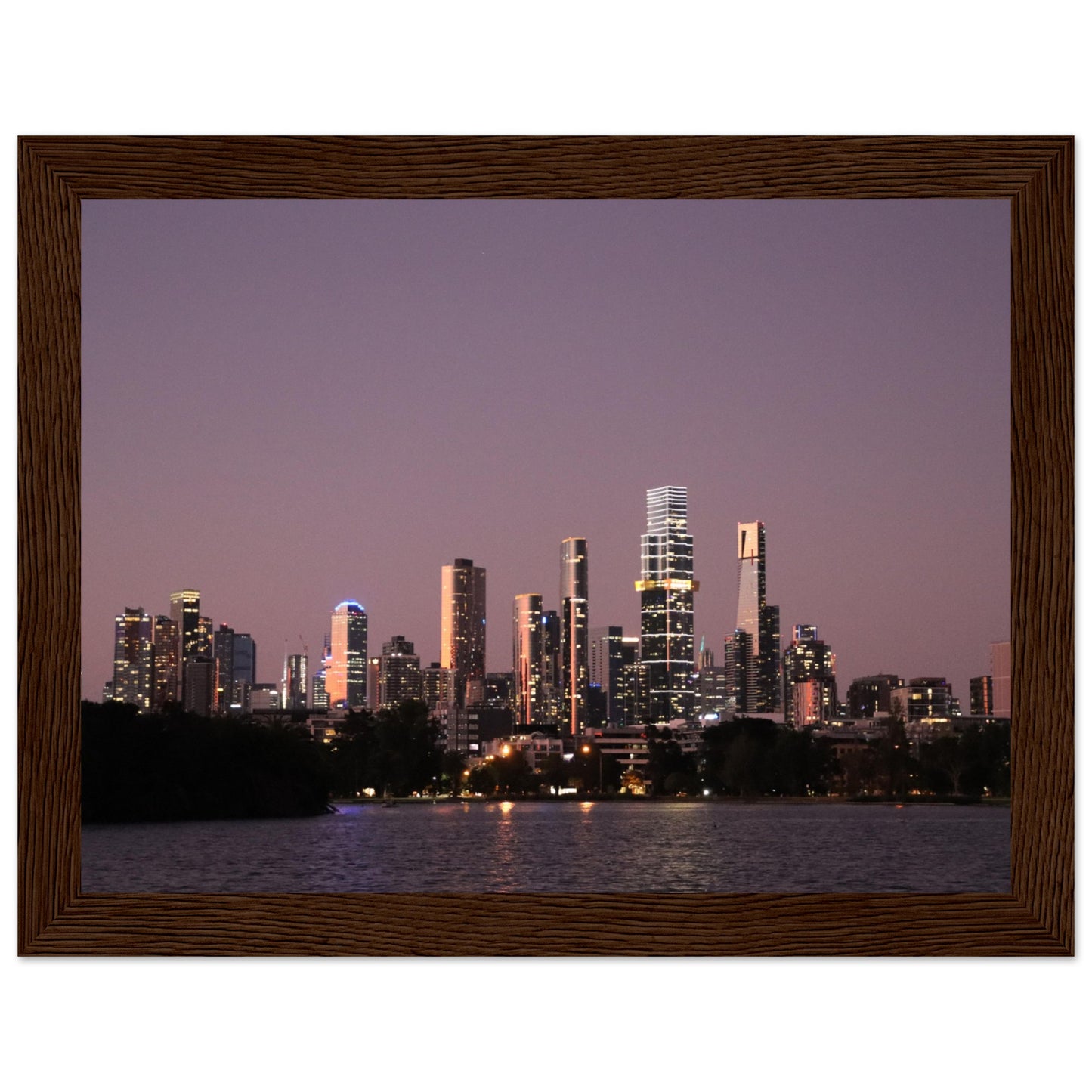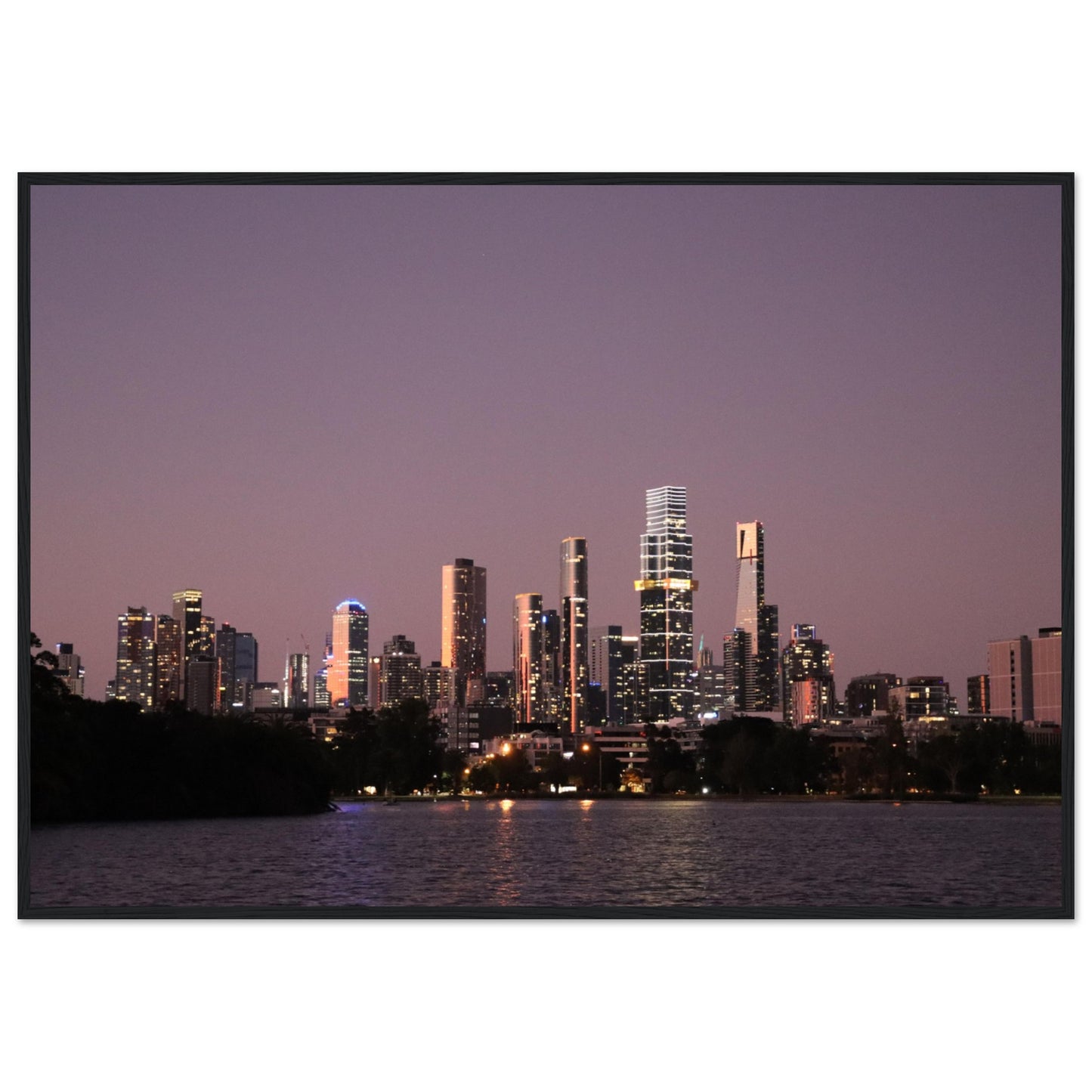Melbourne skyline at dusk - Premium Matte Paper Wooden Framed Poster