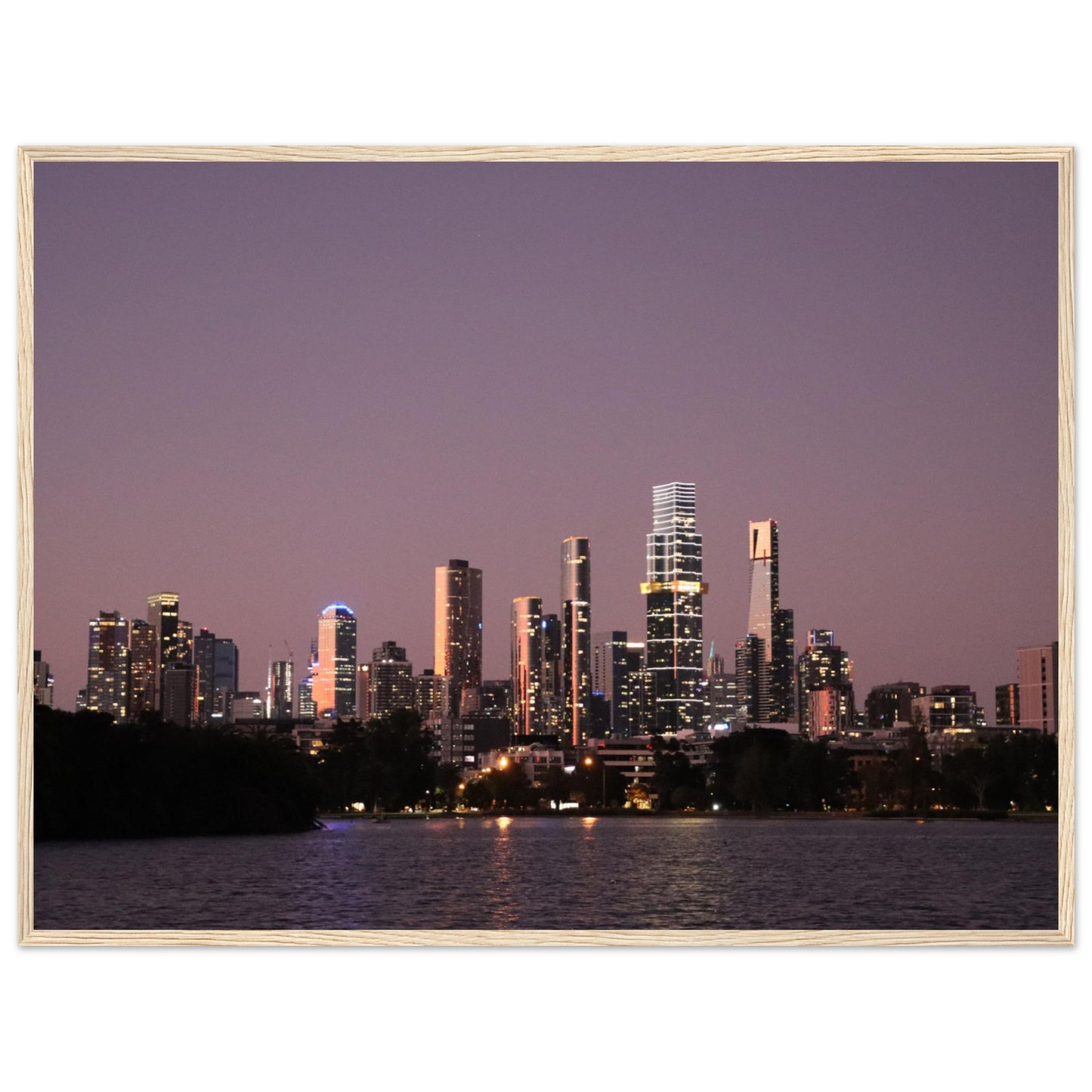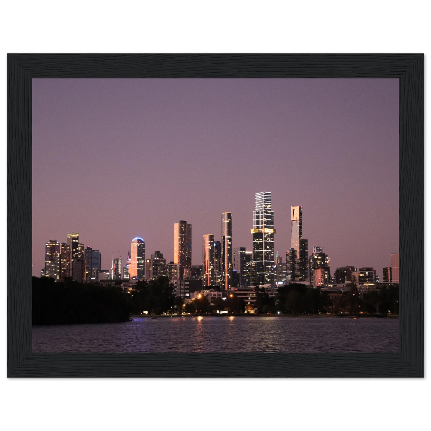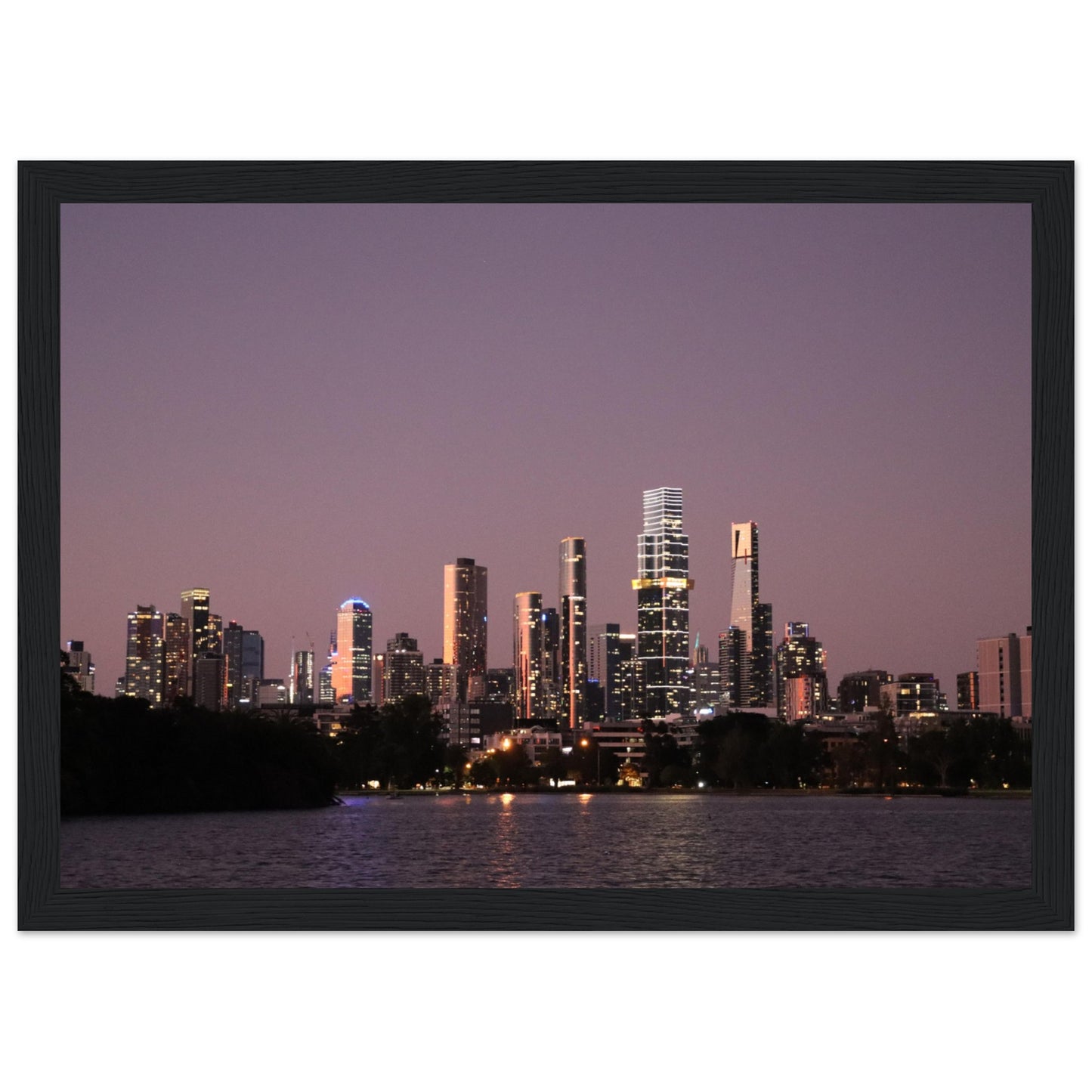 Melbourne skyline at dusk - Premium Matte Paper Wooden Framed Poster