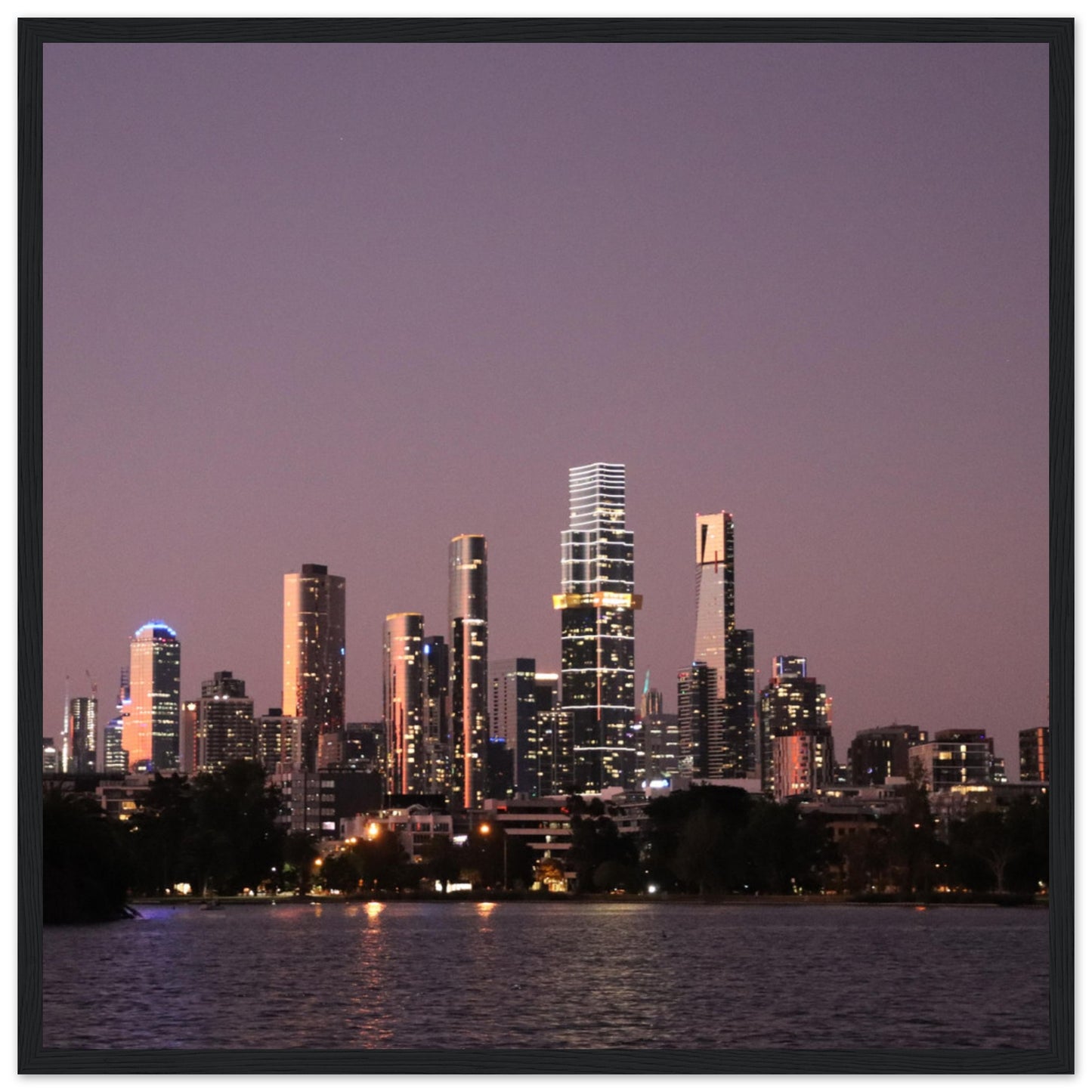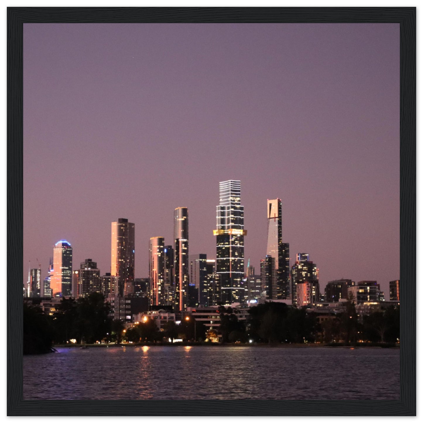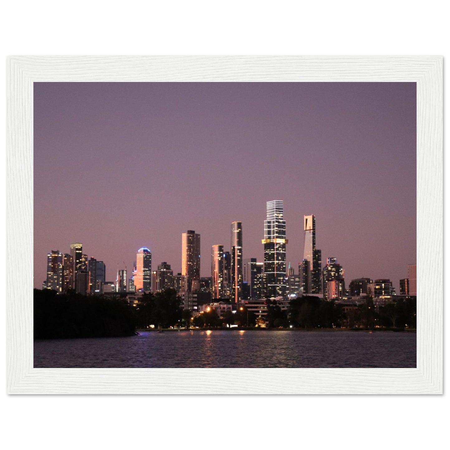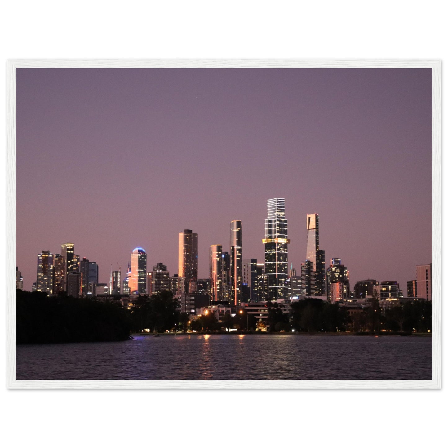Melbourne skyline at dusk - Premium Matte Paper Wooden Framed Poster
