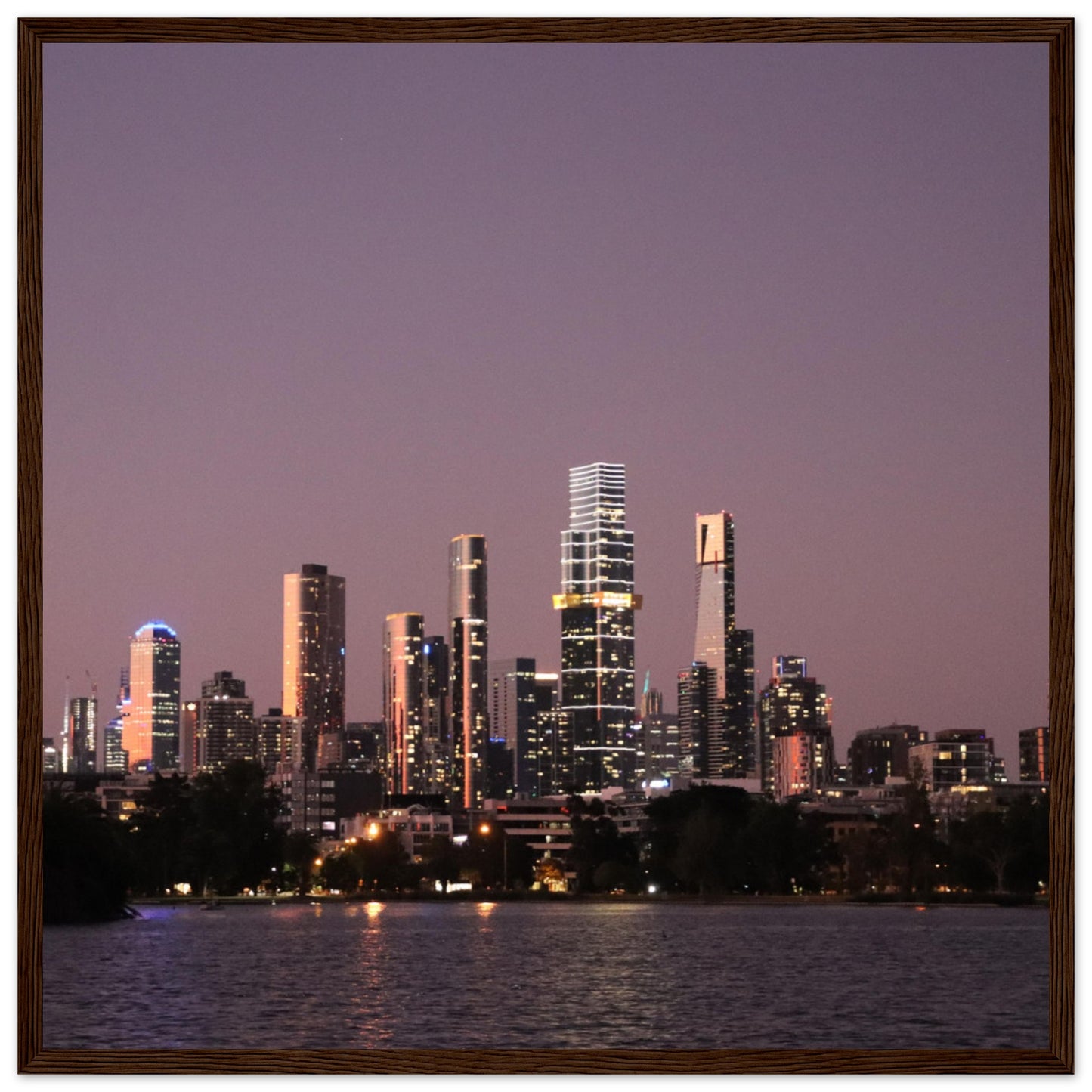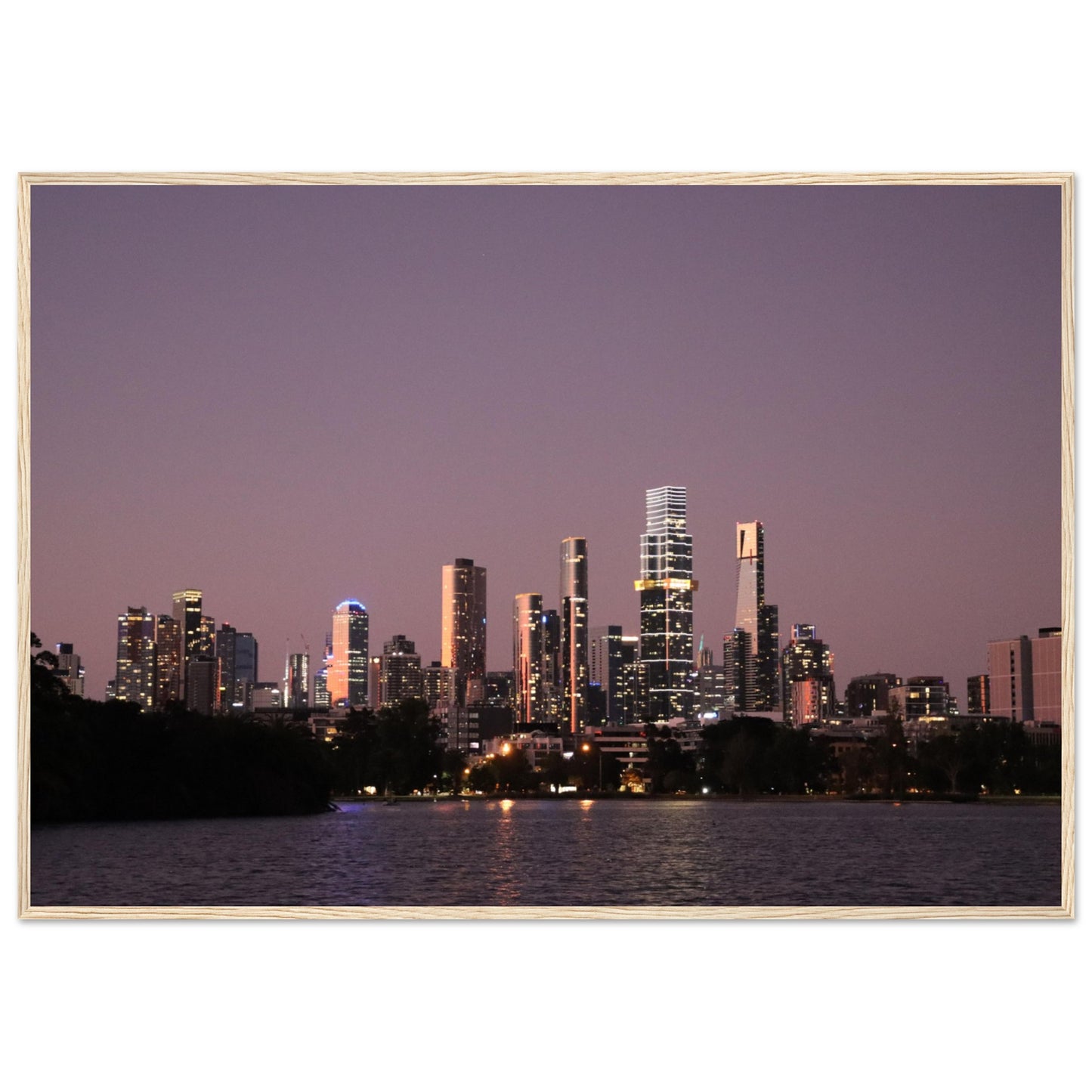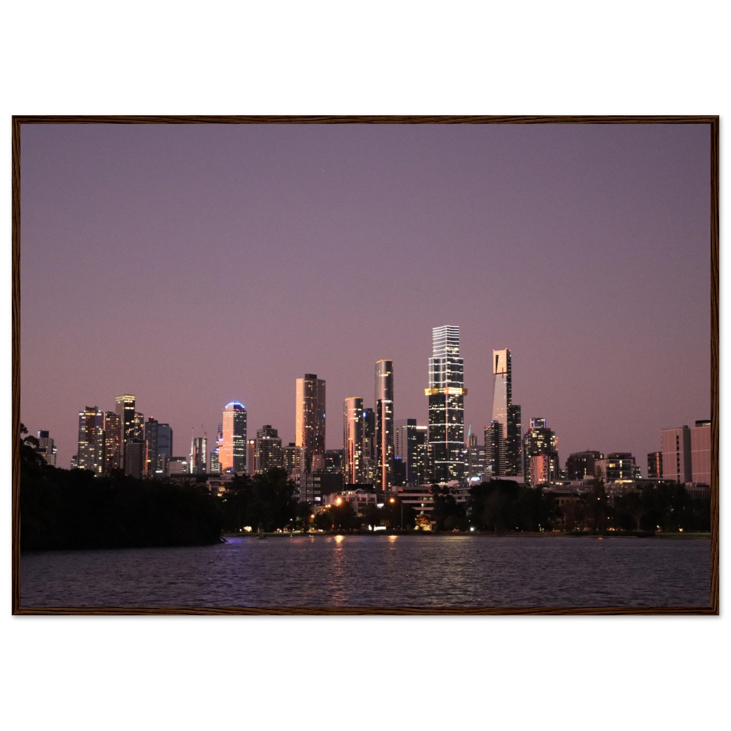 Melbourne skyline at dusk - Premium matte paper poster with wooden frame
