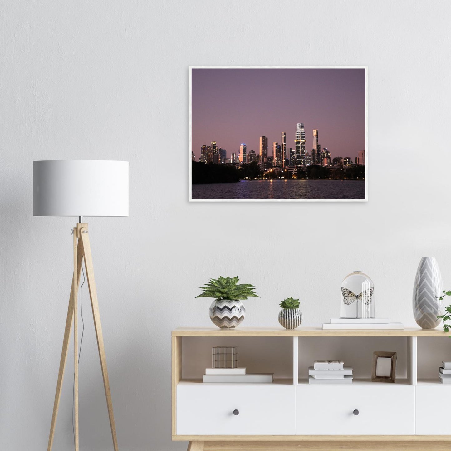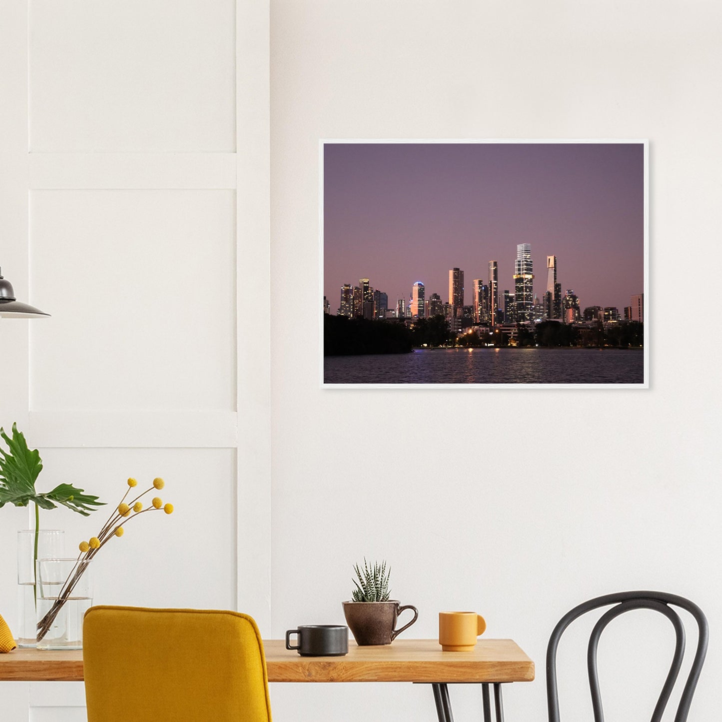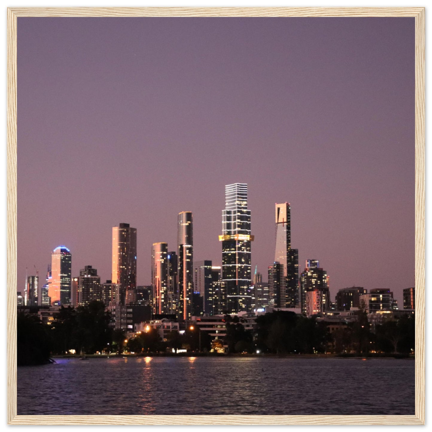 Melbourne skyline at dusk - Premium matte paper poster with wooden frame