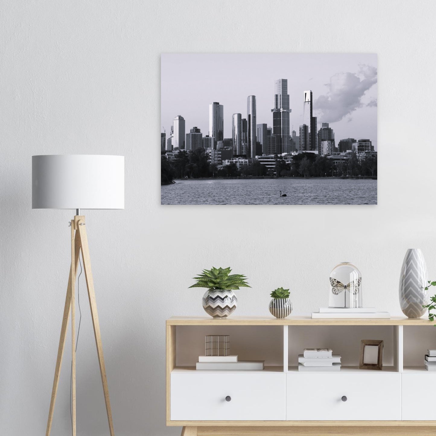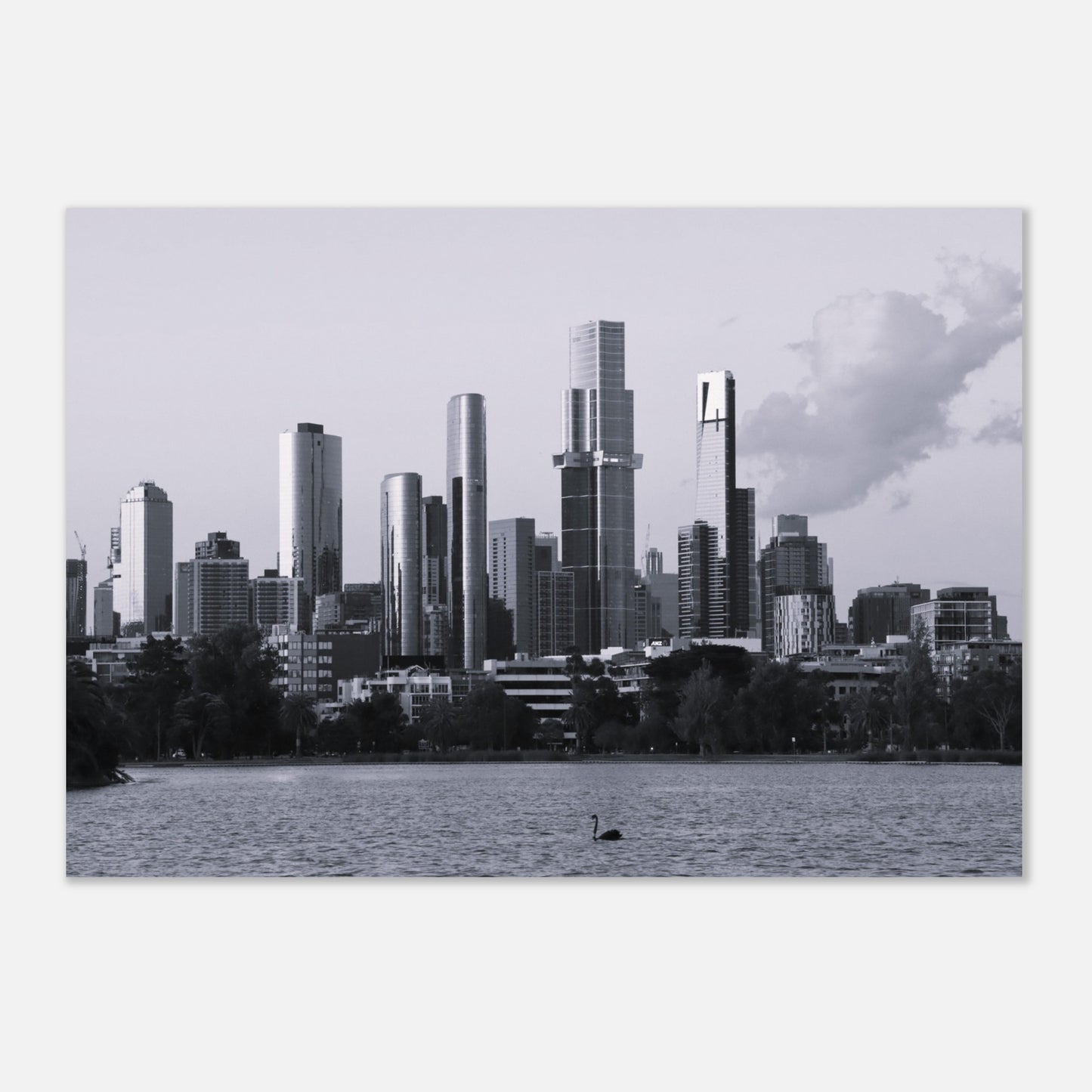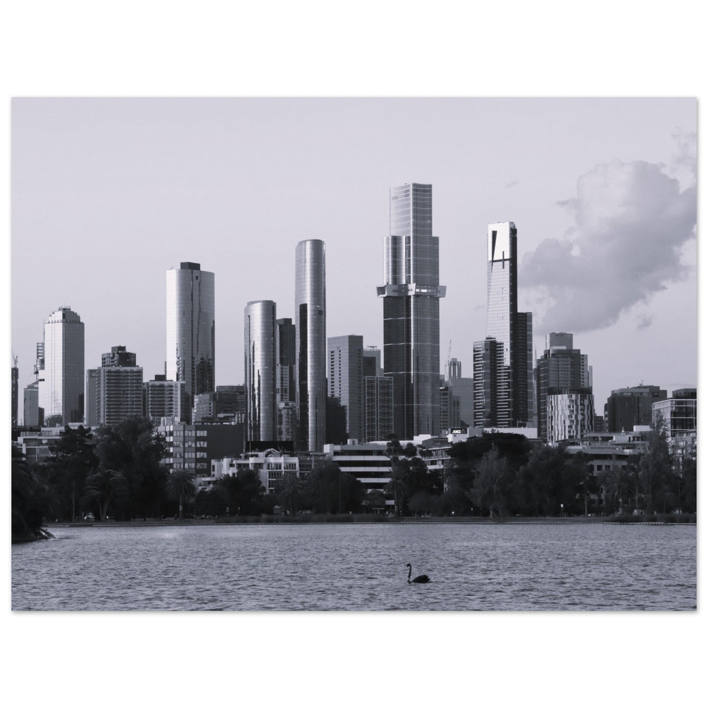 Melbourne skyscrapers by the water - Black & White - Lightweight foam board.