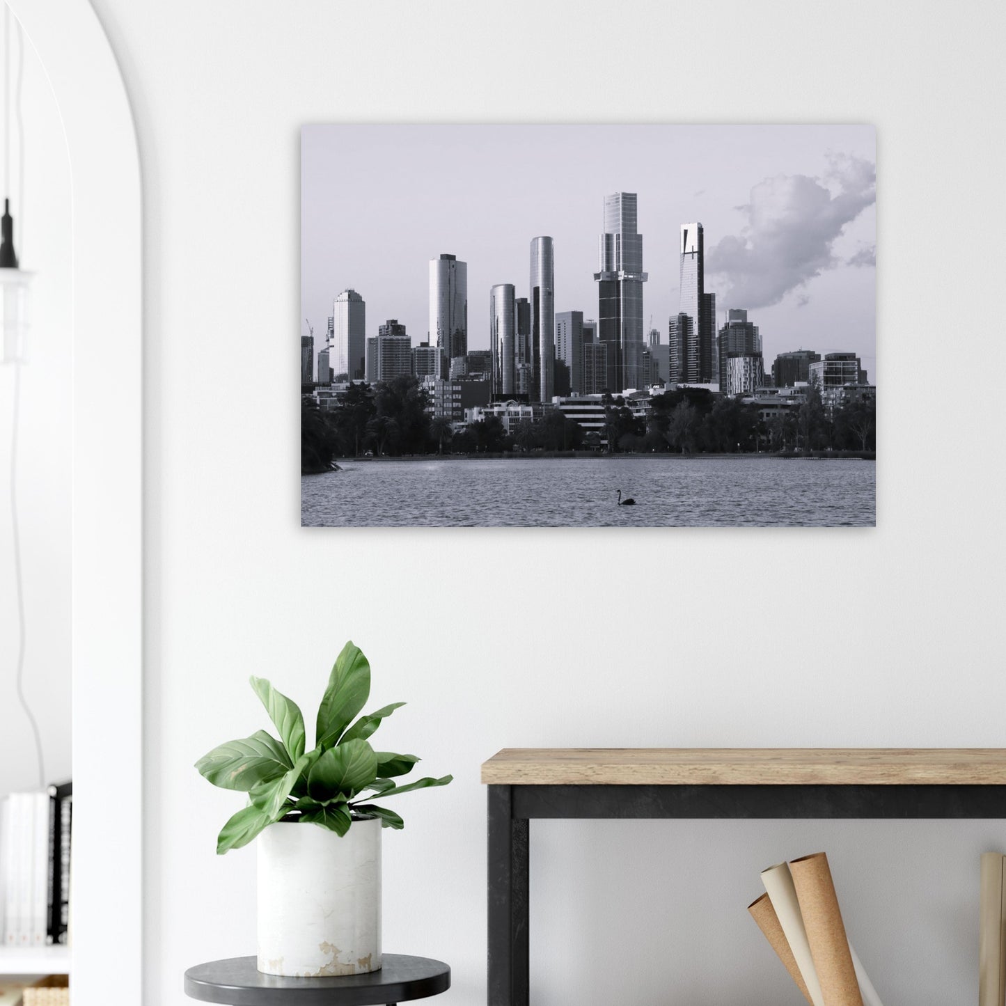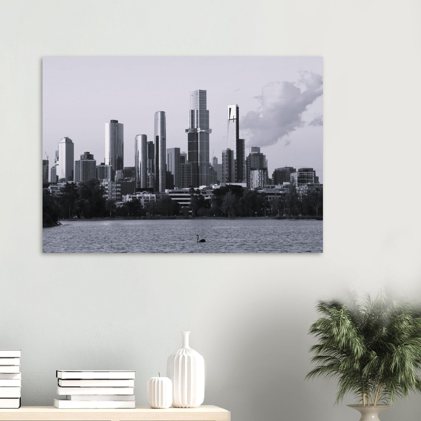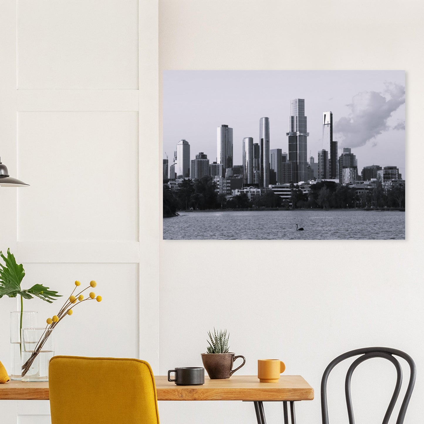 Melbourne skyscrapers by the water - Black & White - Lightweight foam board.
