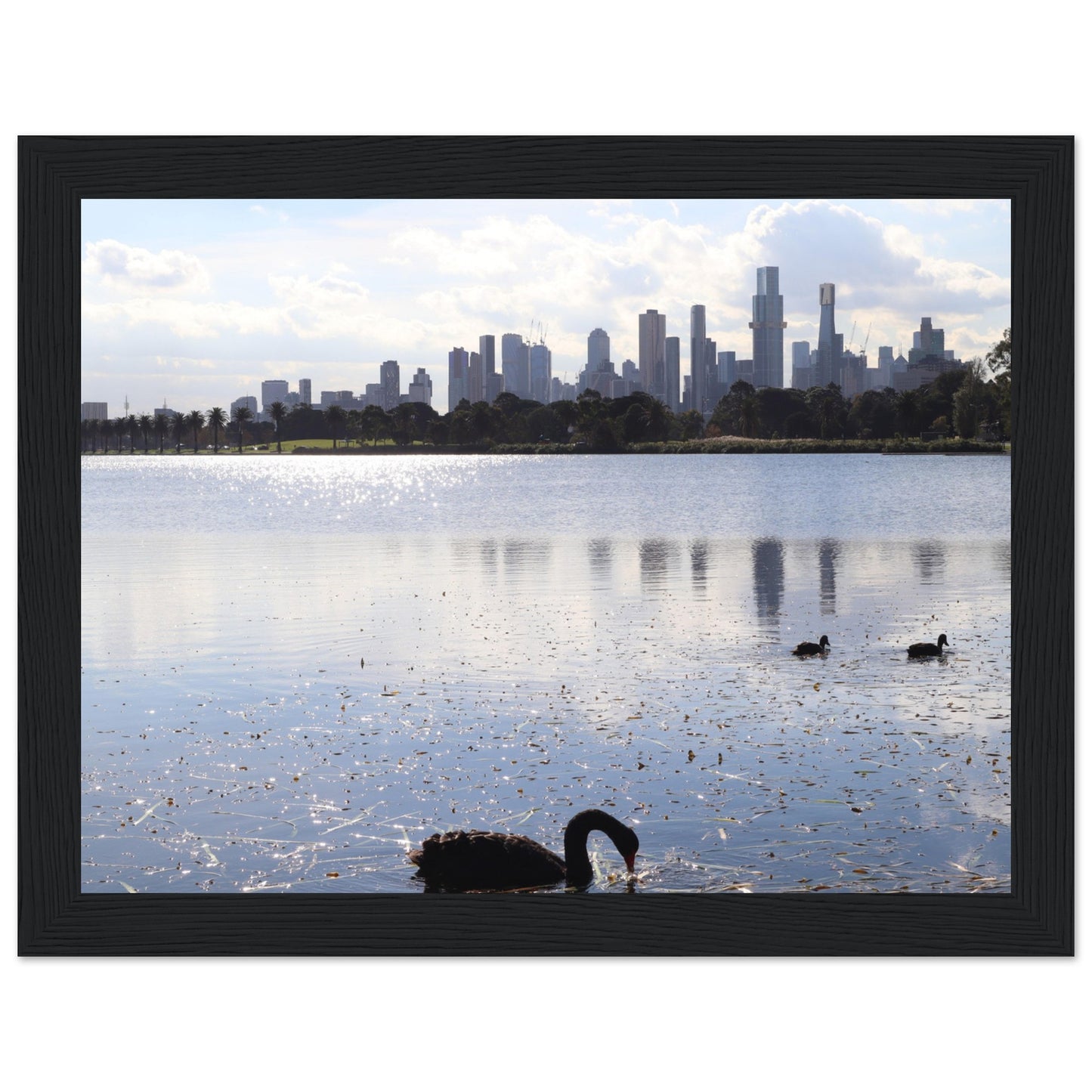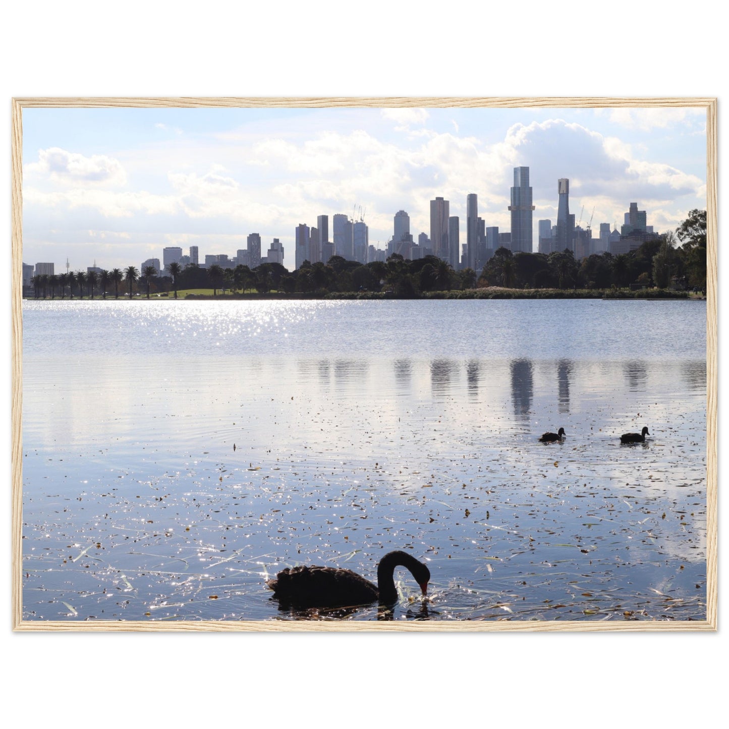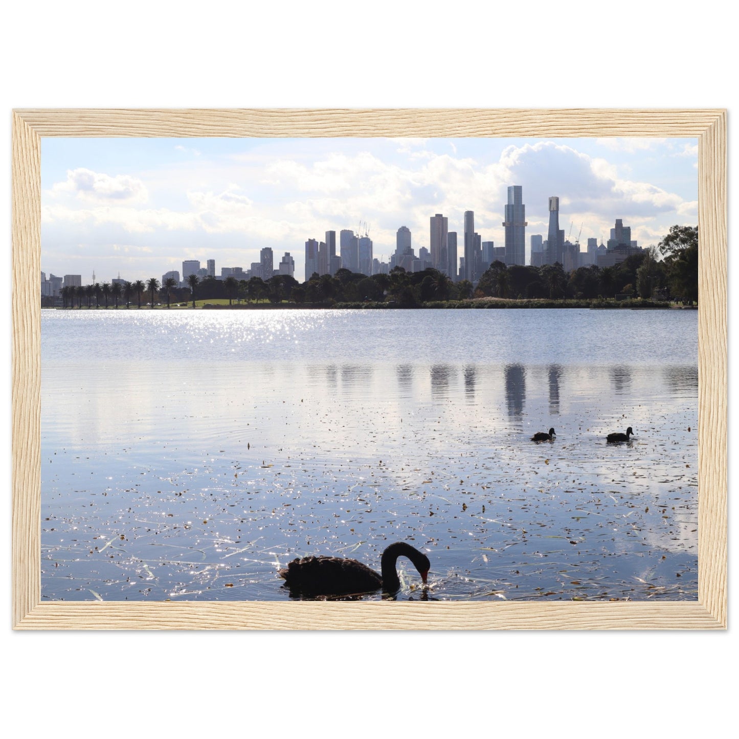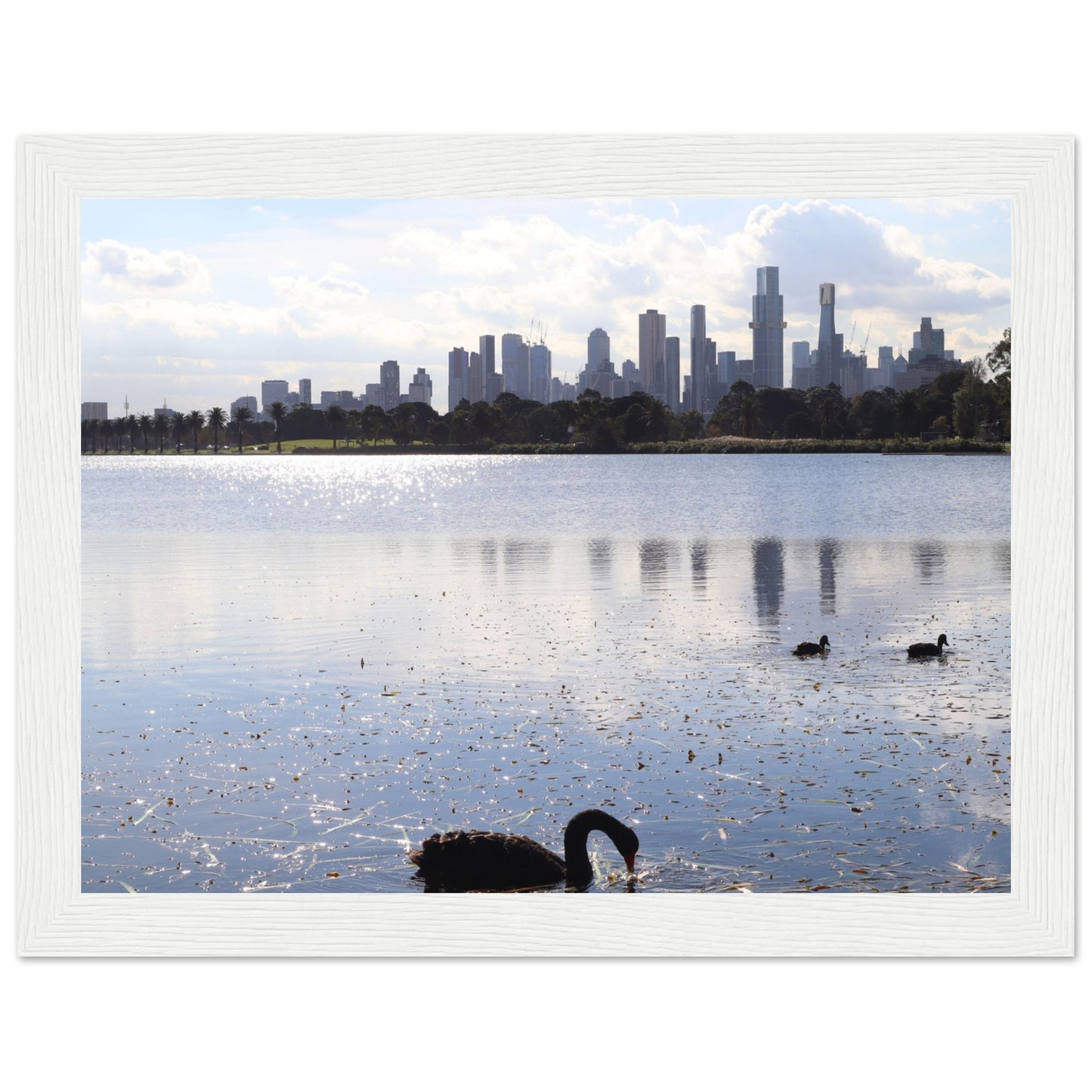 Melbourne skyline from Albert Park Lake - Premium Matte Paper Wooden Framed Poster