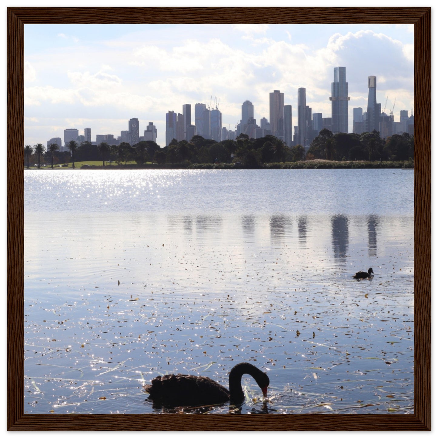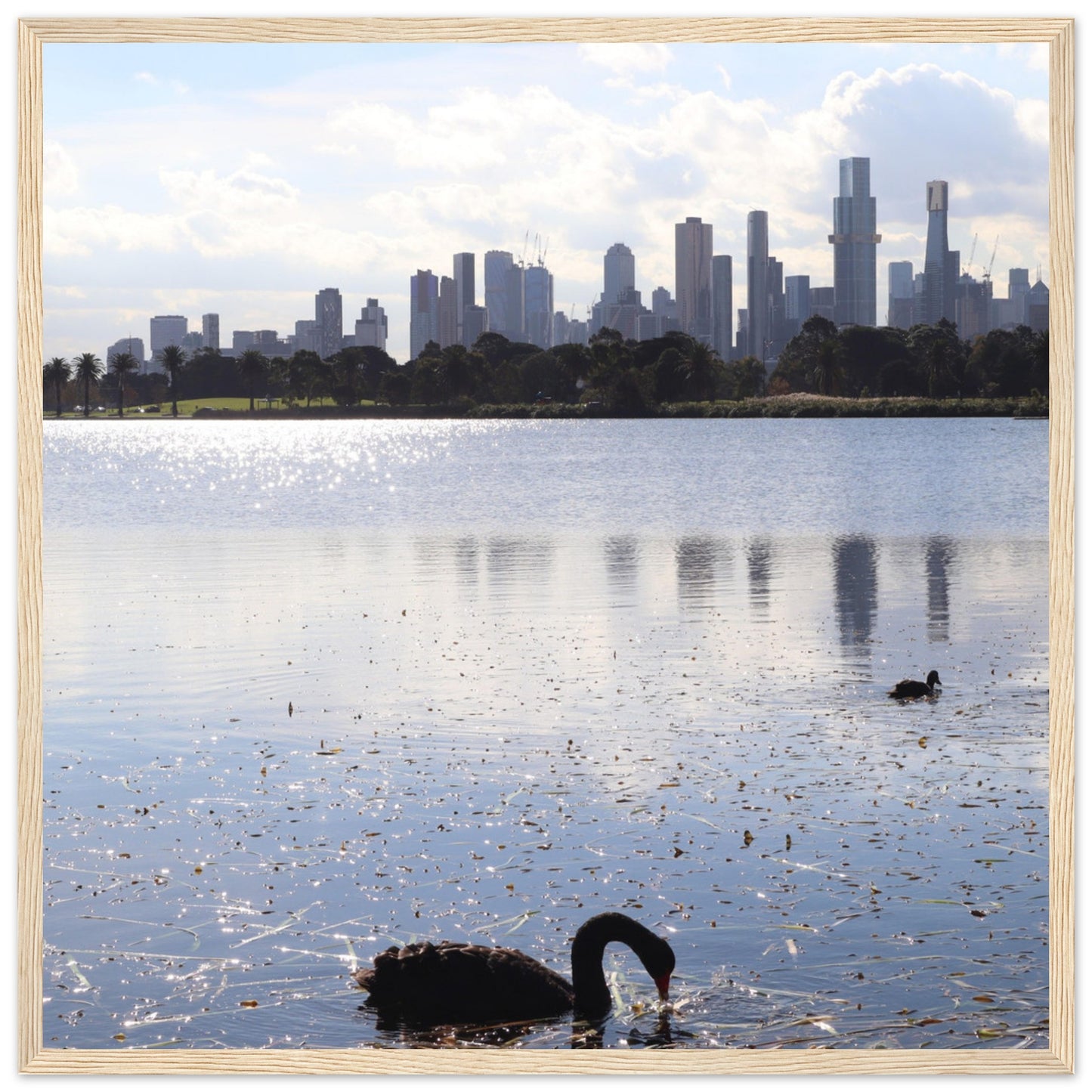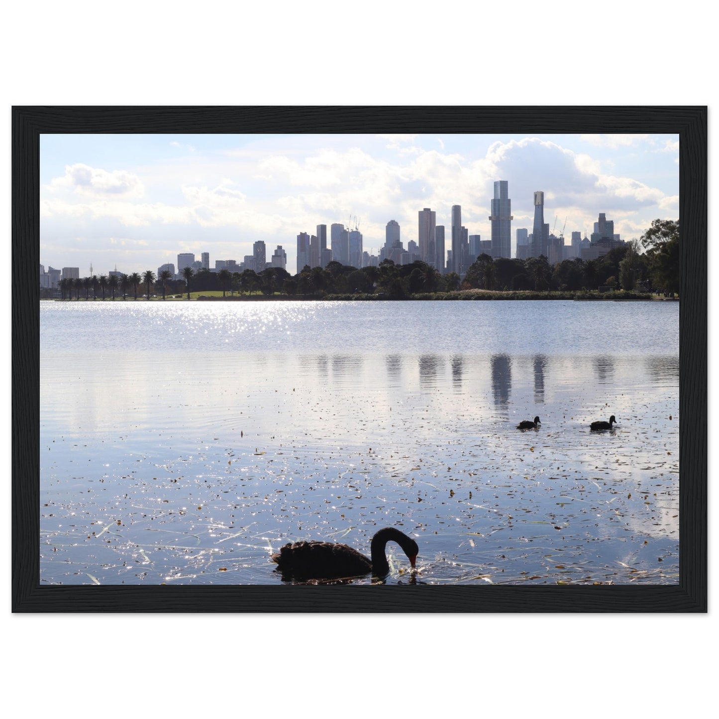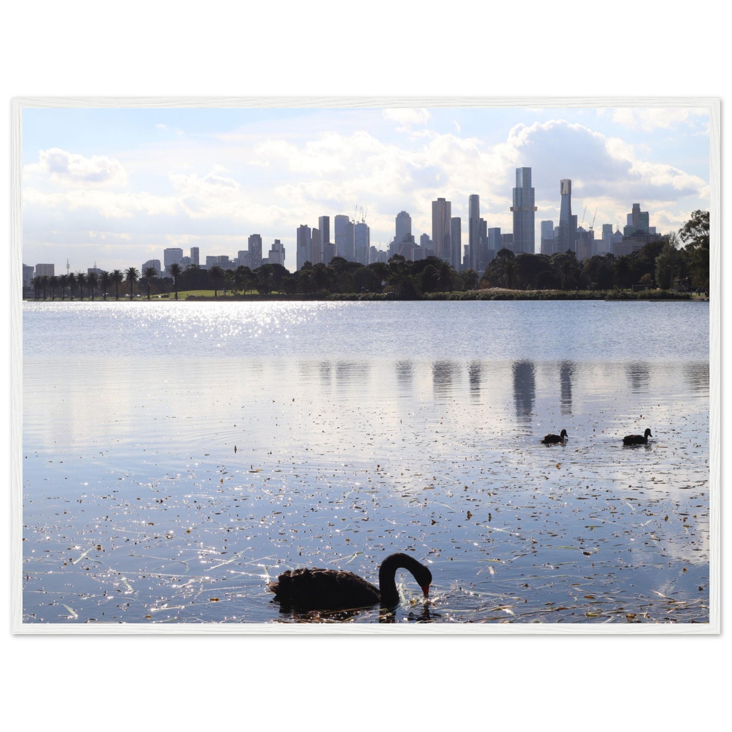Melbourne skyline from Albert Park Lake - Premium Matte Paper Wooden Framed Poster