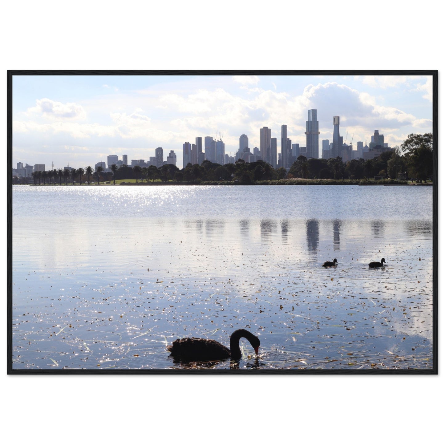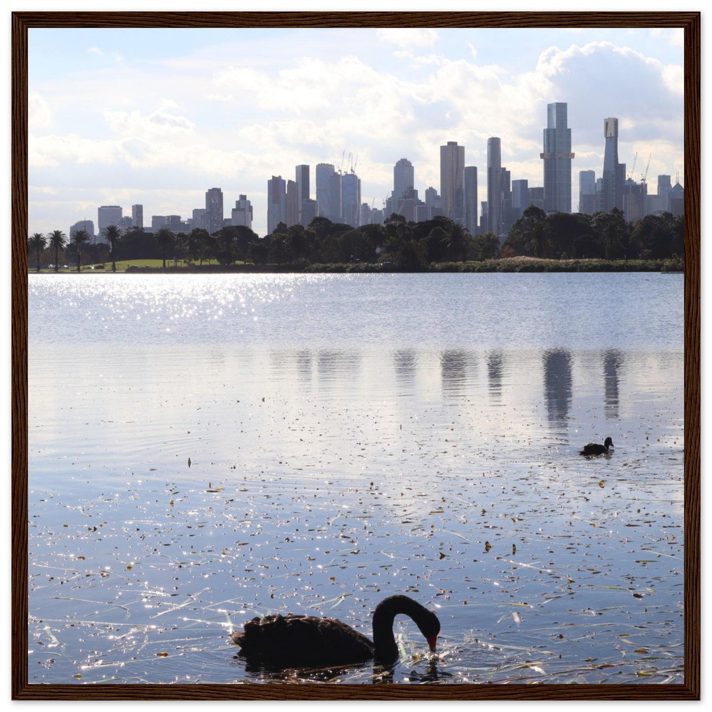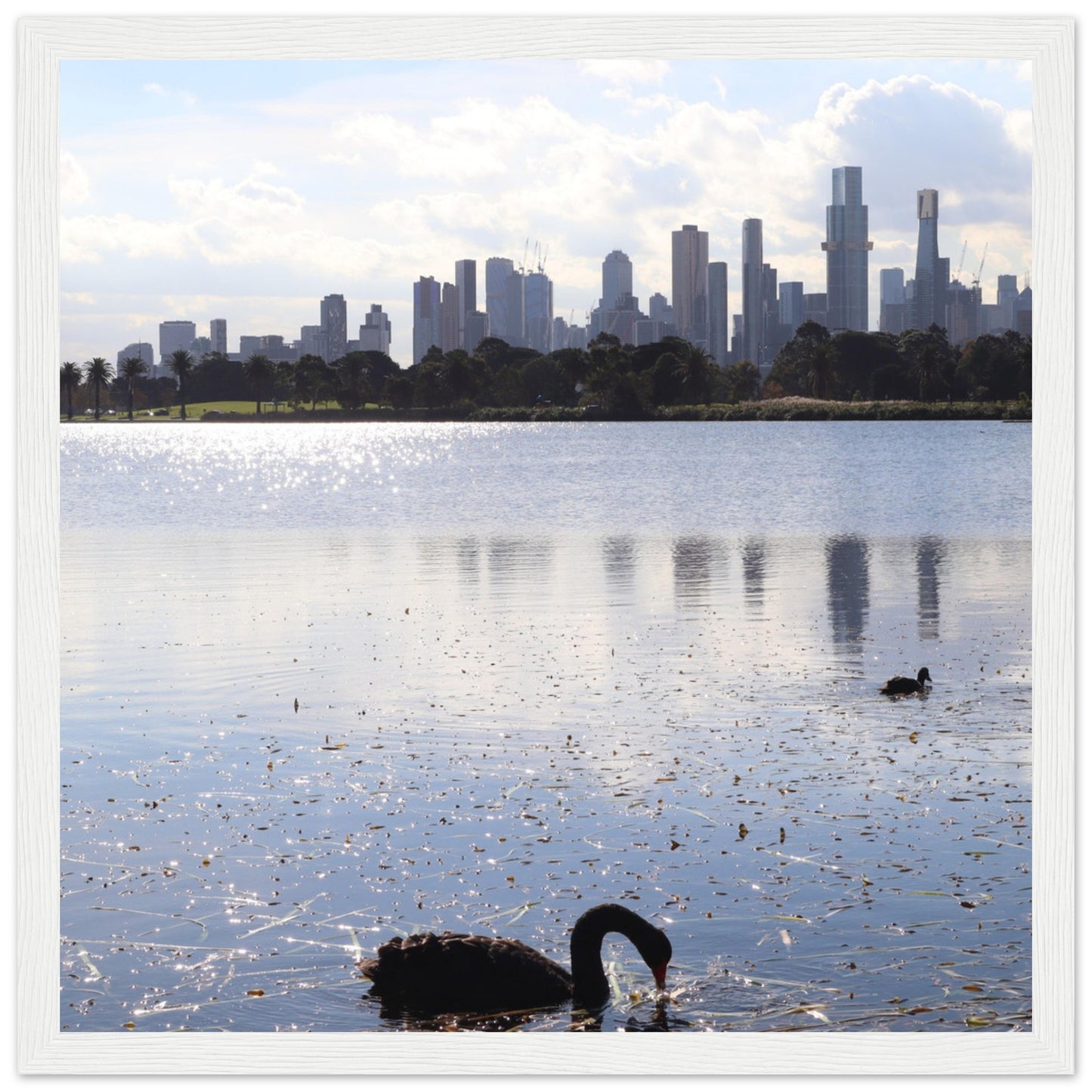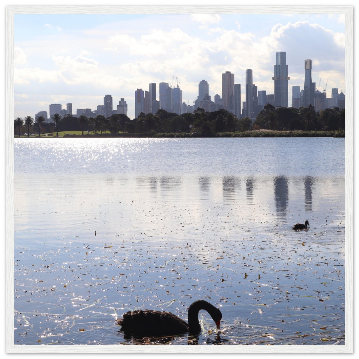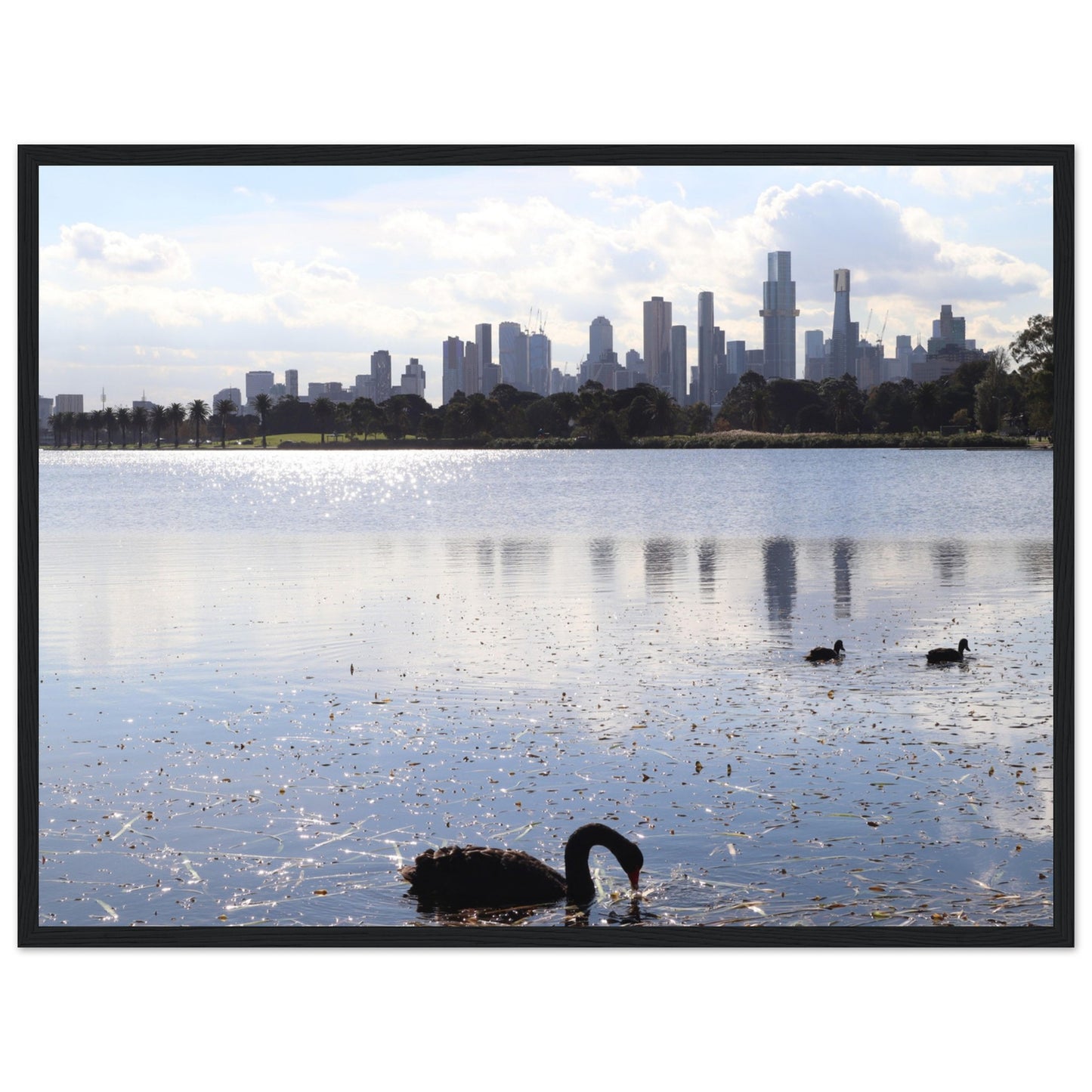 Melbourne skyline from Albert Park Lake - Premium Matte Paper Wooden Framed Poster