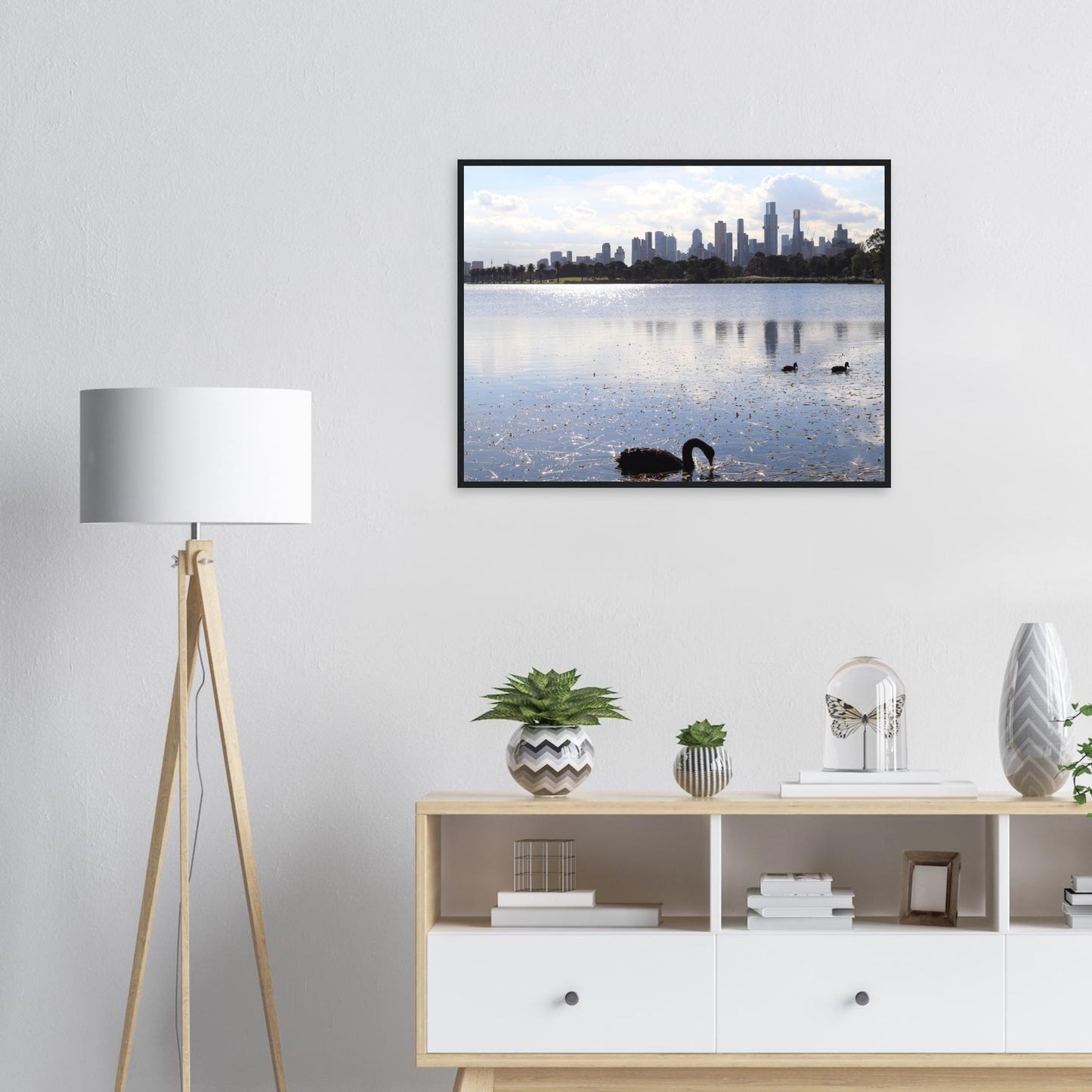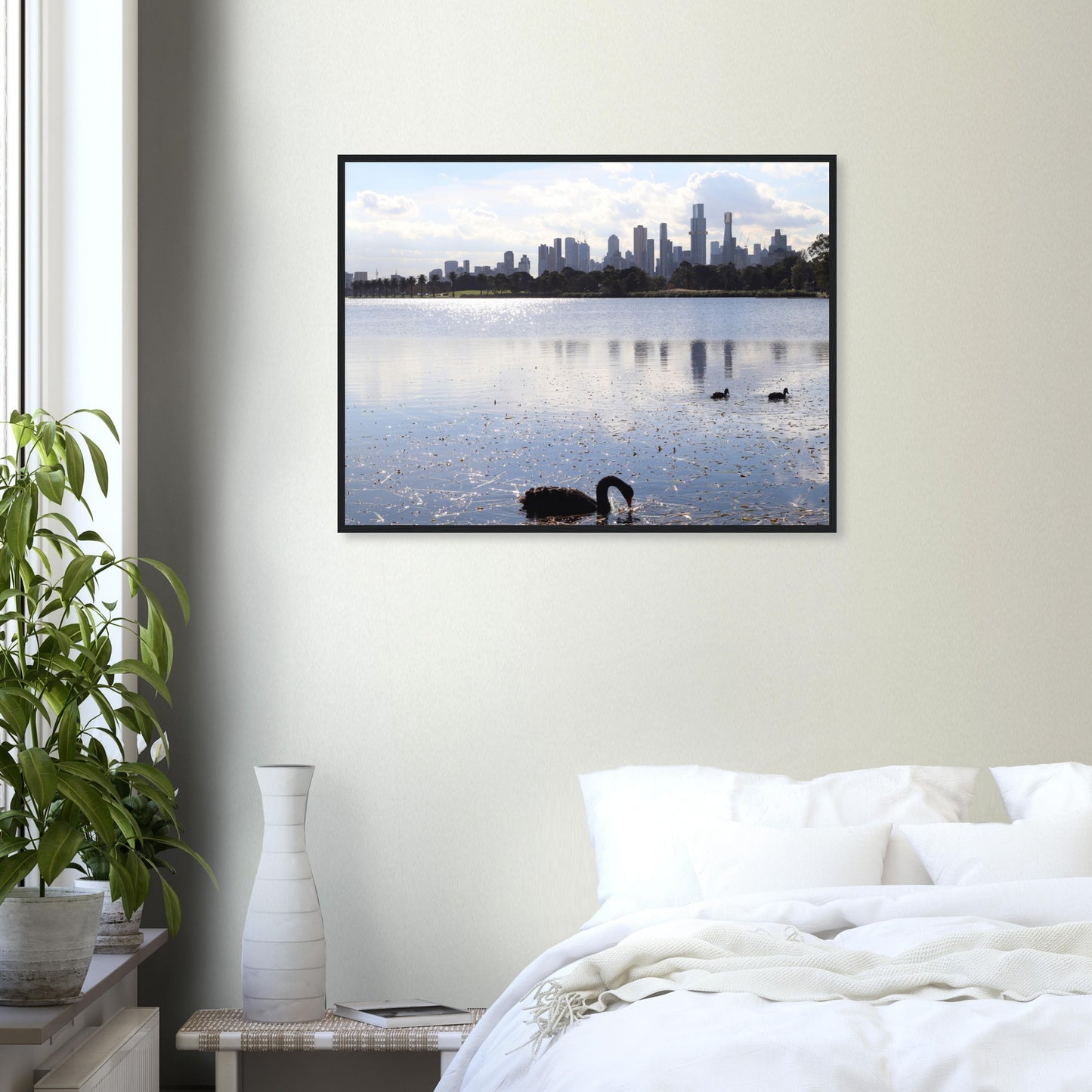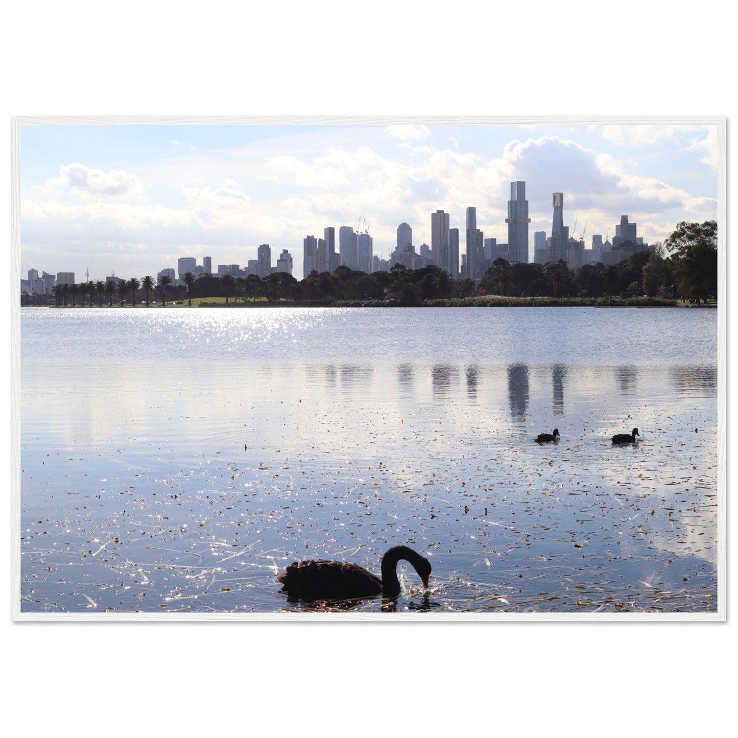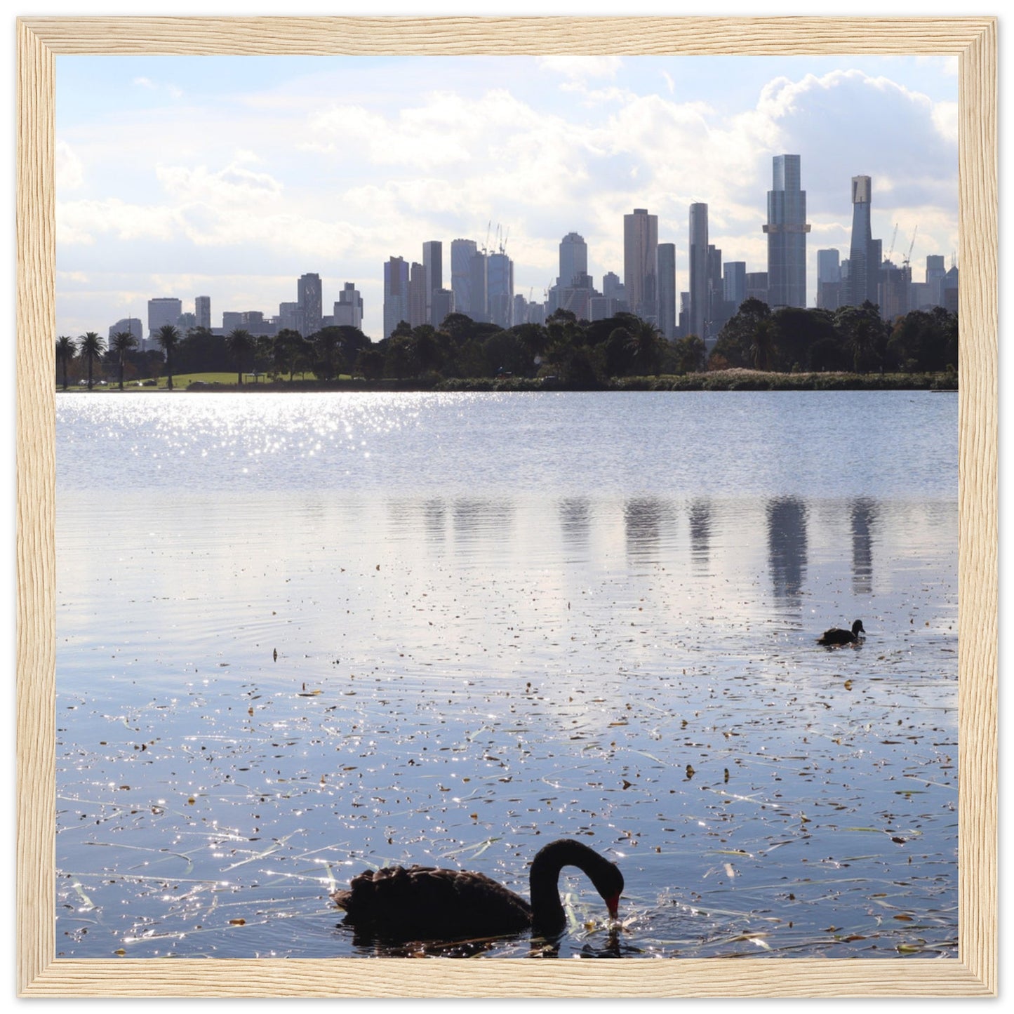 Melbourne skyline from Albert Park Lake - Premium Matte Paper Wooden Framed Poster