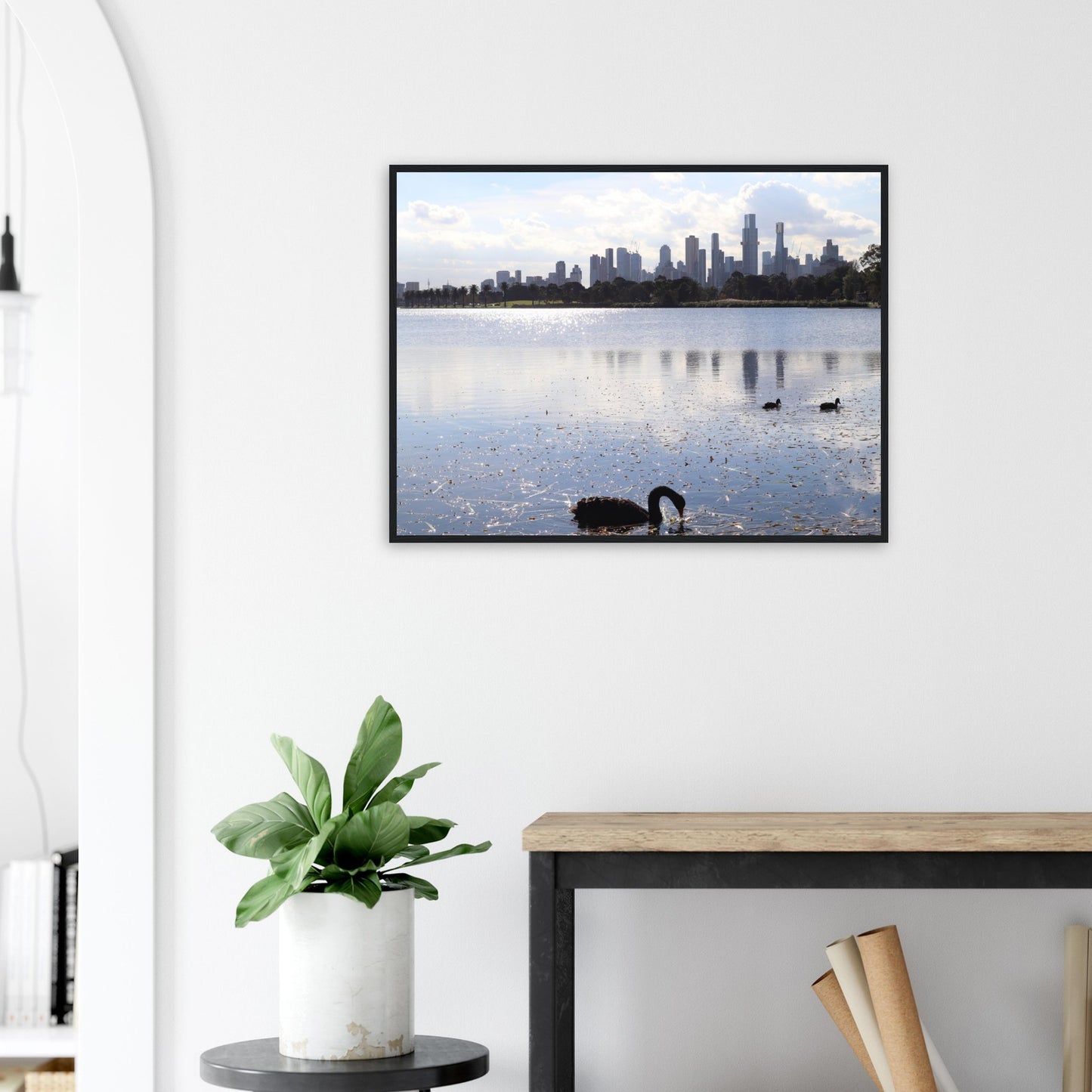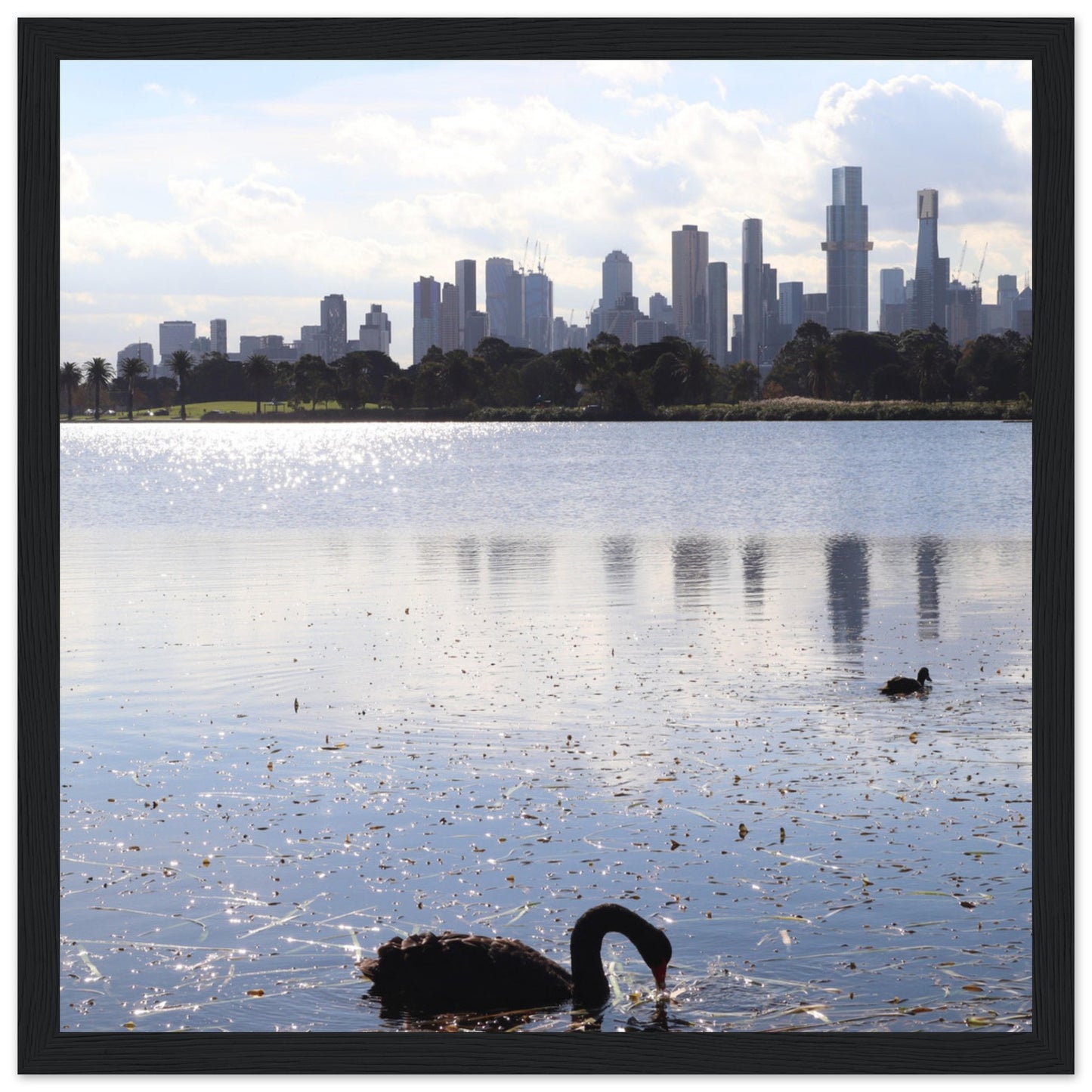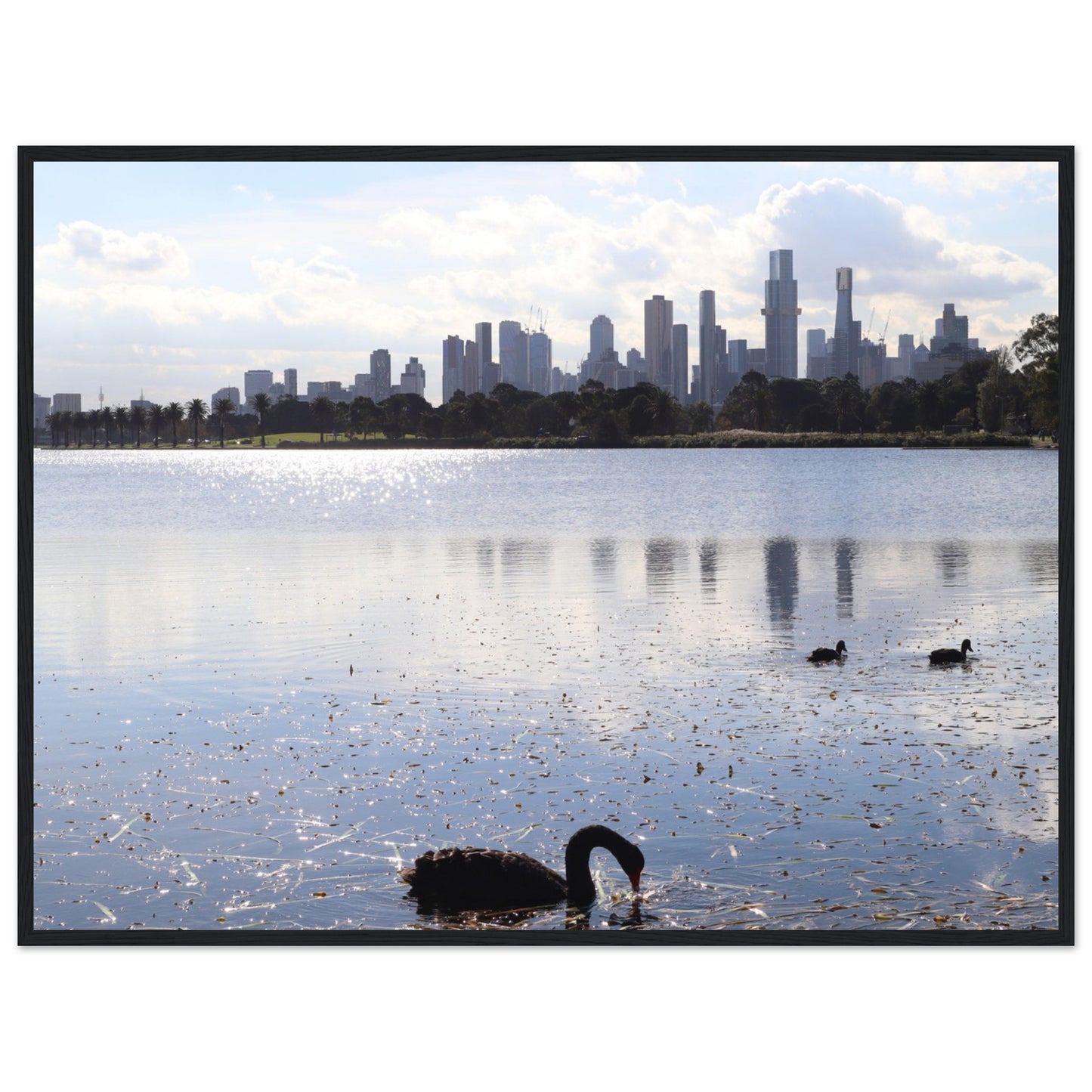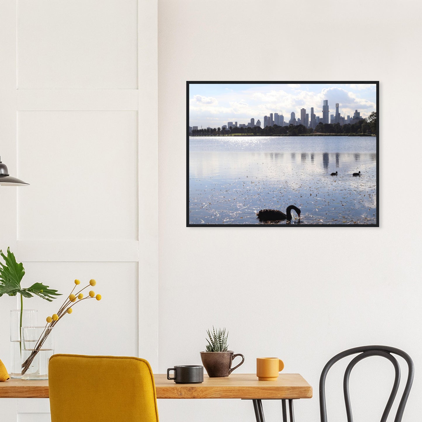 Melbourne skyline from Albert Park Lake - Premium Matte Paper Wooden Framed Poster