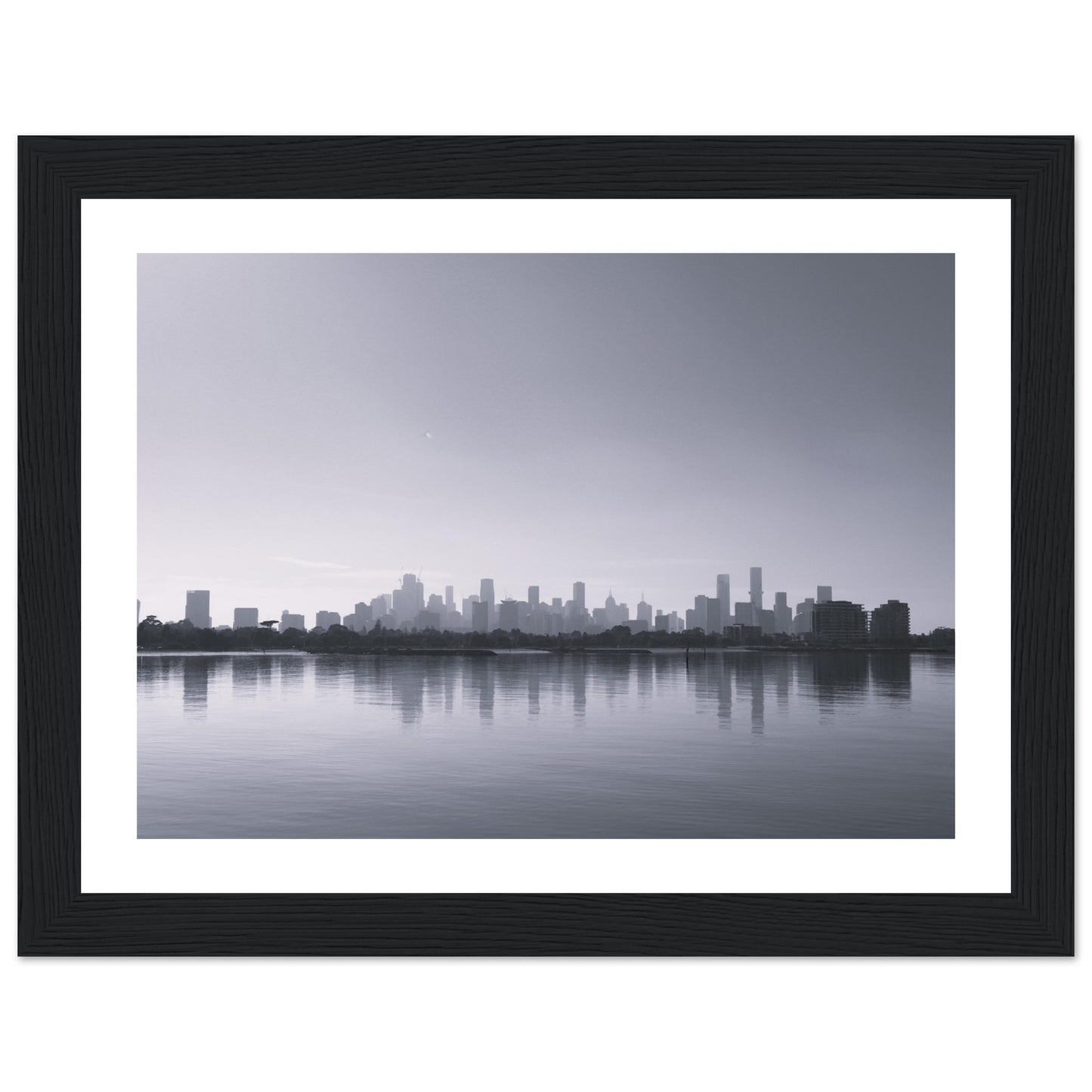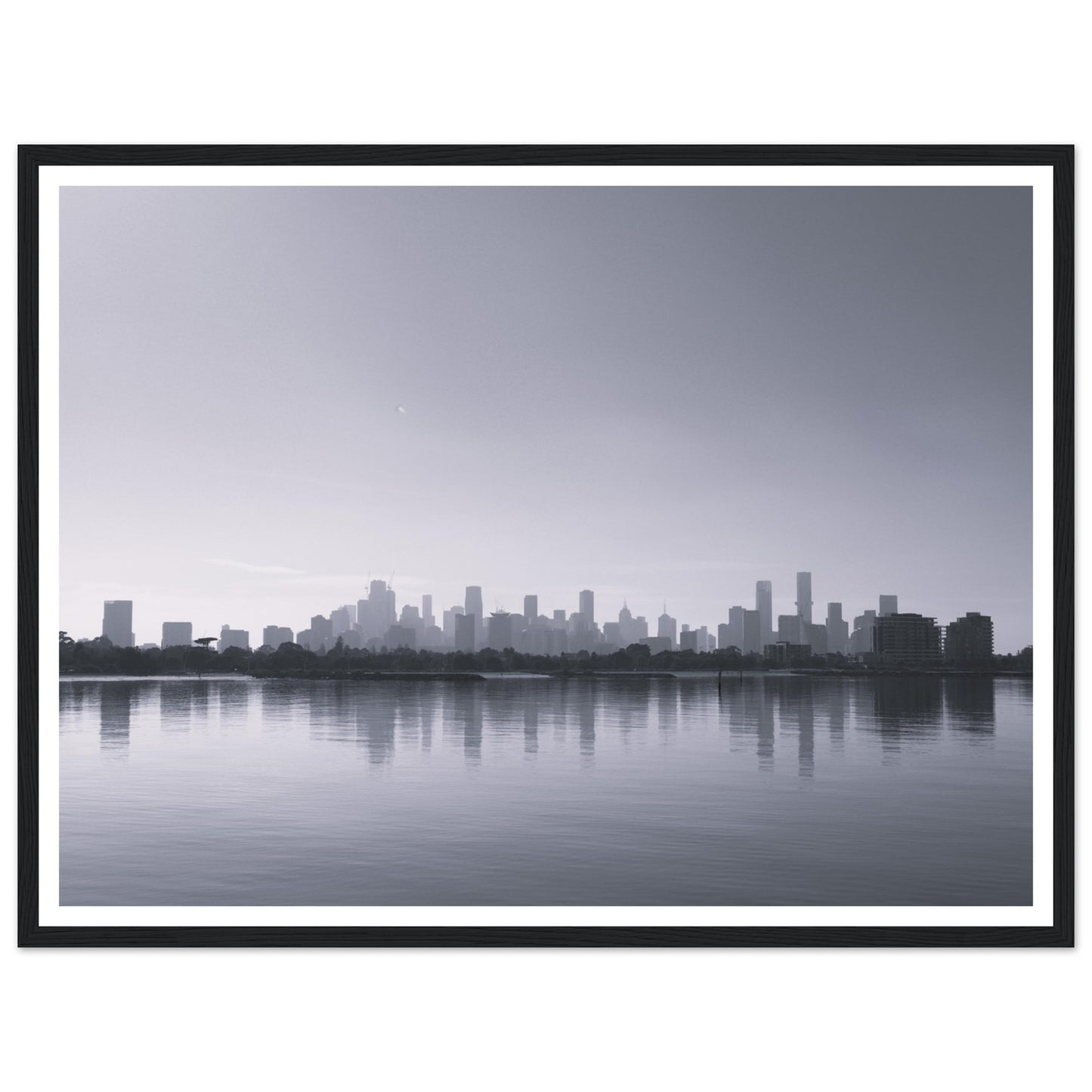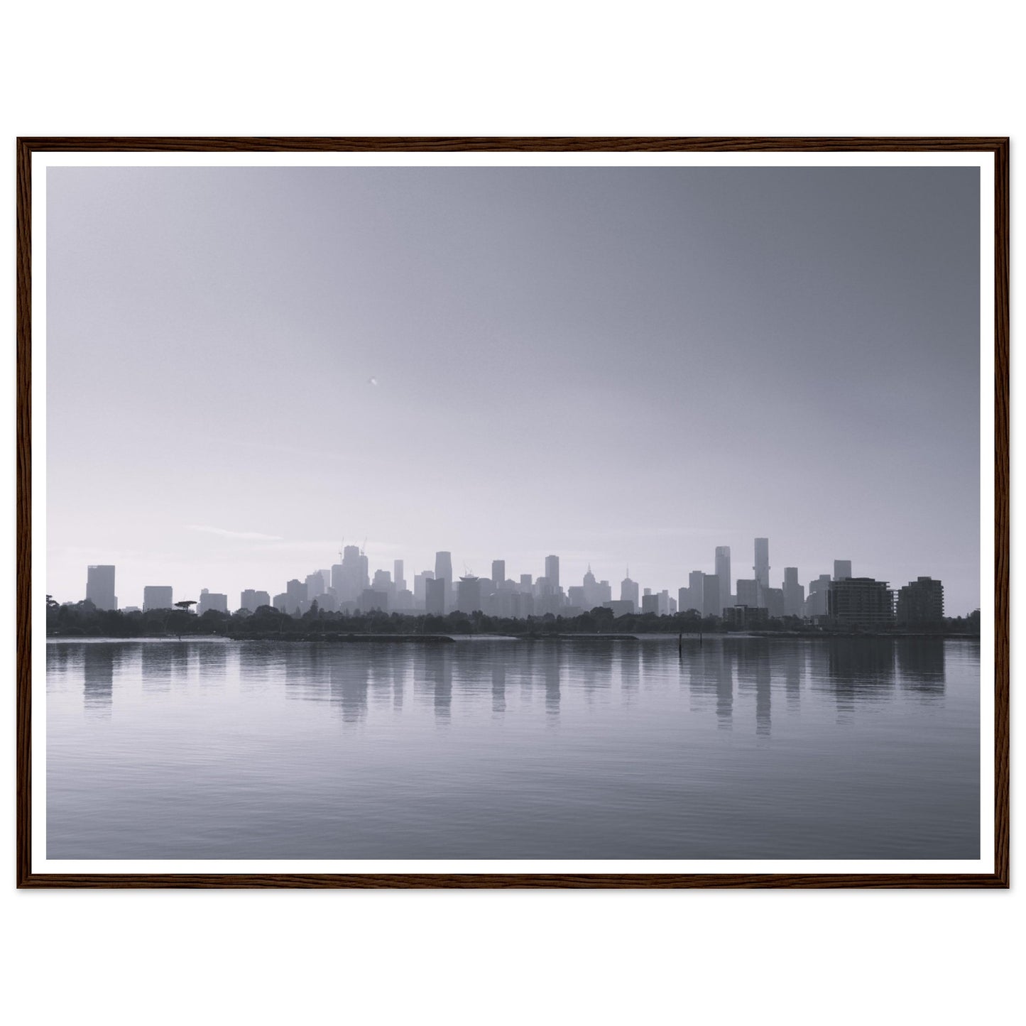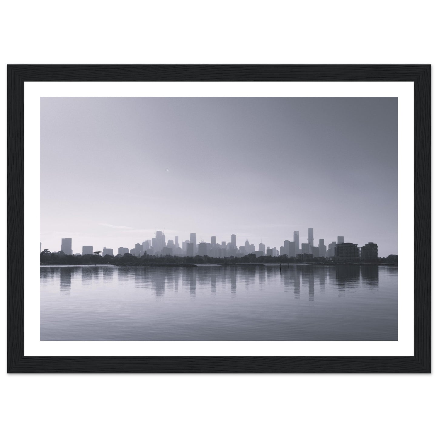 Melbourne skyline, Sandridge lookout (B&W) - Premium Matte Paper Wooden Framed Poster