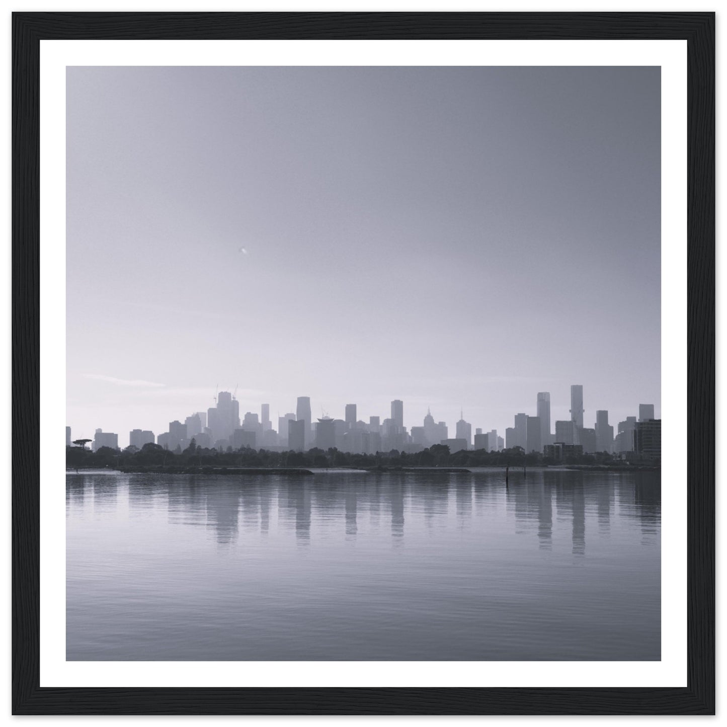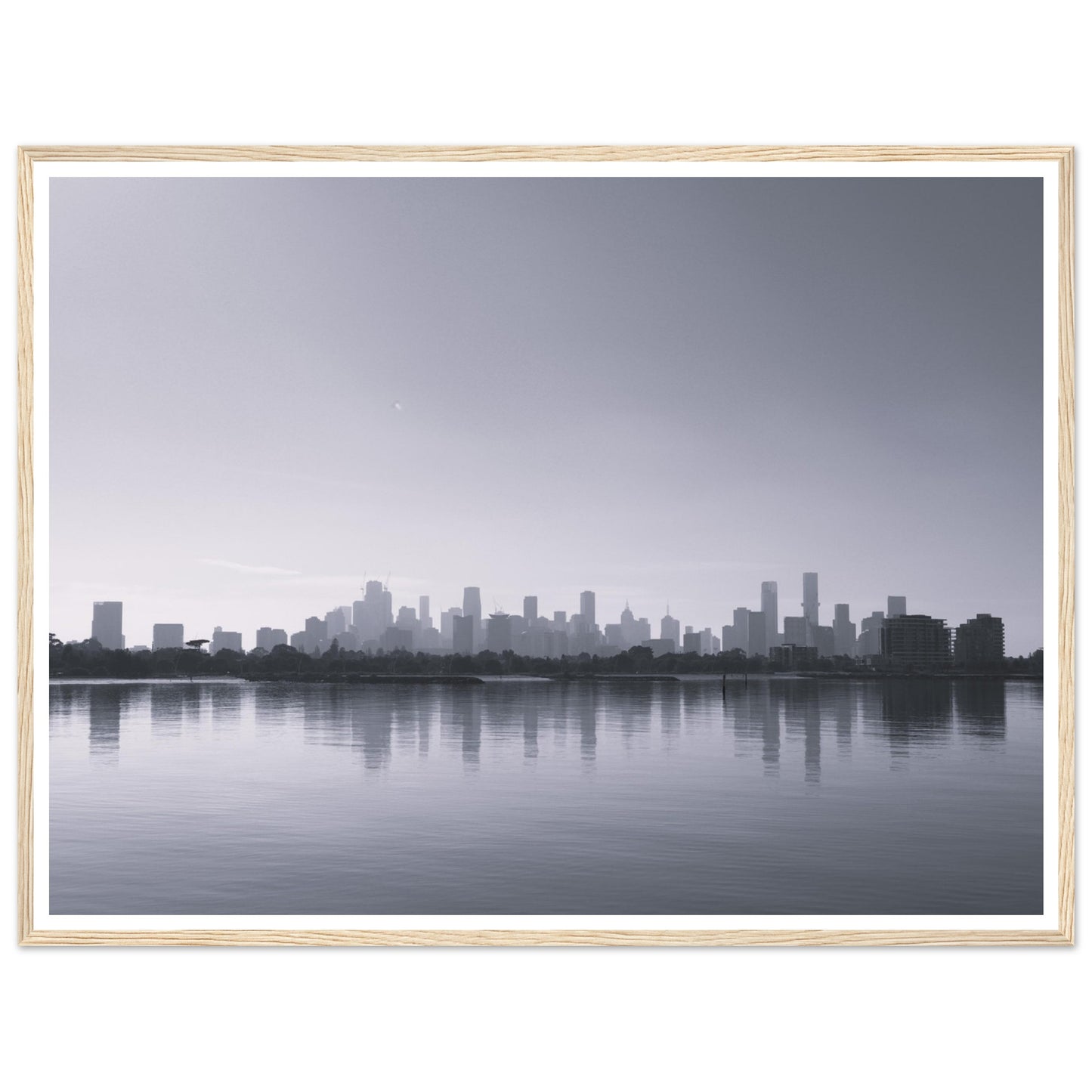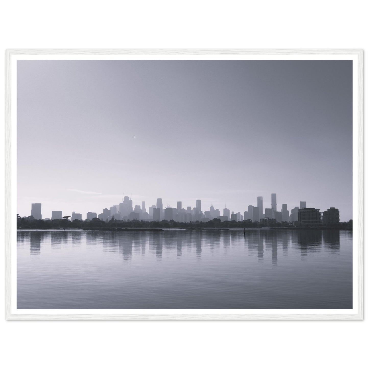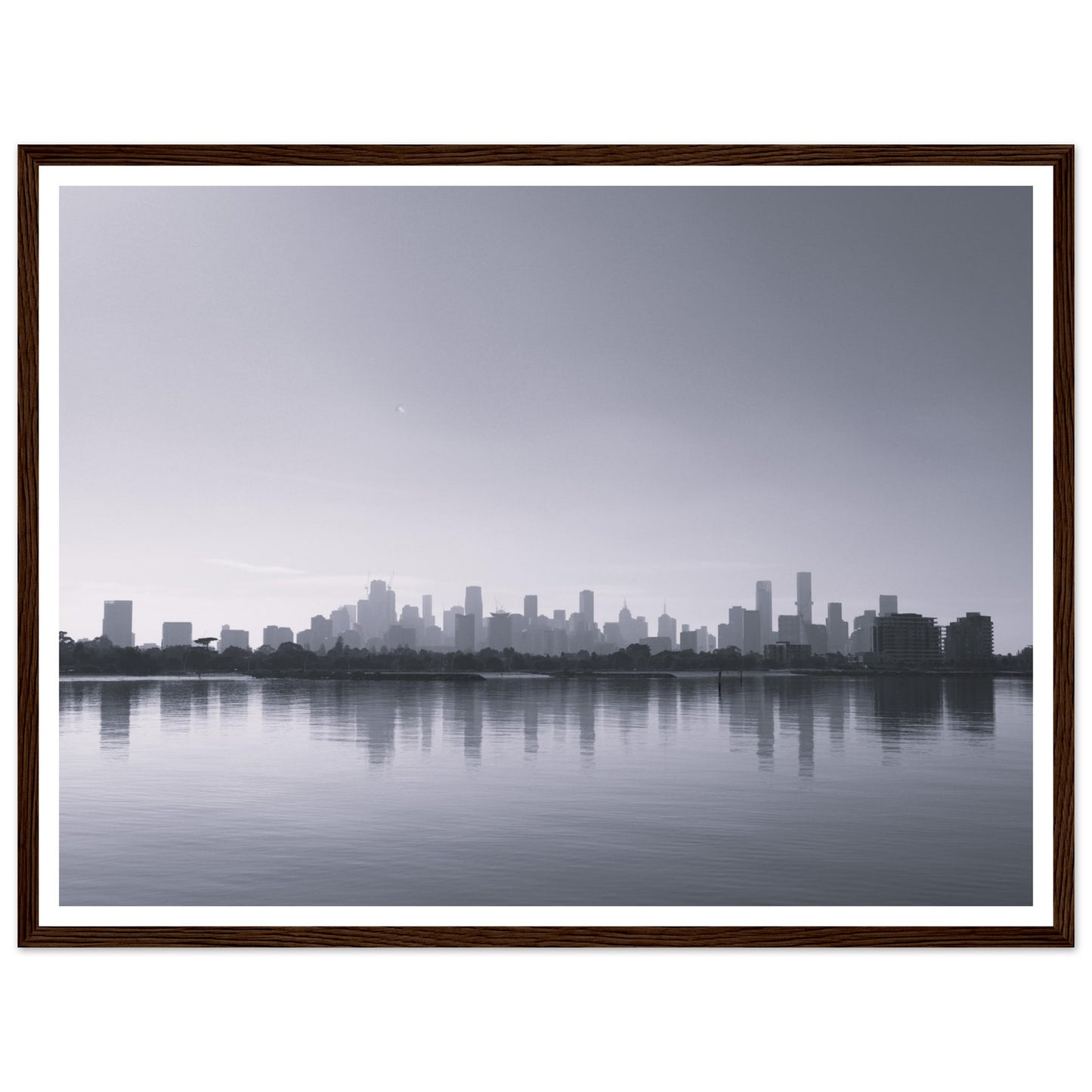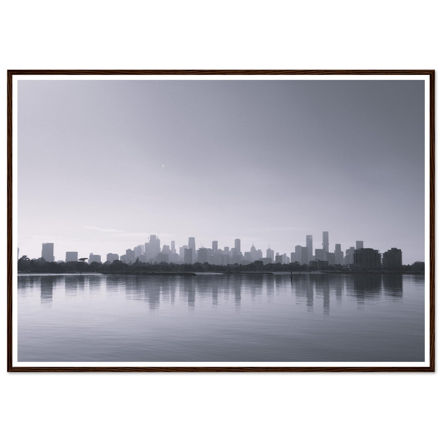 Melbourne skyline, Sandridge lookout (B&W) - Premium Matte Paper Wooden Framed Poster