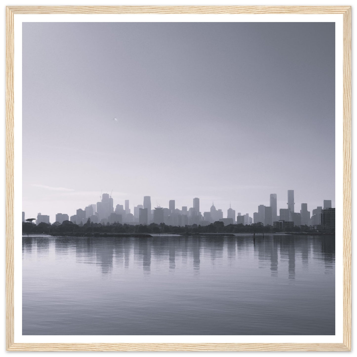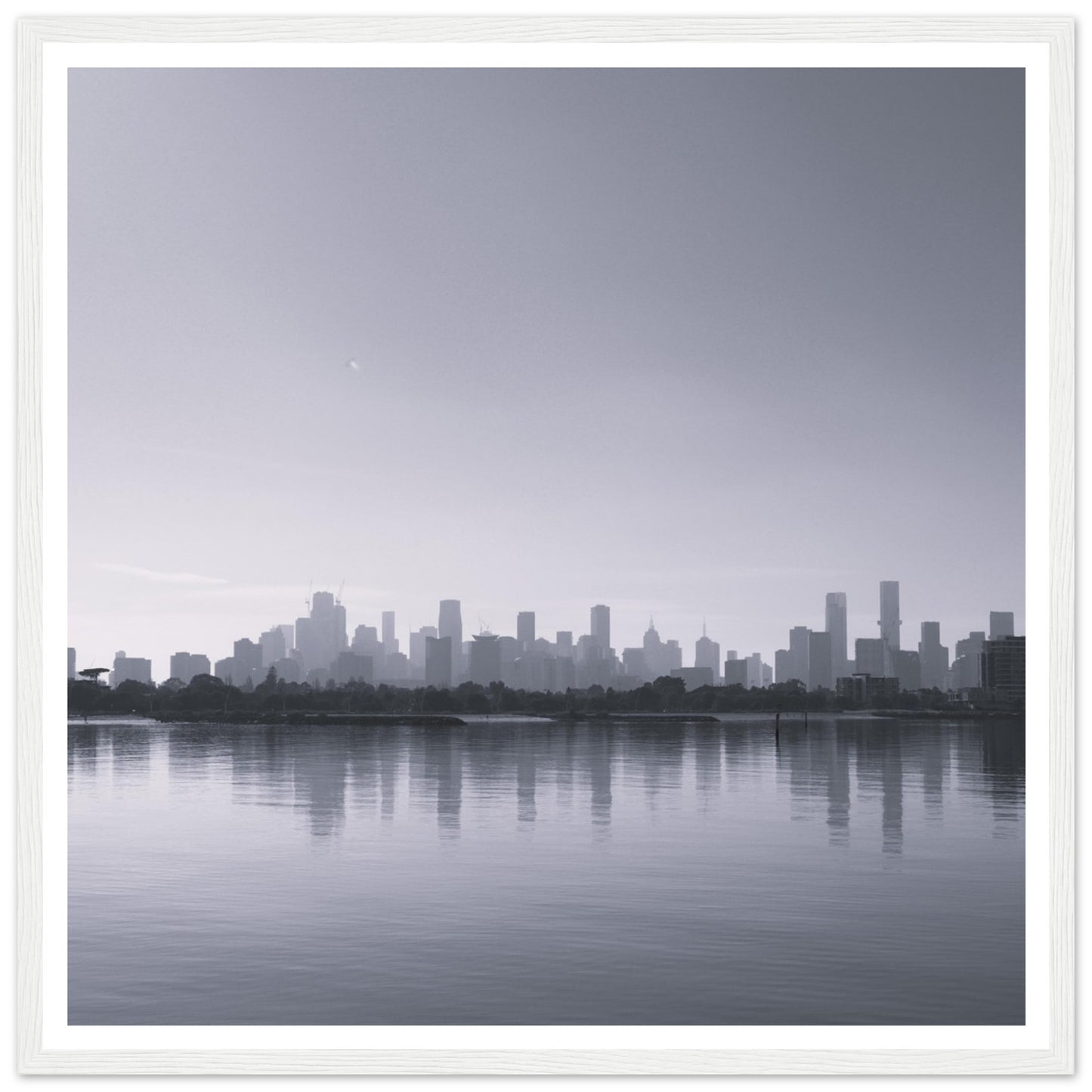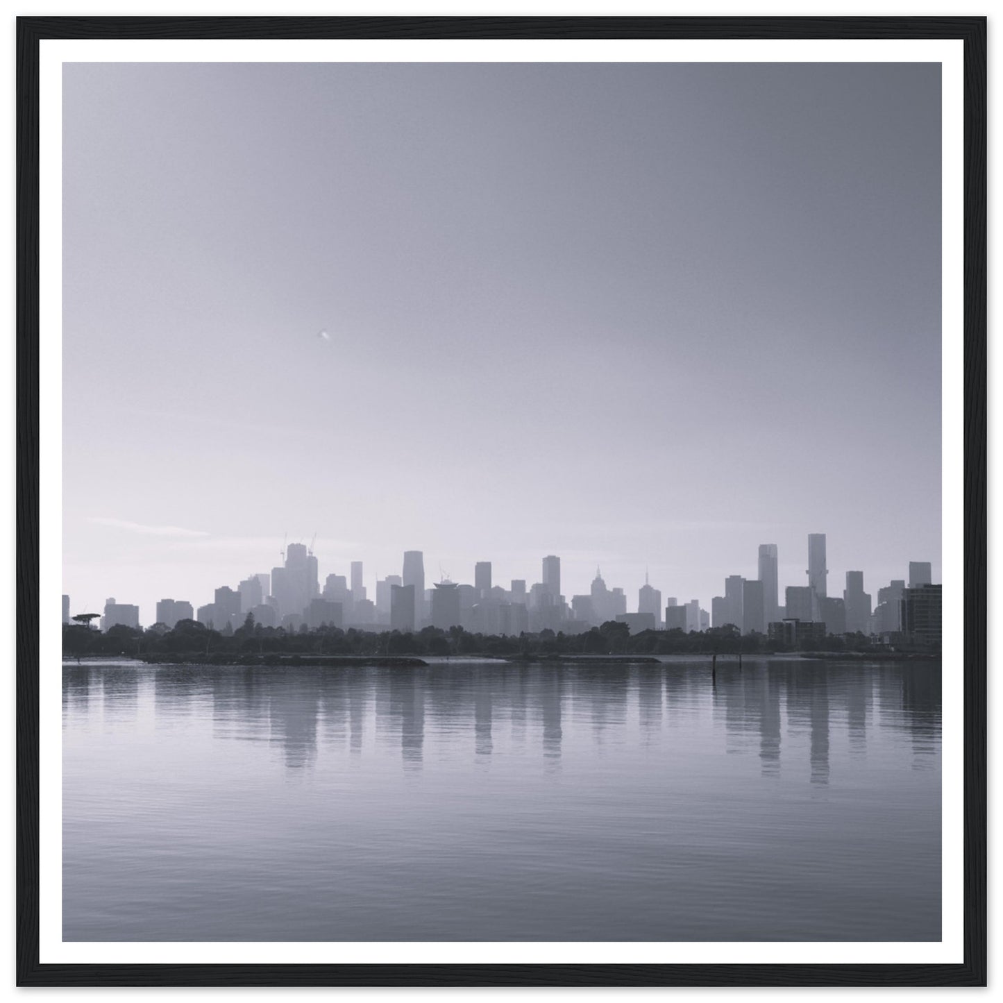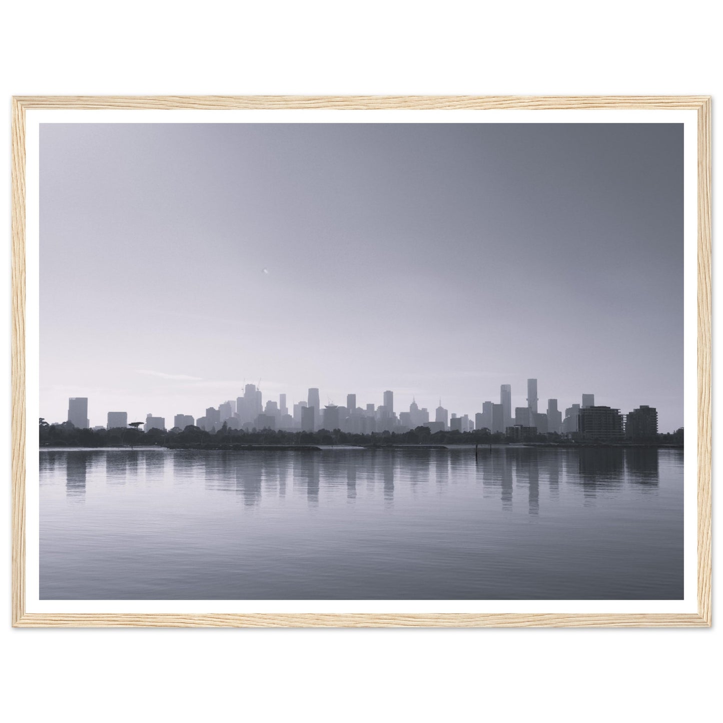 Melbourne skyline, Sandridge lookout (B&W) - Premium Matte Paper Wooden Framed Poster