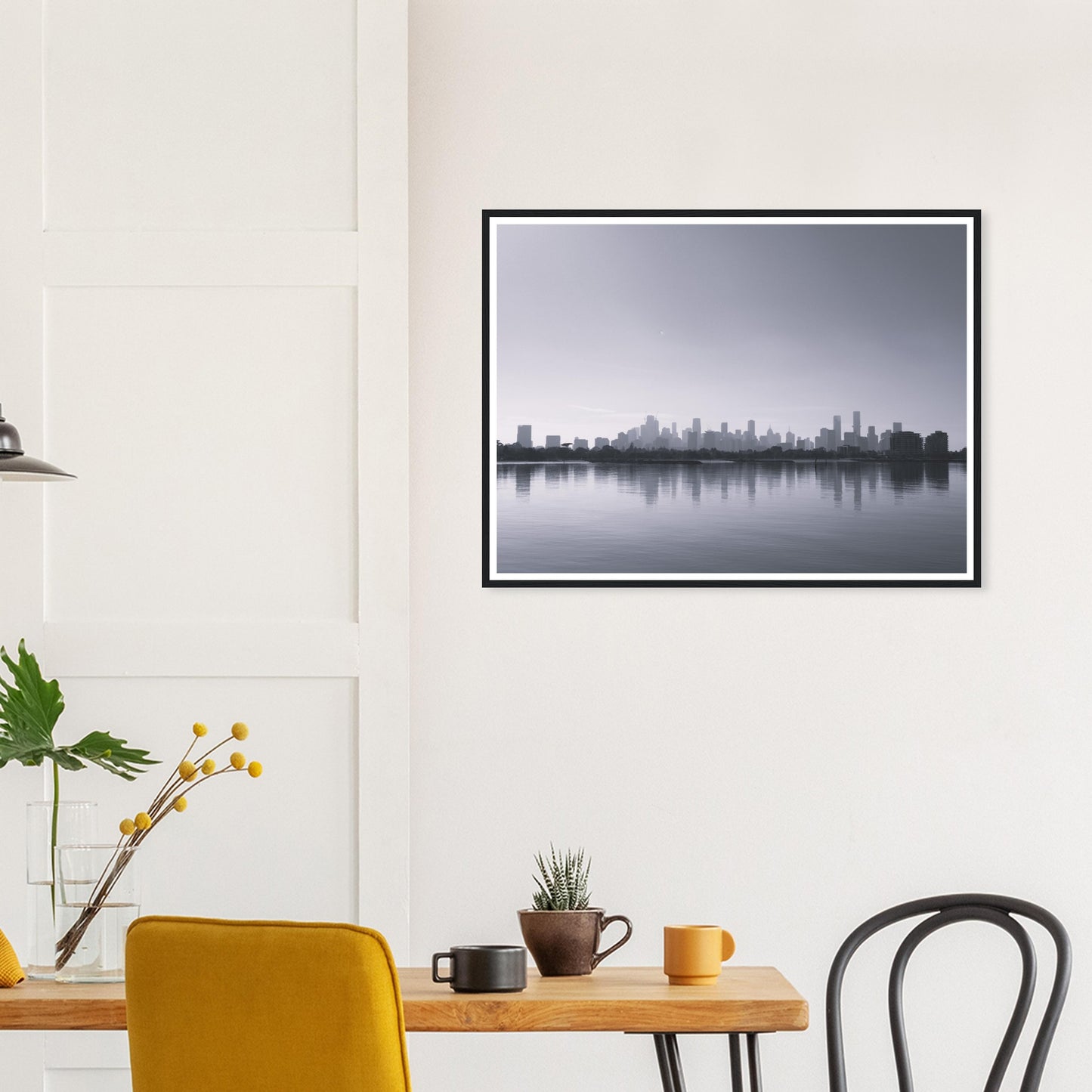 Melbourne skyline, Sandridge lookout - Black & White - Premium matte paper poster with wooden frame
