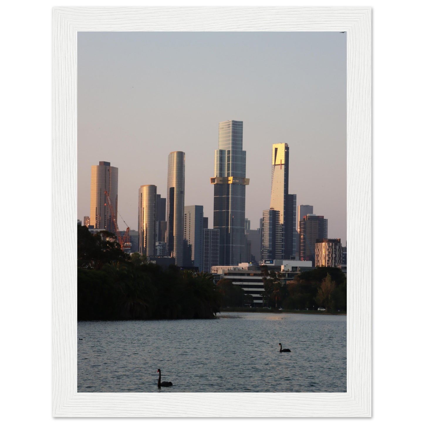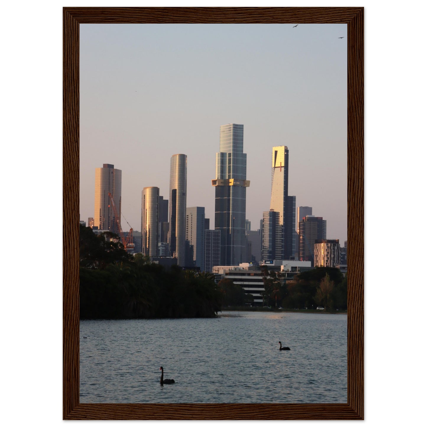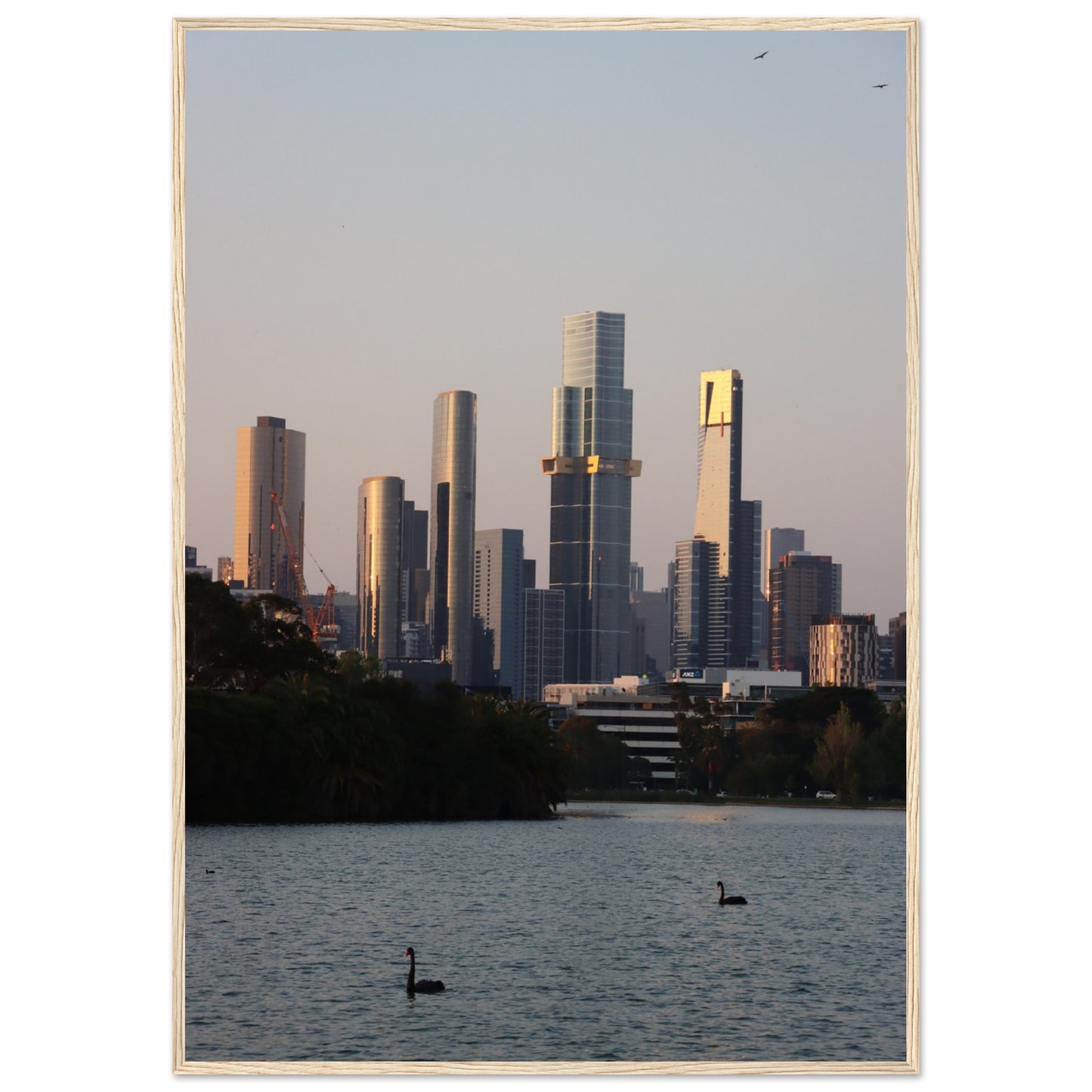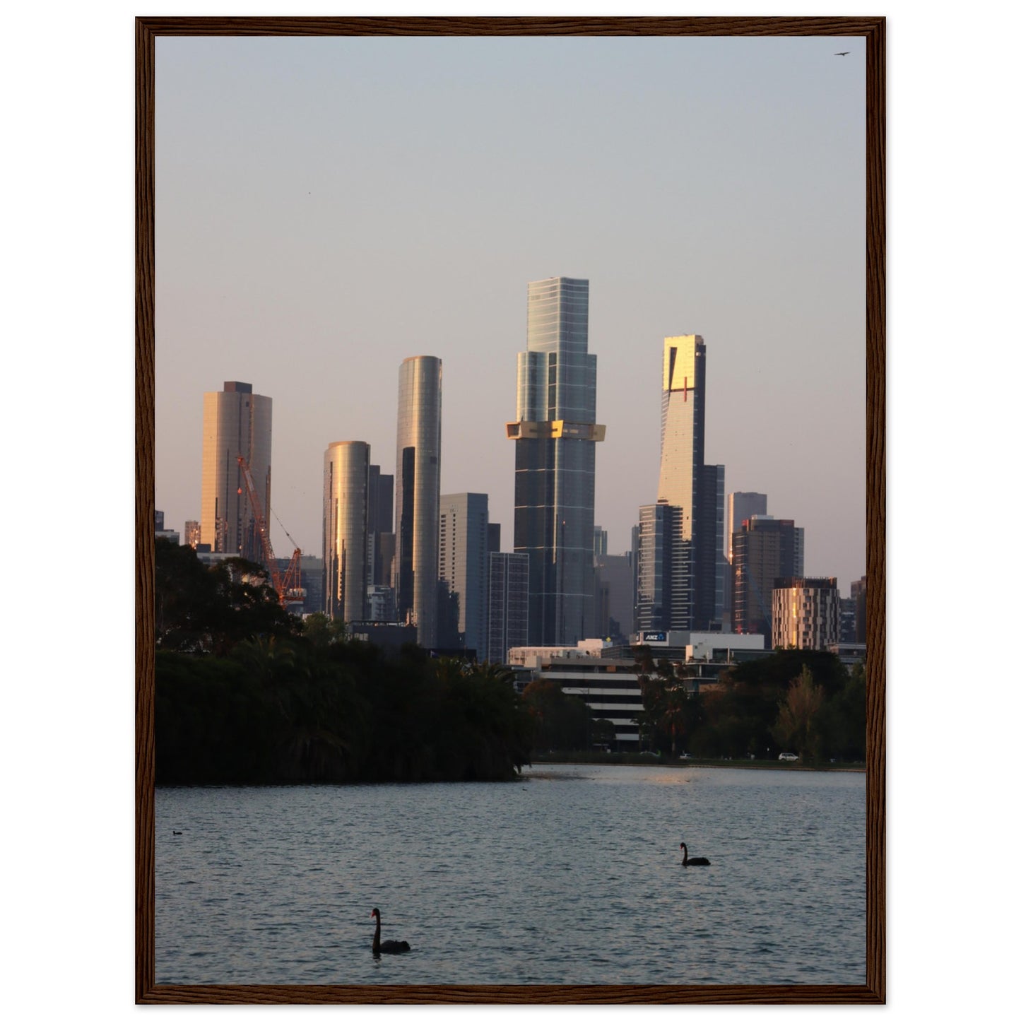 Melbourne skyscrapers at dusk, Australia - Premium Matte Paper Wooden Framed Poster