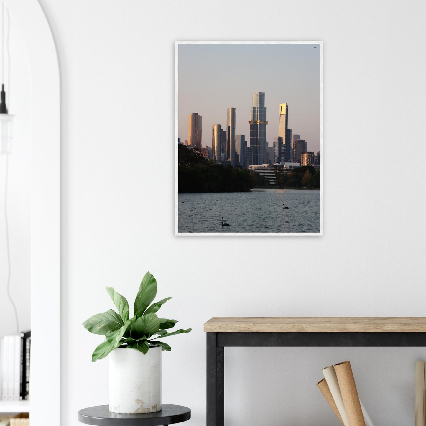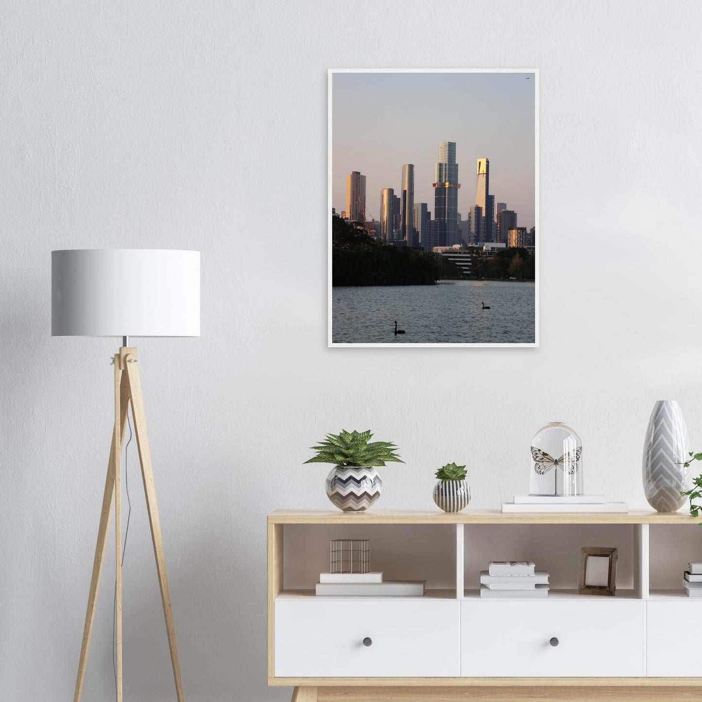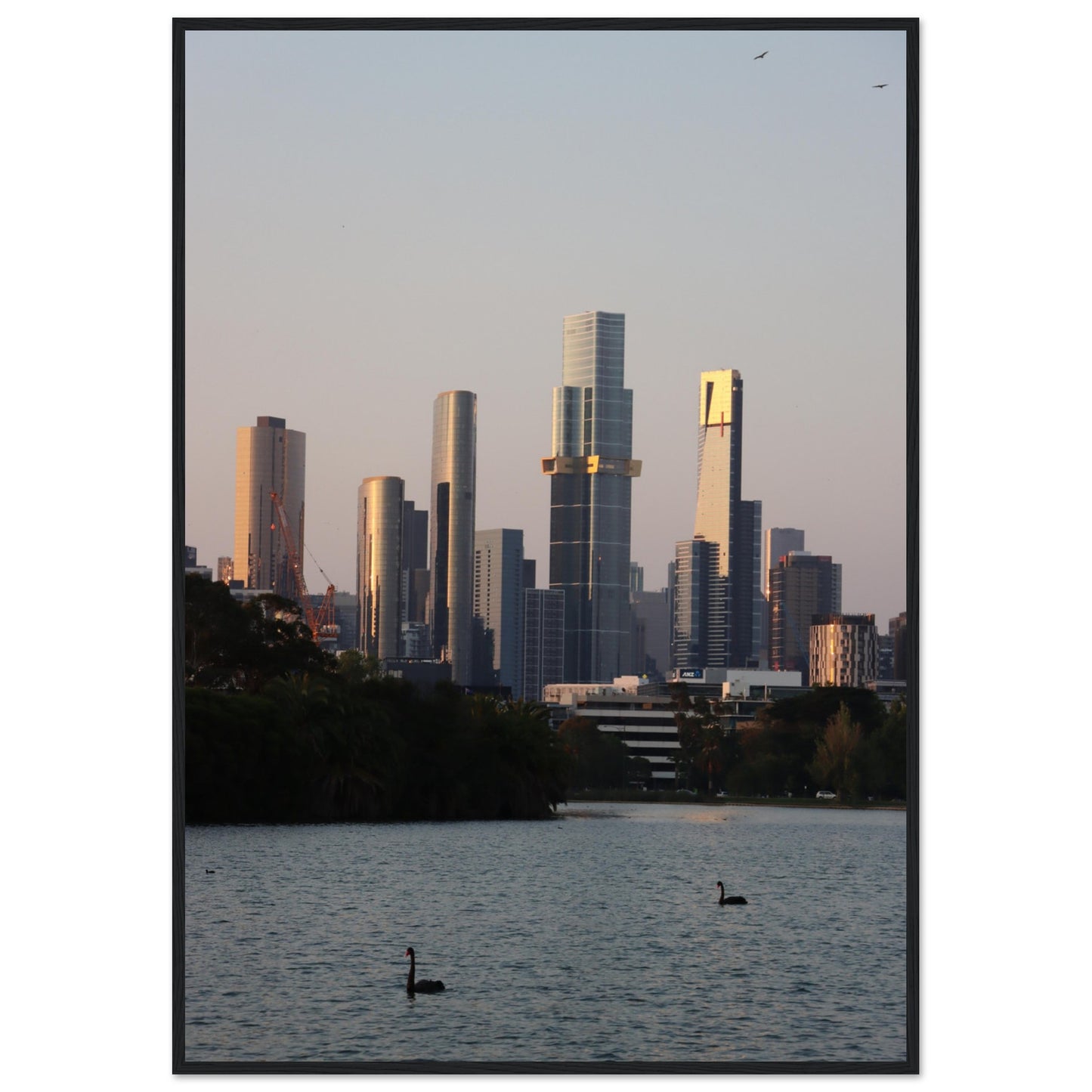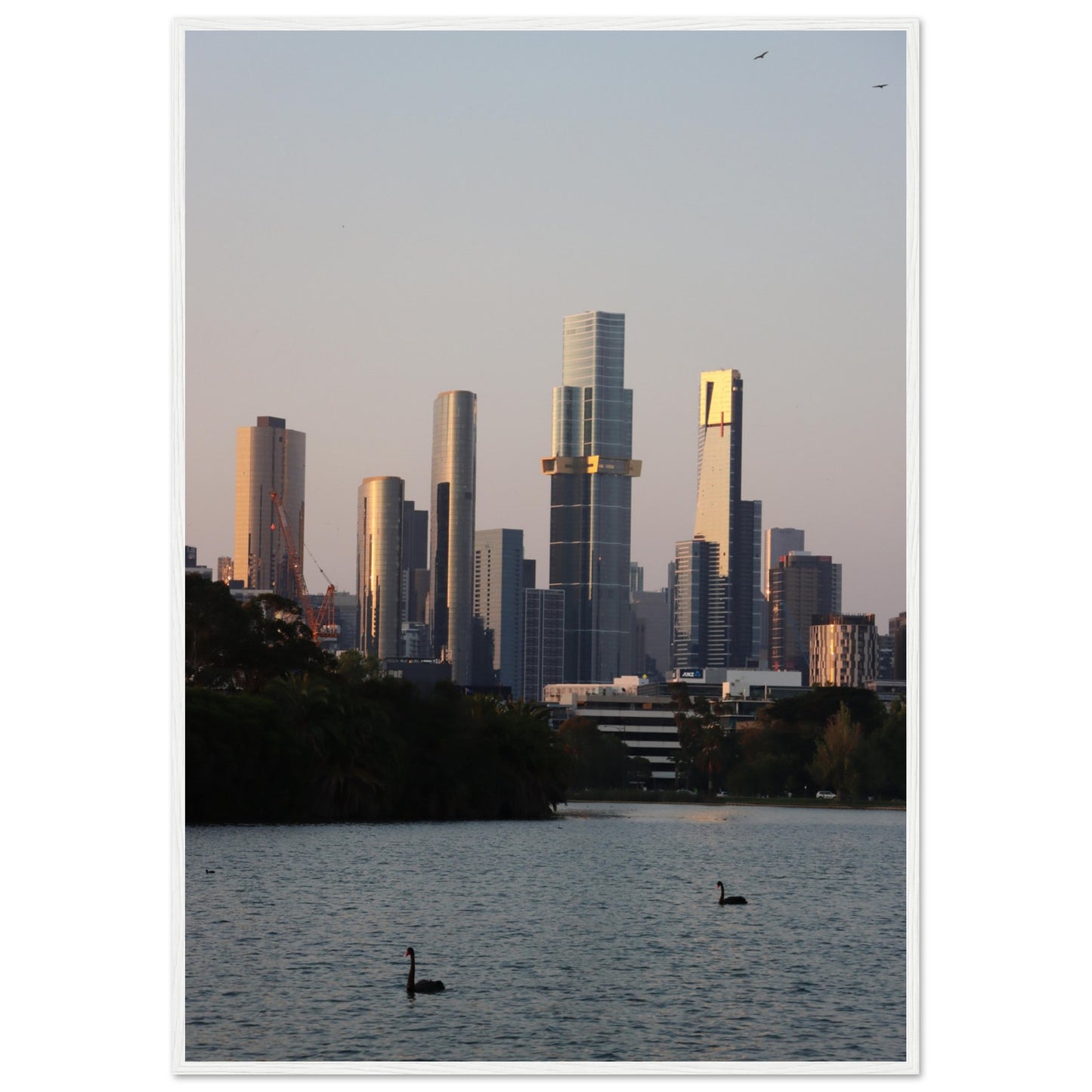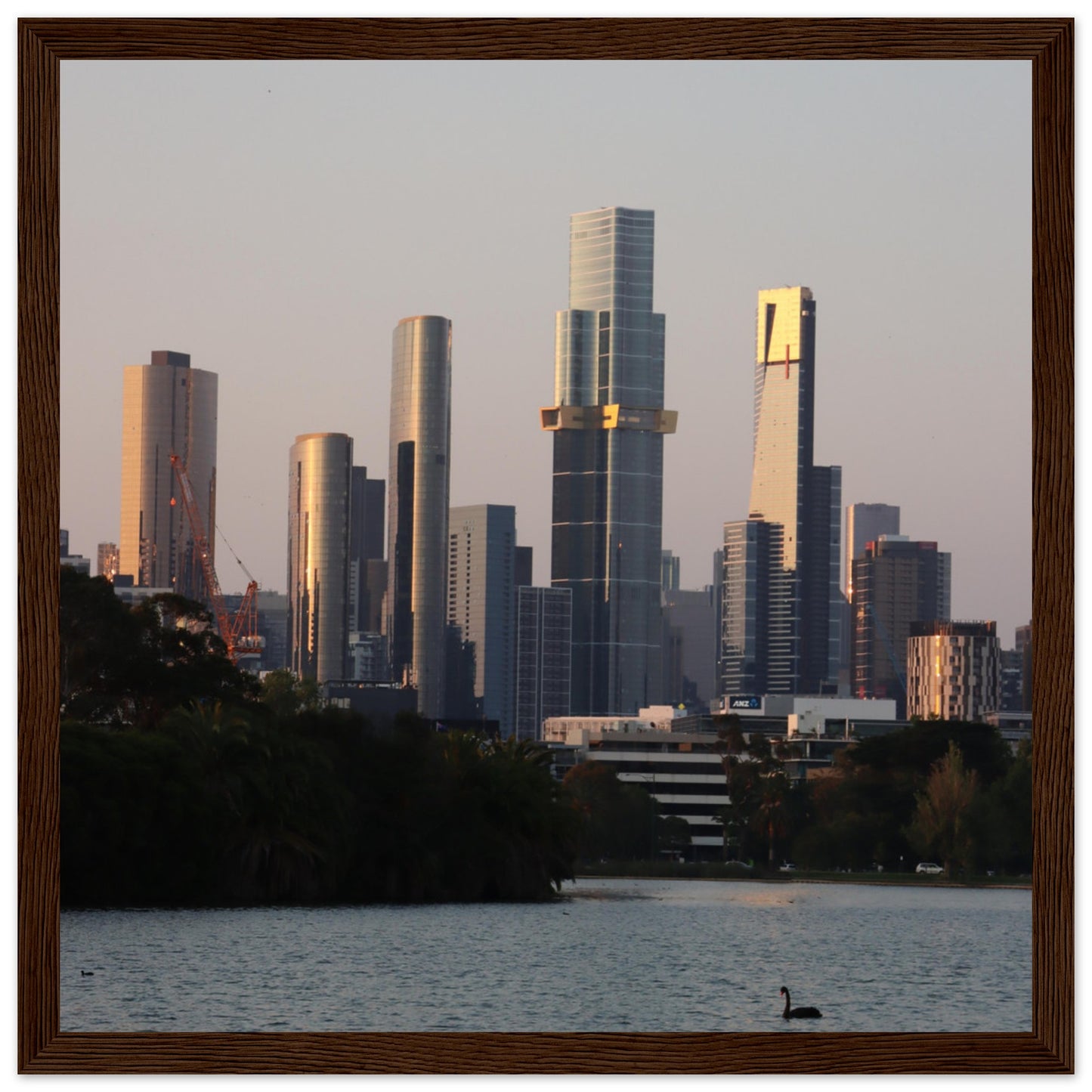 Melbourne skyscrapers at dusk, Australia - Premium Matte Paper Wooden Framed Poster