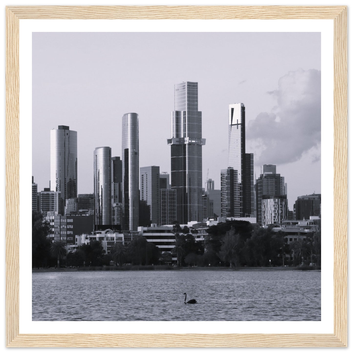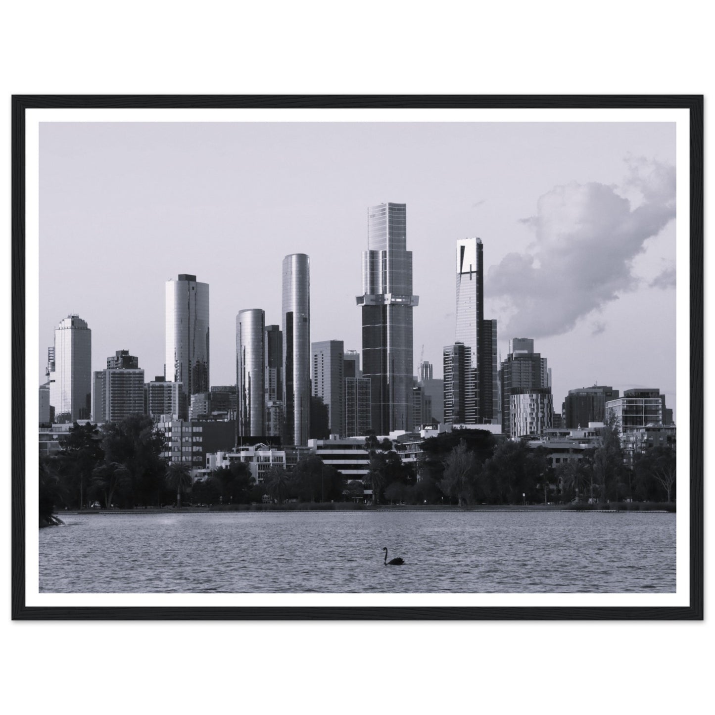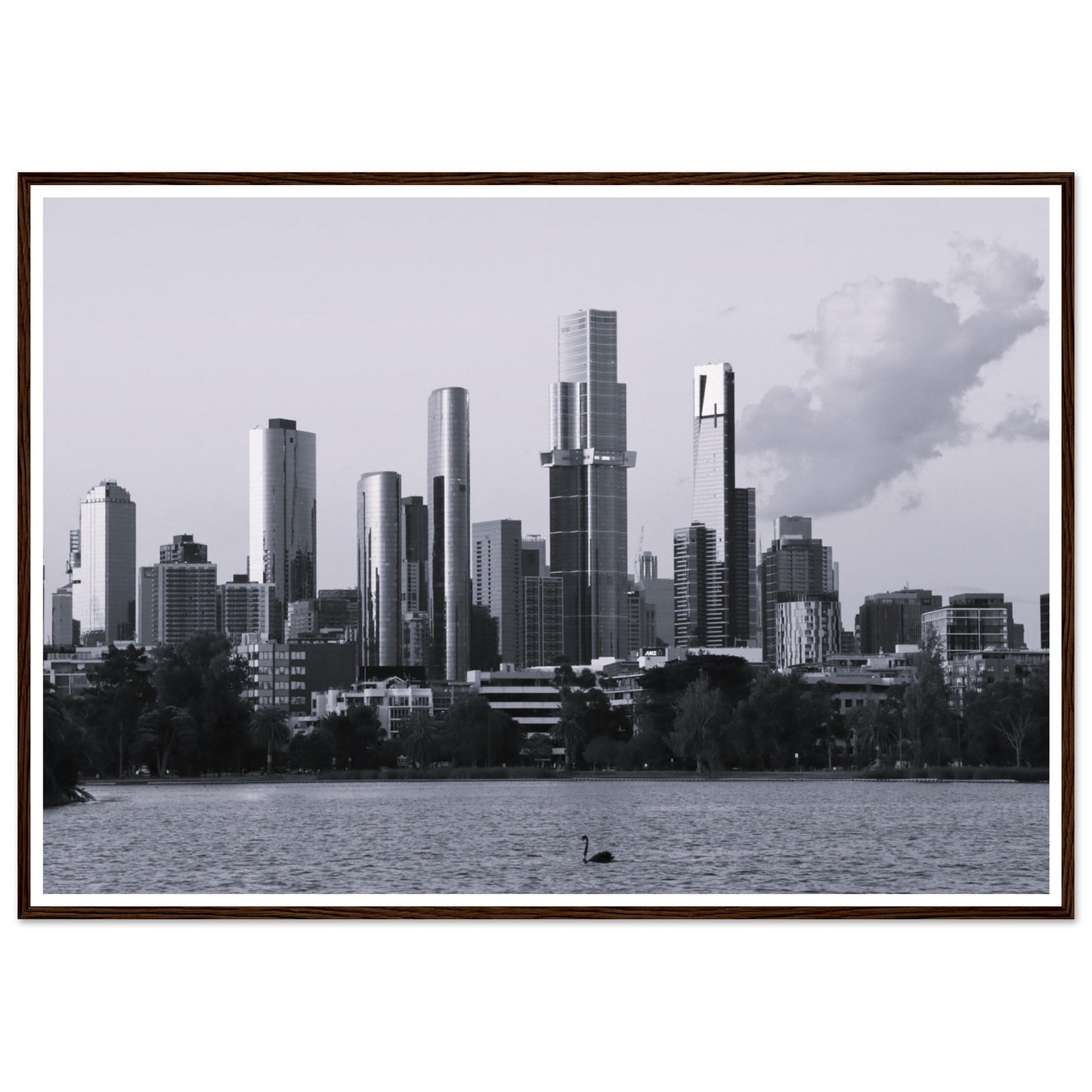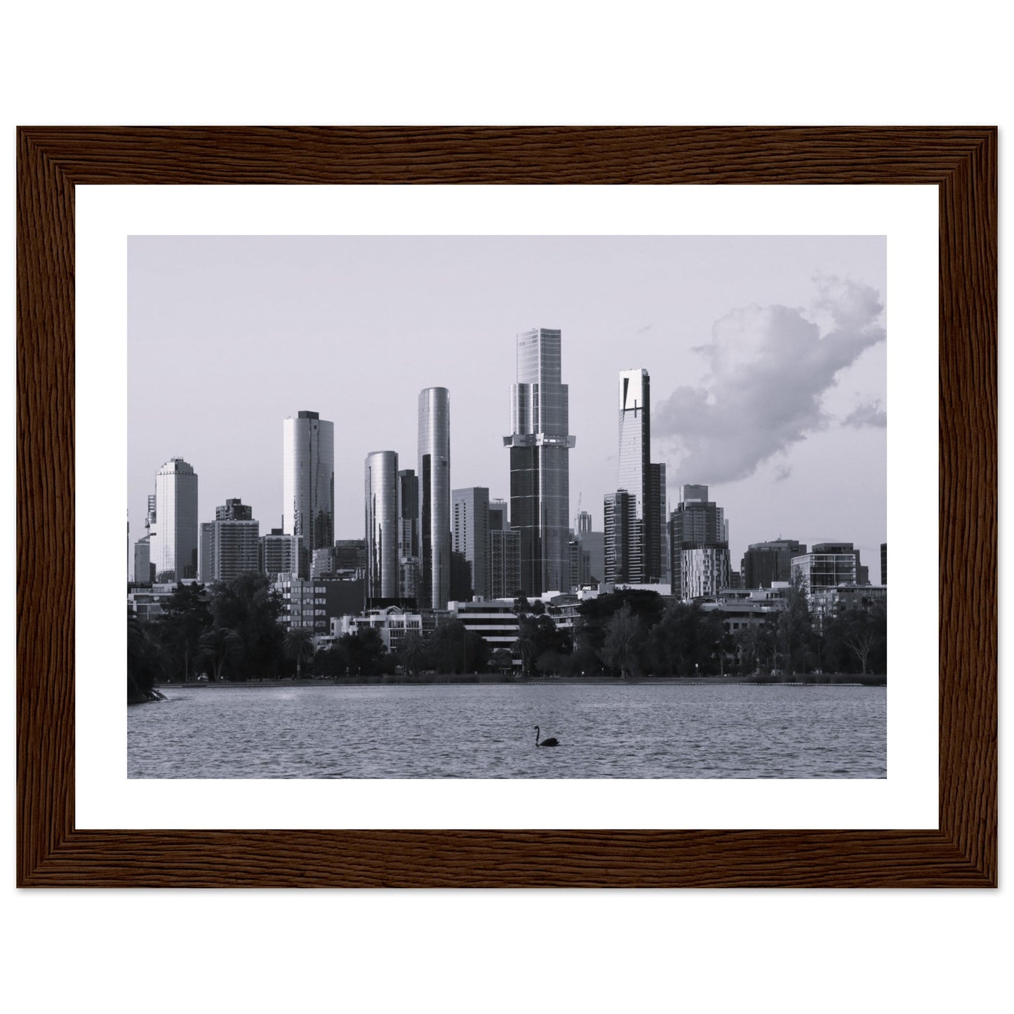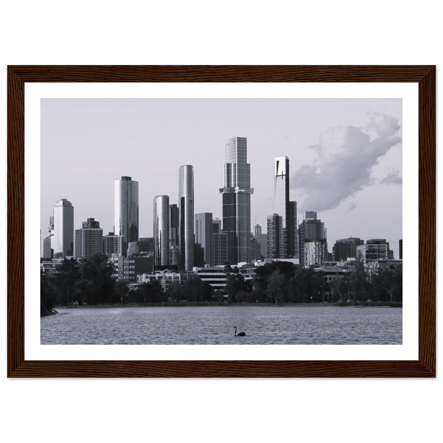 Melbourne skyscrapers by the water (B&W) - Premium Matte Paper Wooden Framed Poster