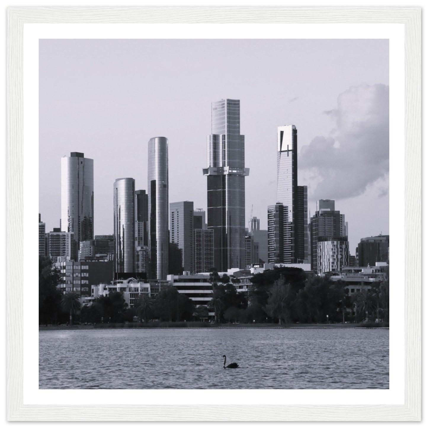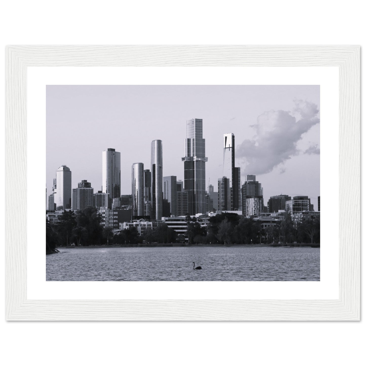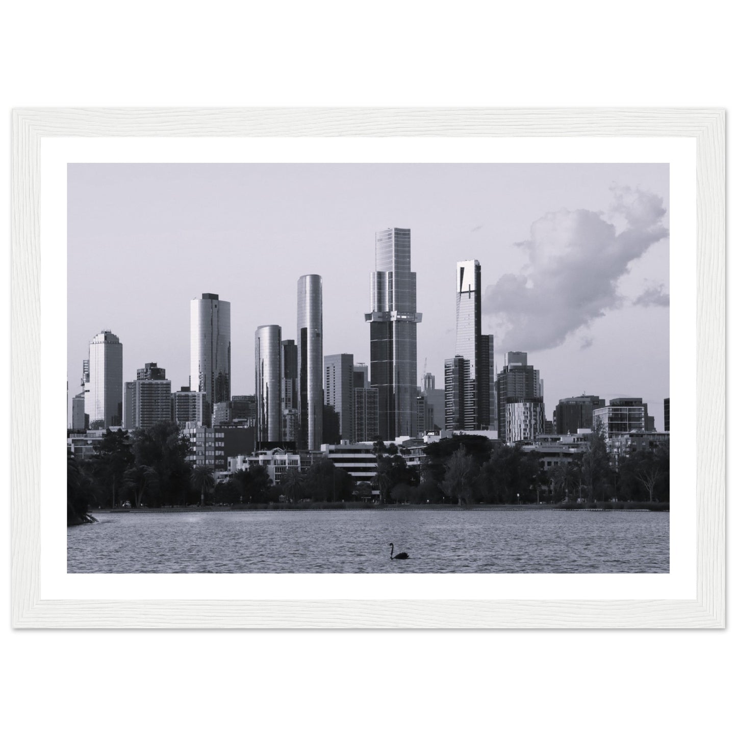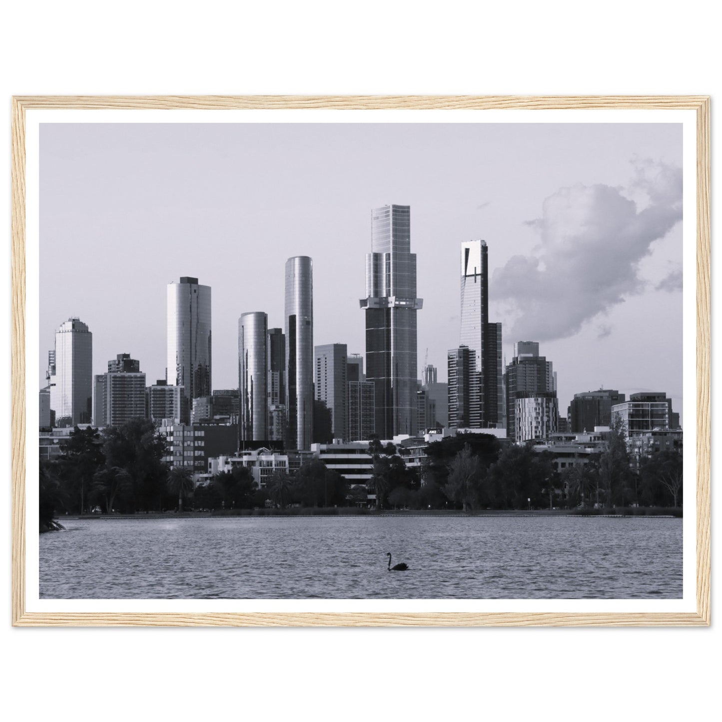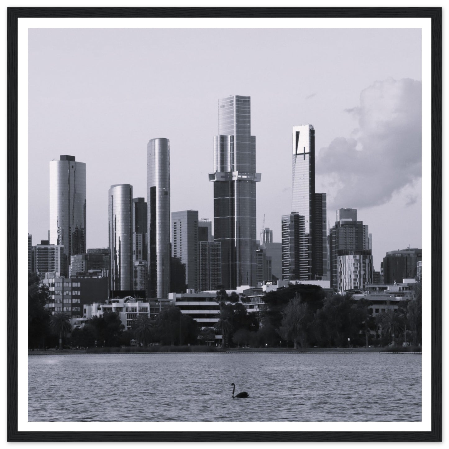 Melbourne skyscrapers by the water (B&W) - Premium Matte Paper Wooden Framed Poster