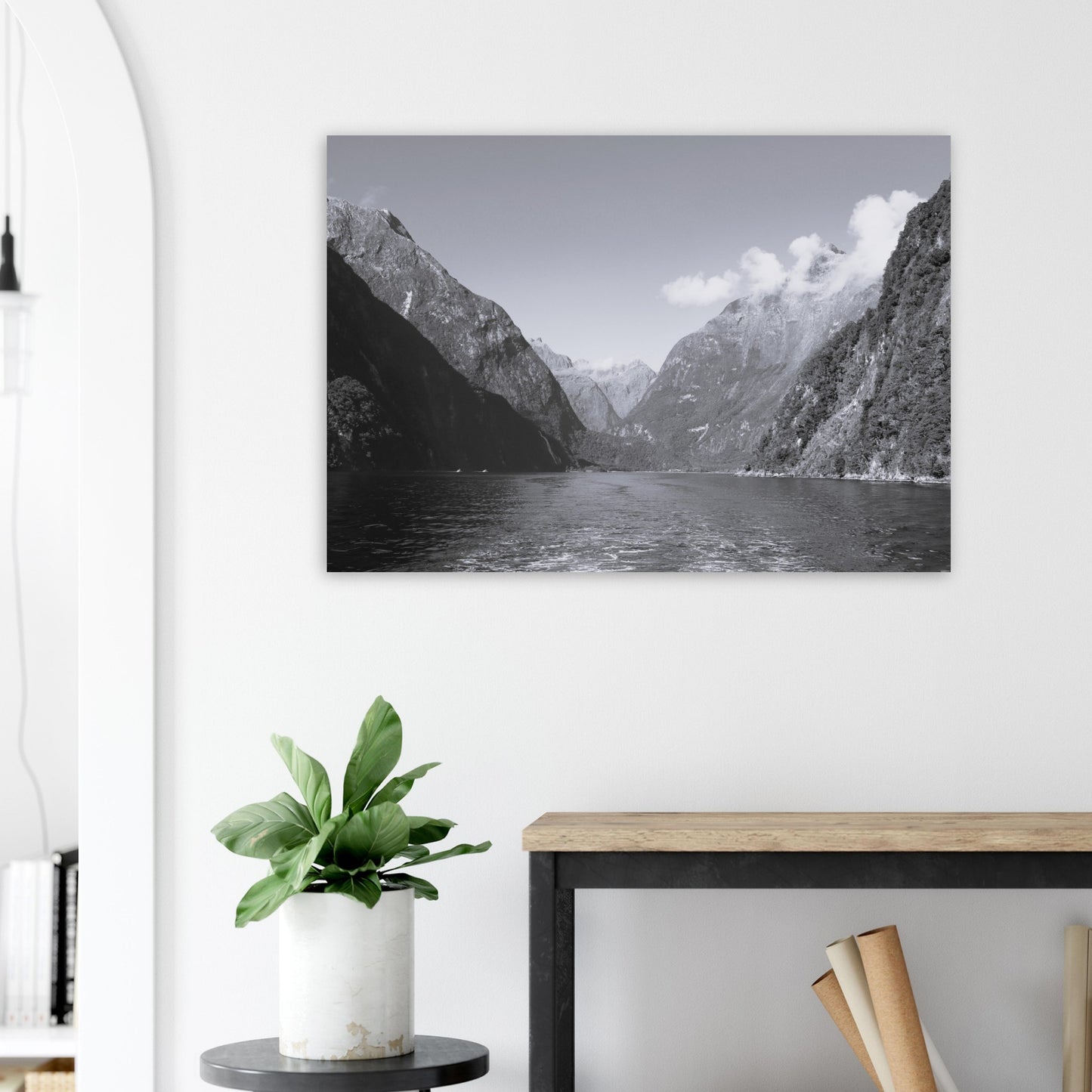 Milford Sound, New Zealand - Black & White - Lightweight foam board.