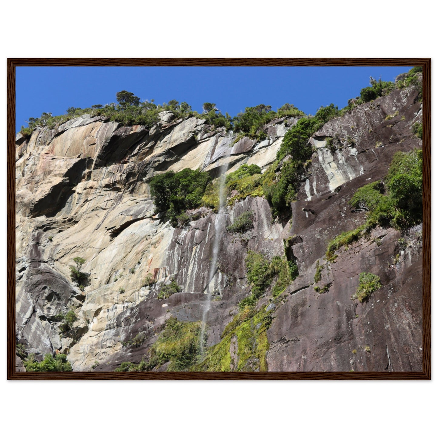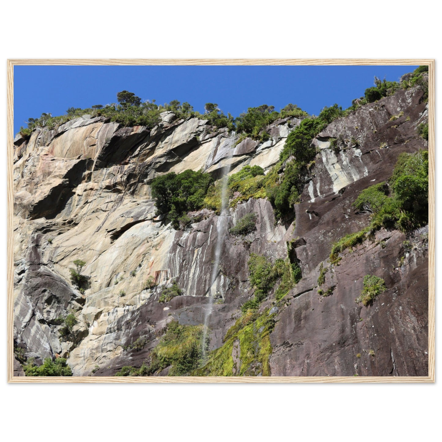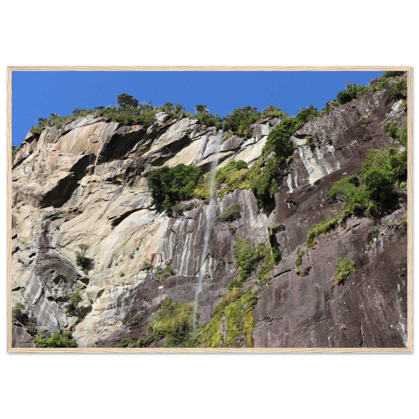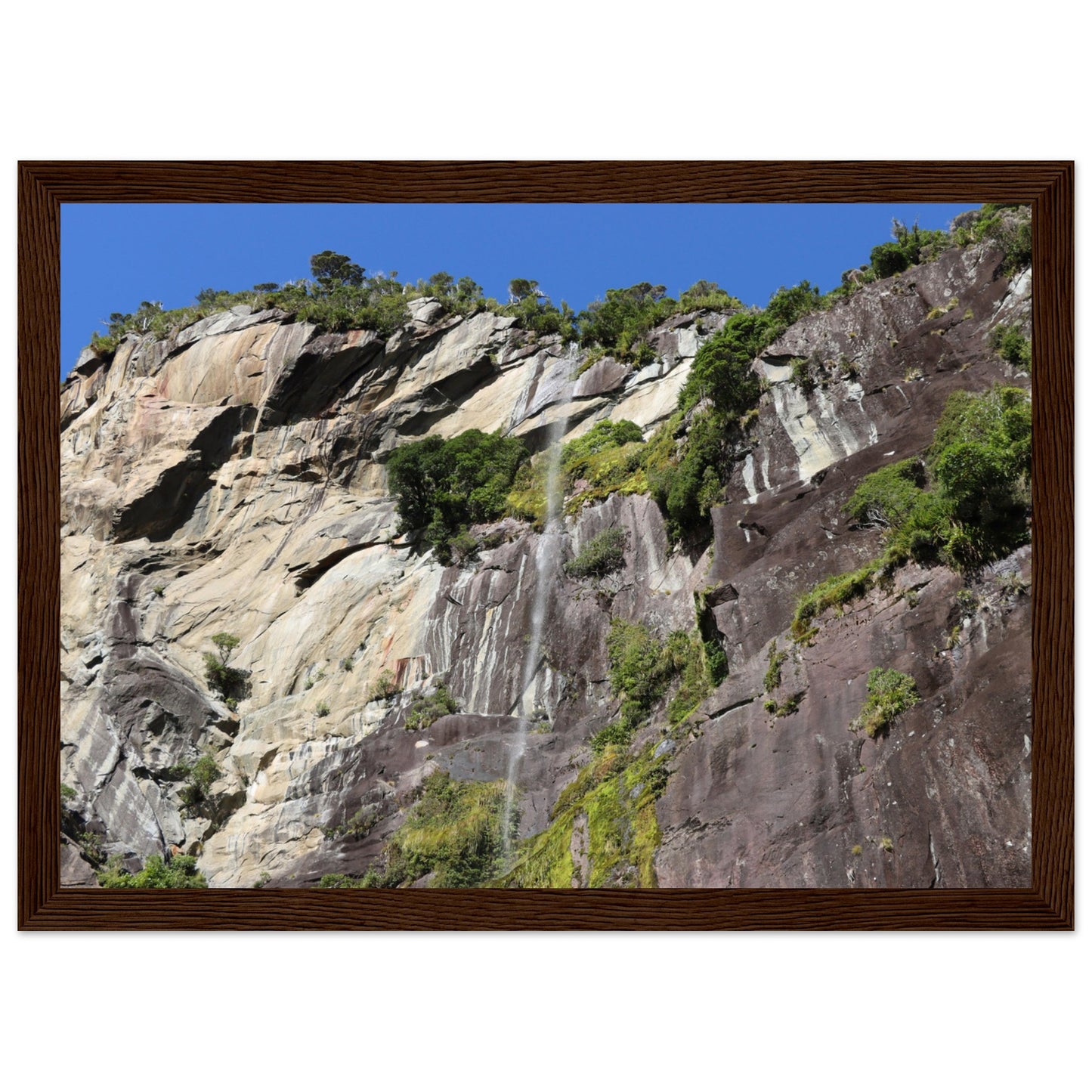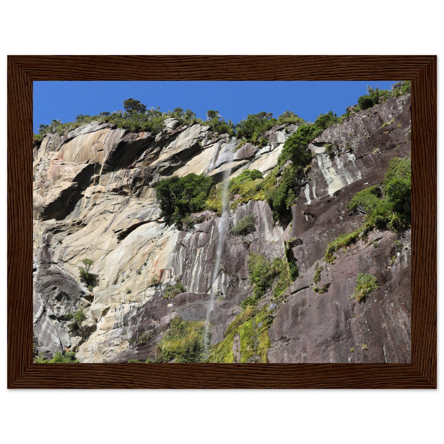 Milford Sound waterfall, New Zealand - Premium Matte Paper Wooden Framed Poster