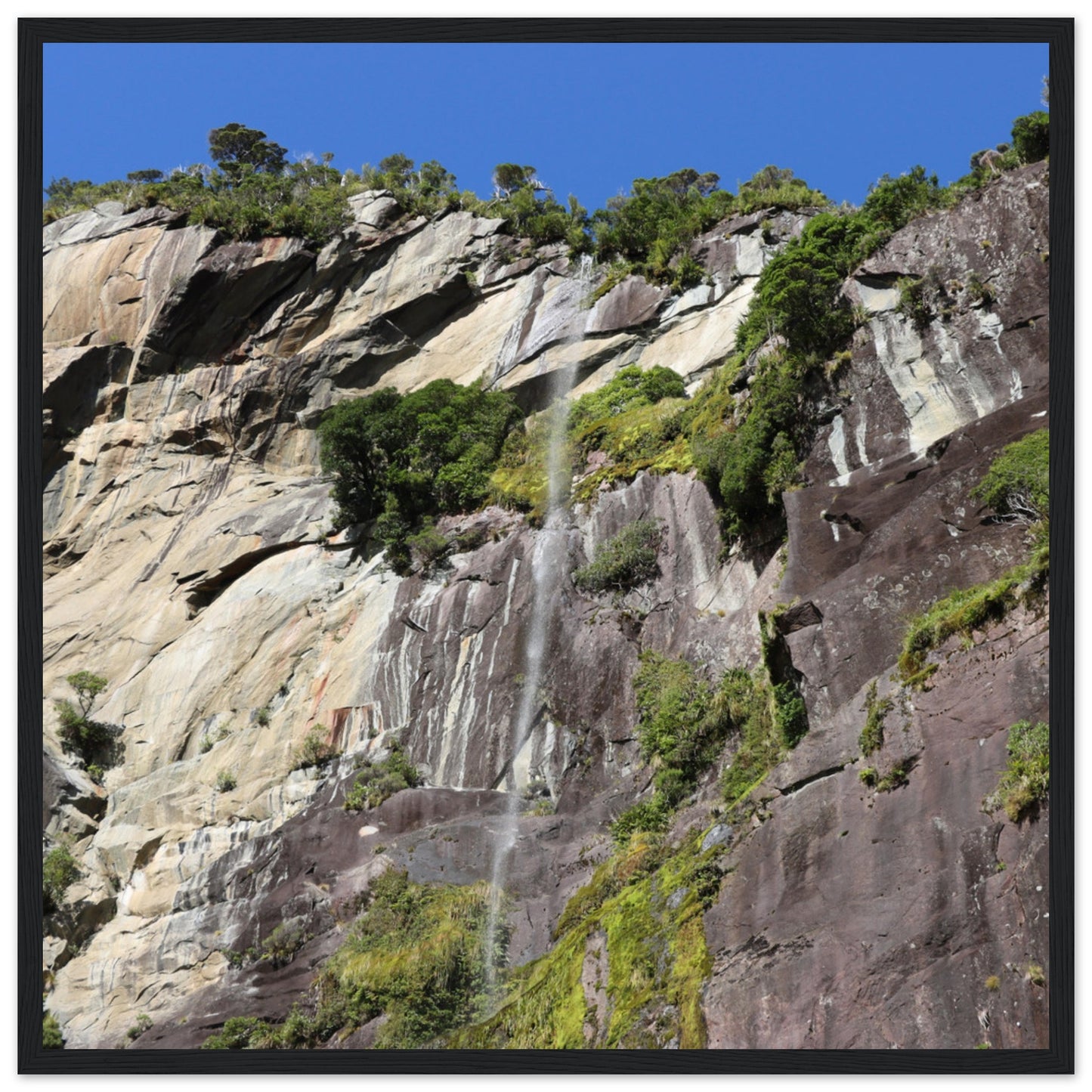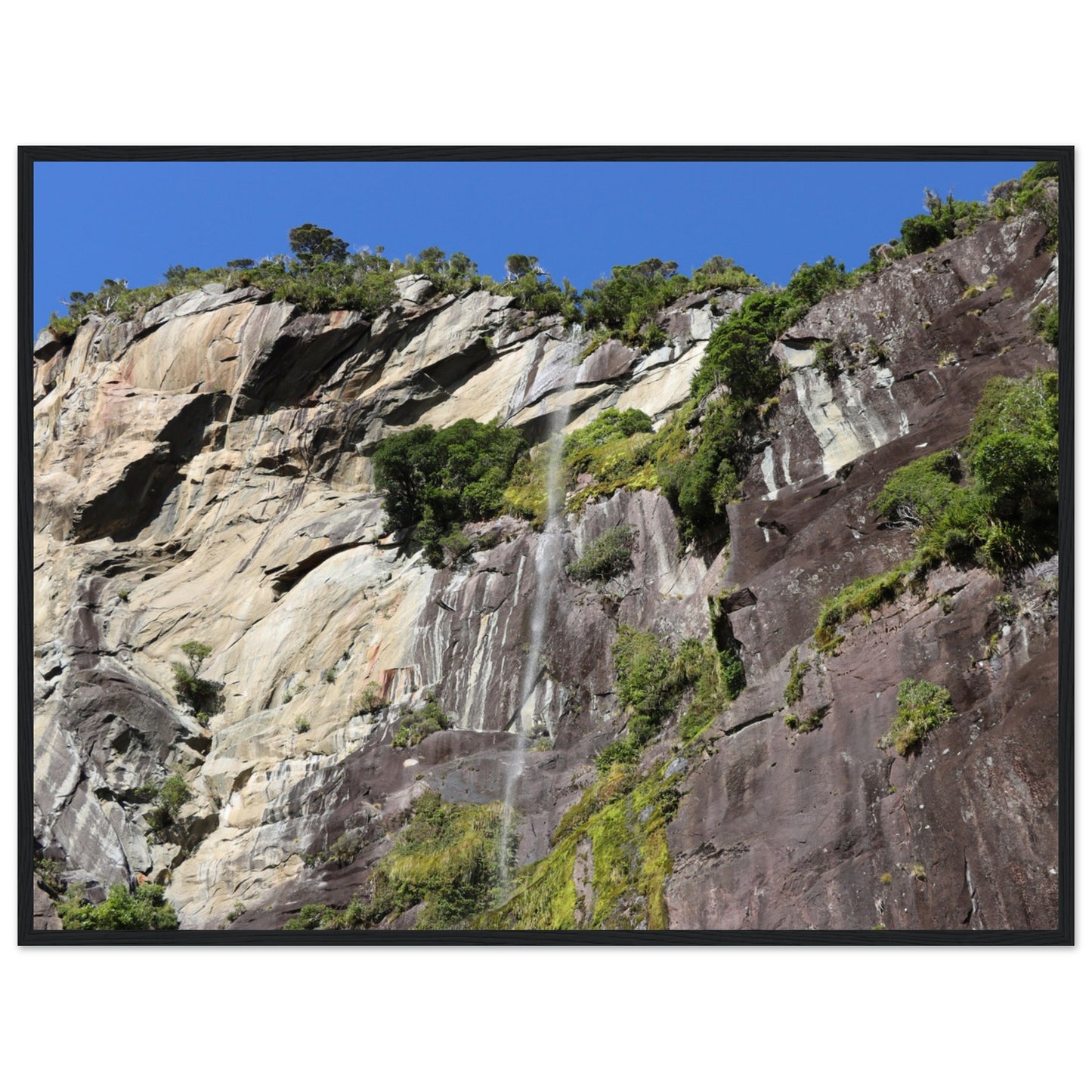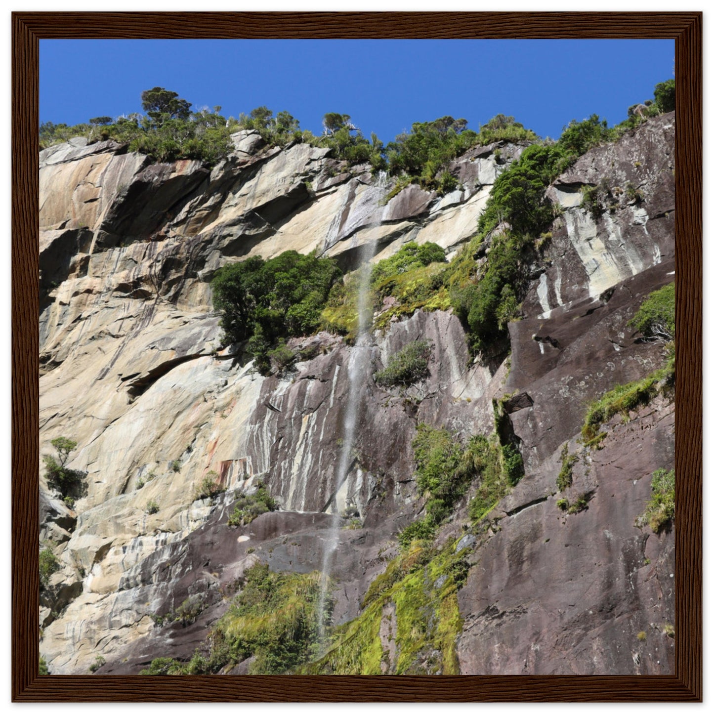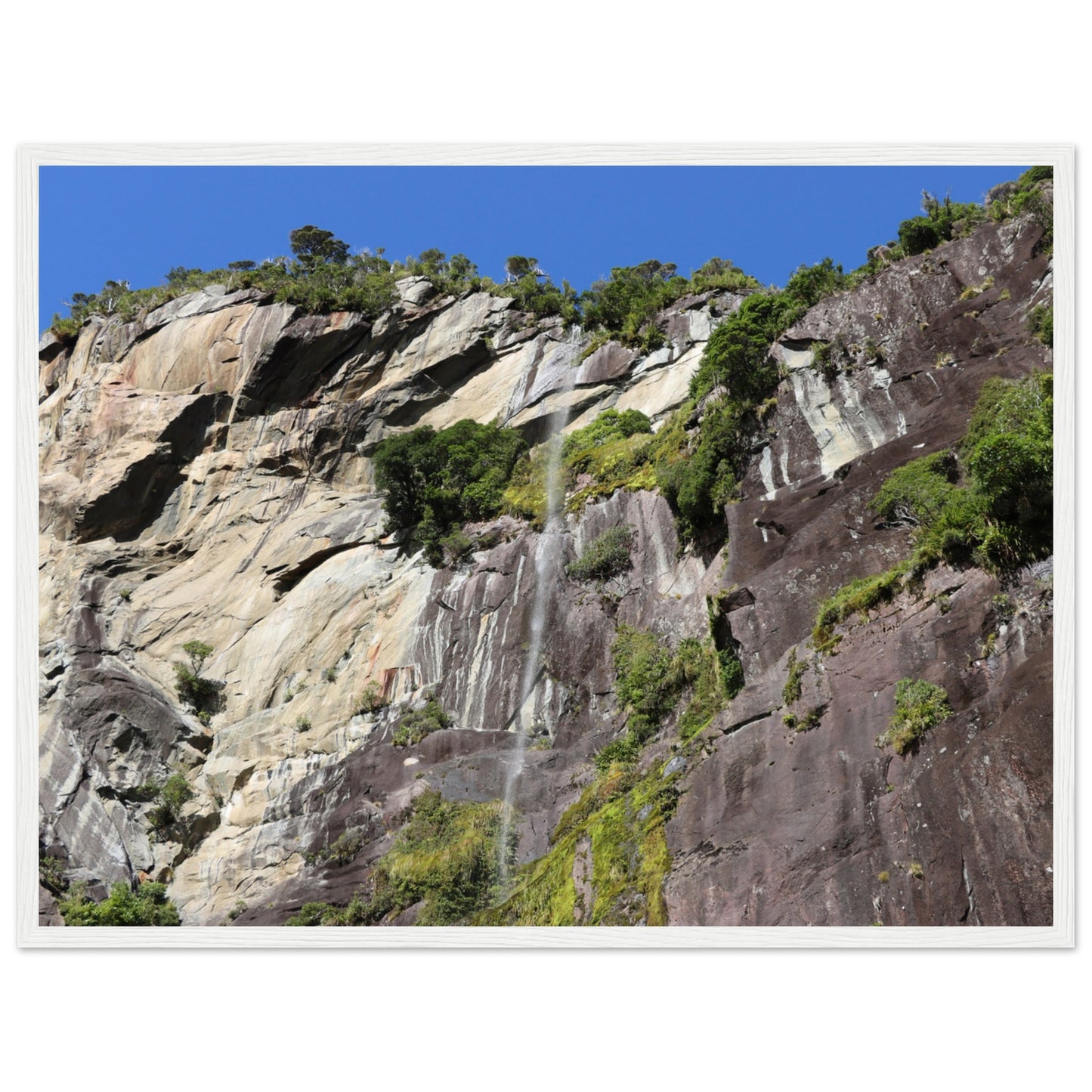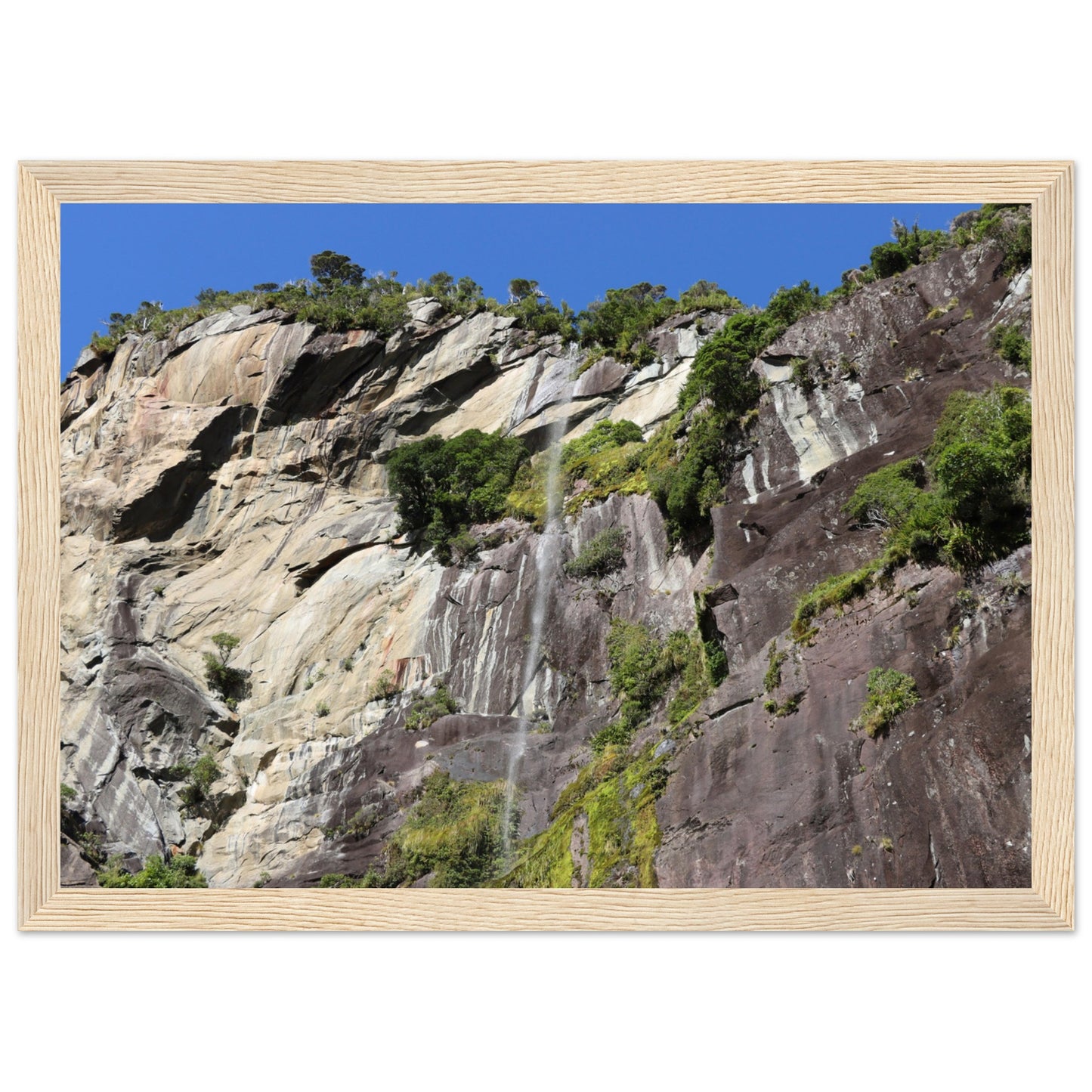 Milford Sound waterfall, New Zealand - Premium Matte Paper Wooden Framed Poster