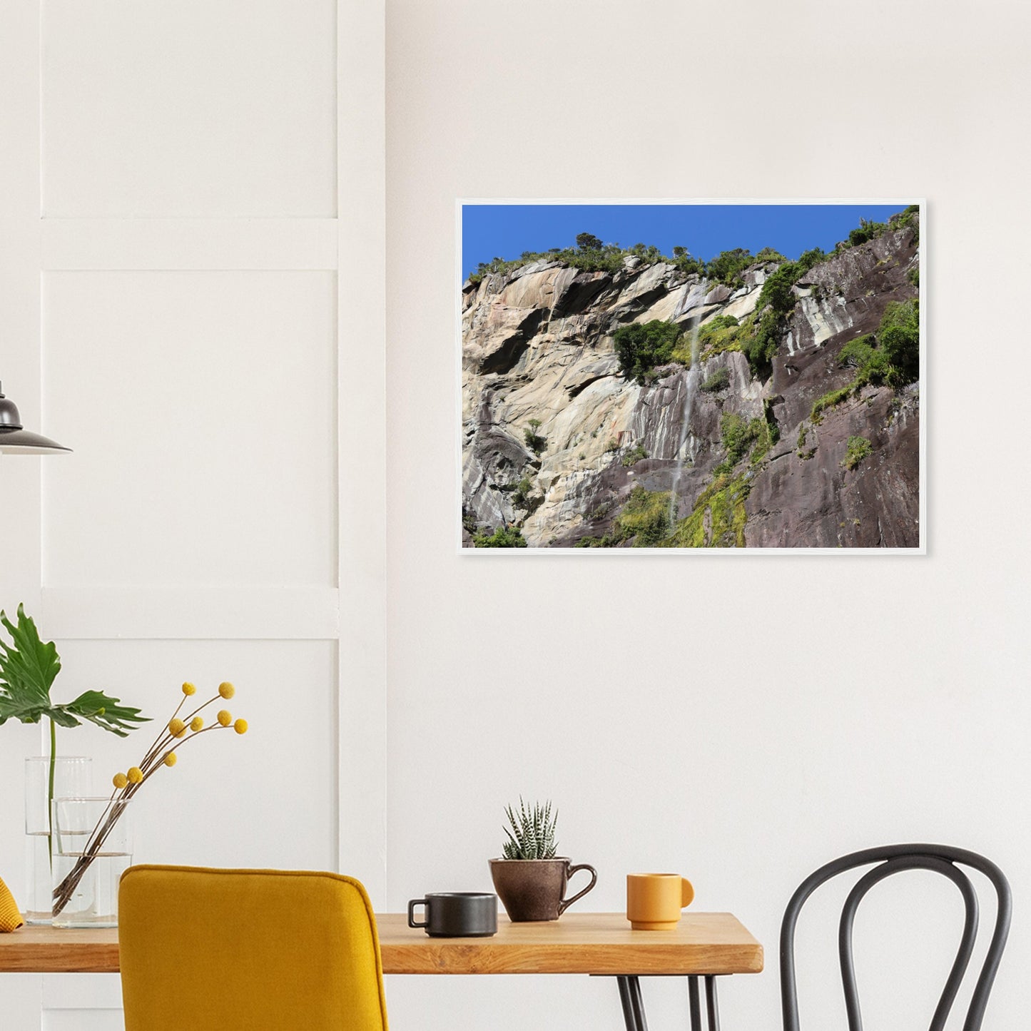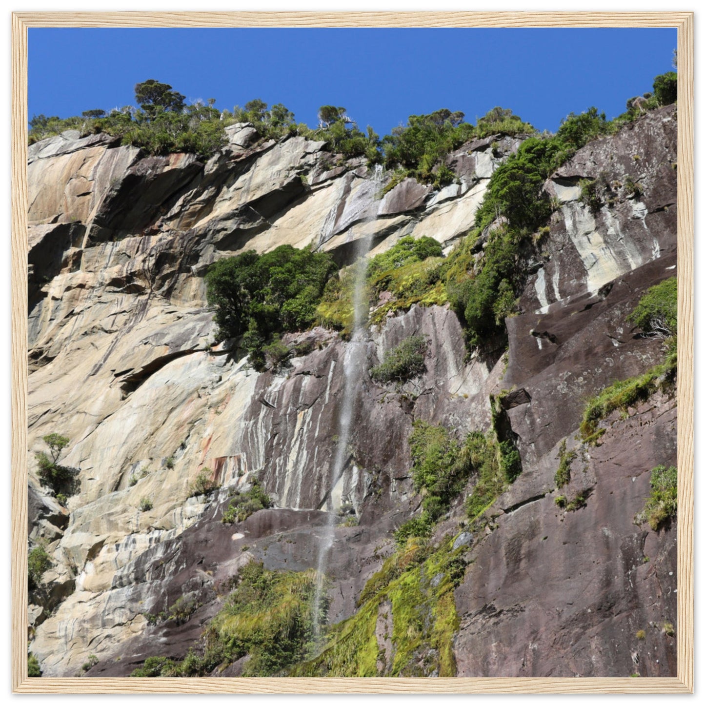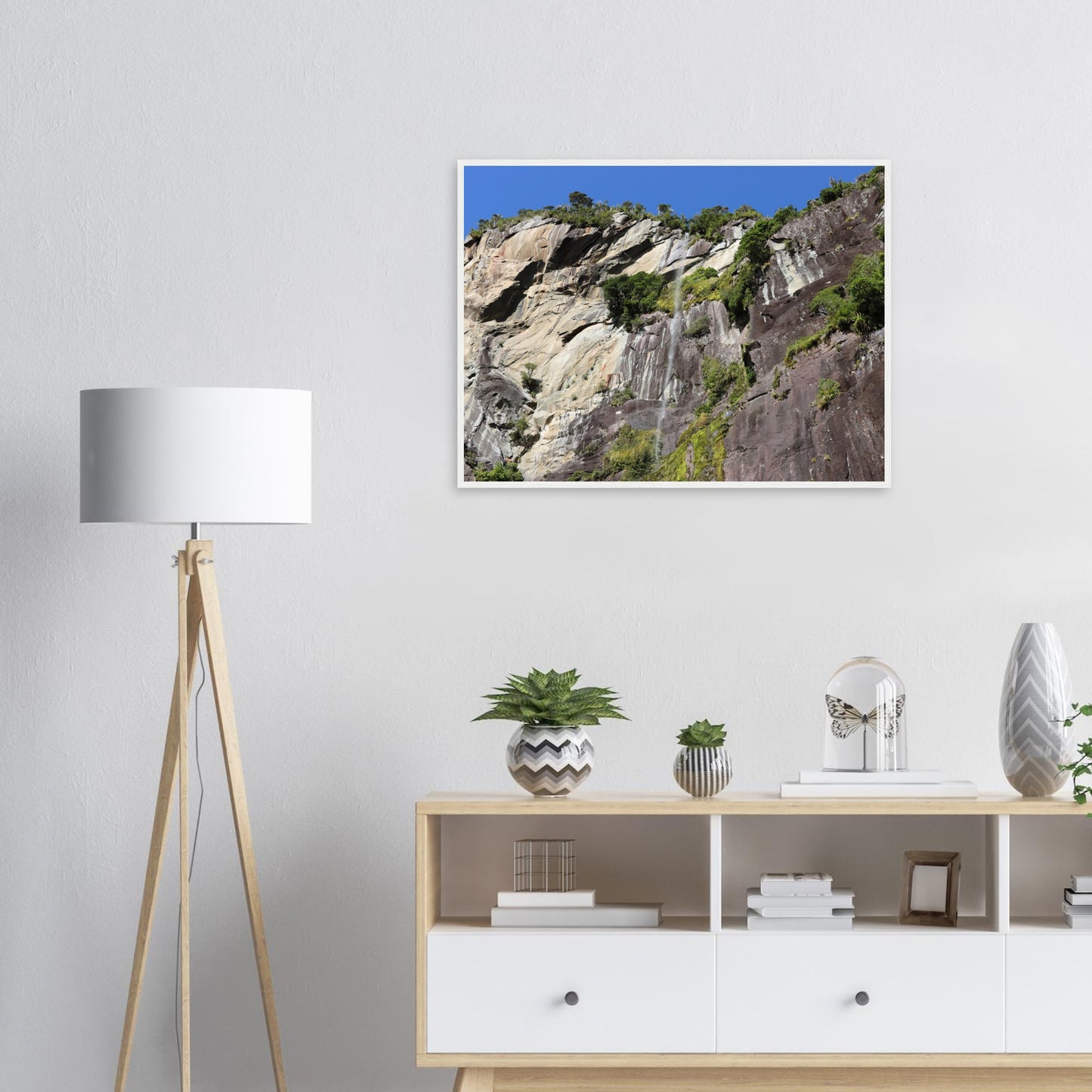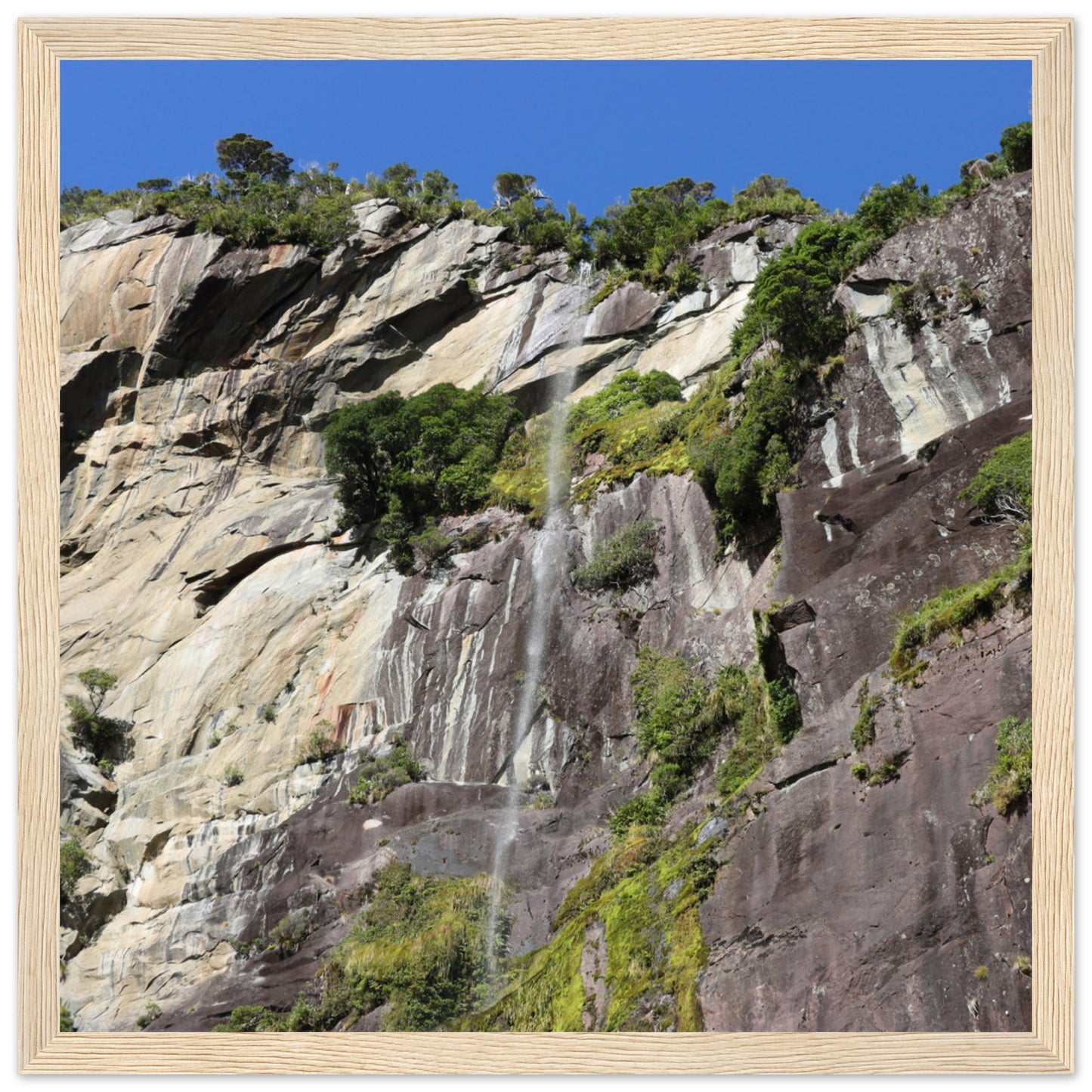 Milford Sound waterfall, New Zealand - Premium matte paper poster with wooden frame