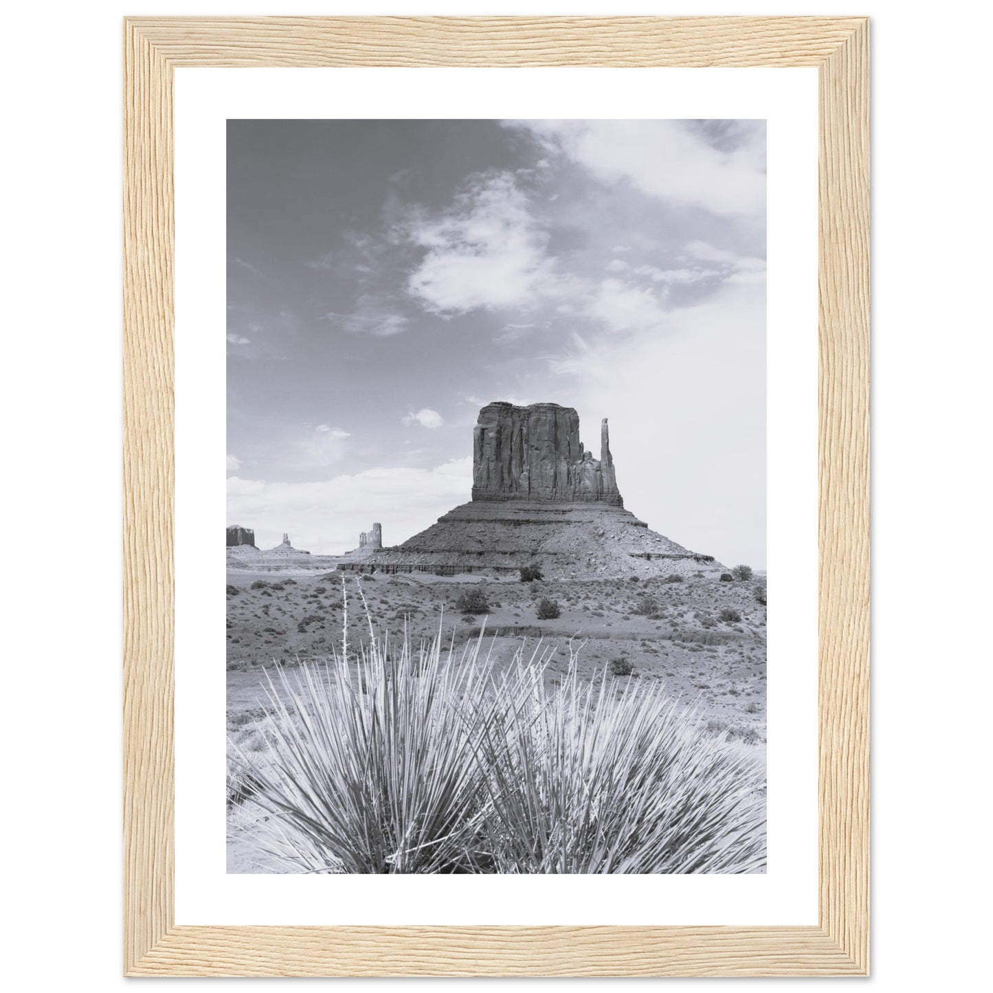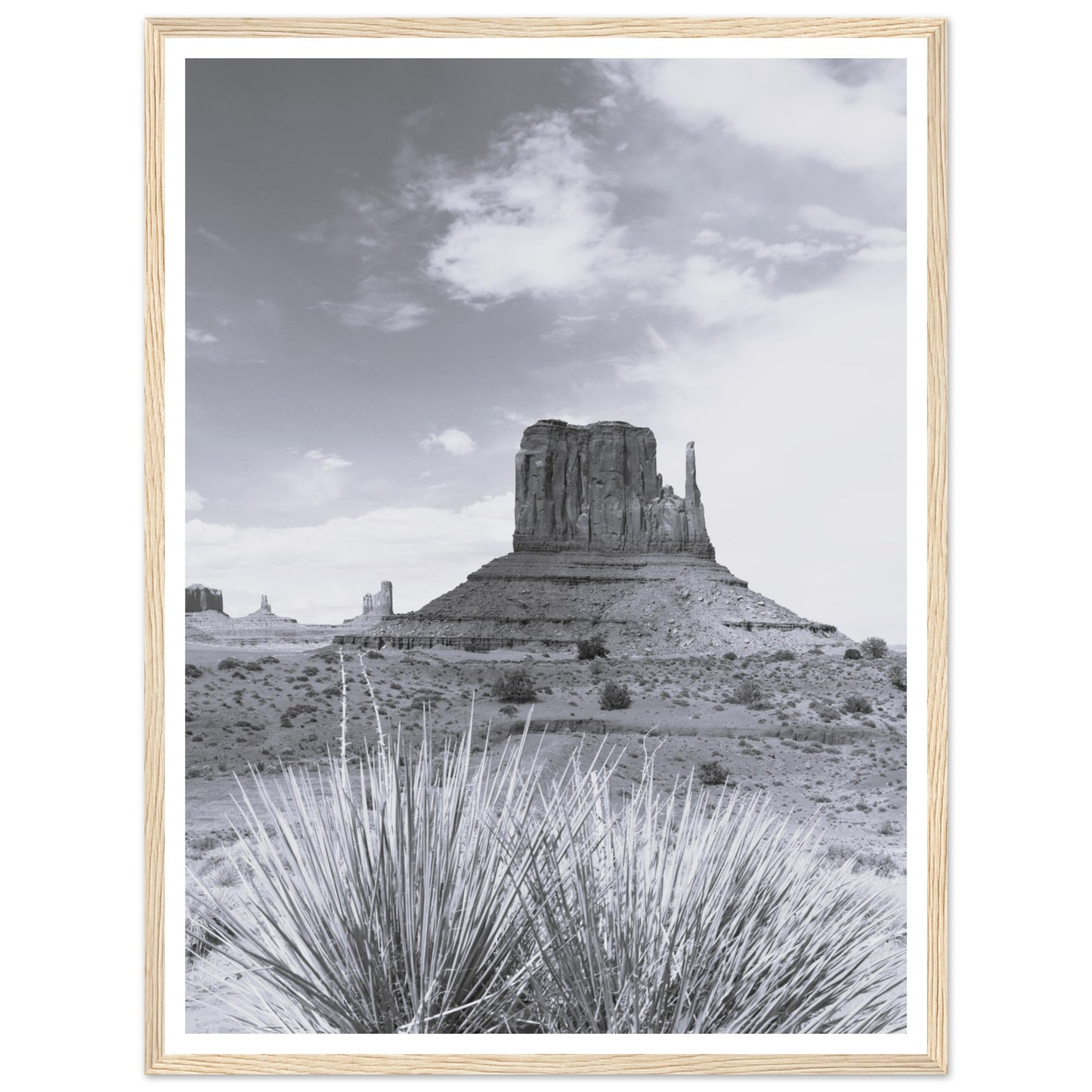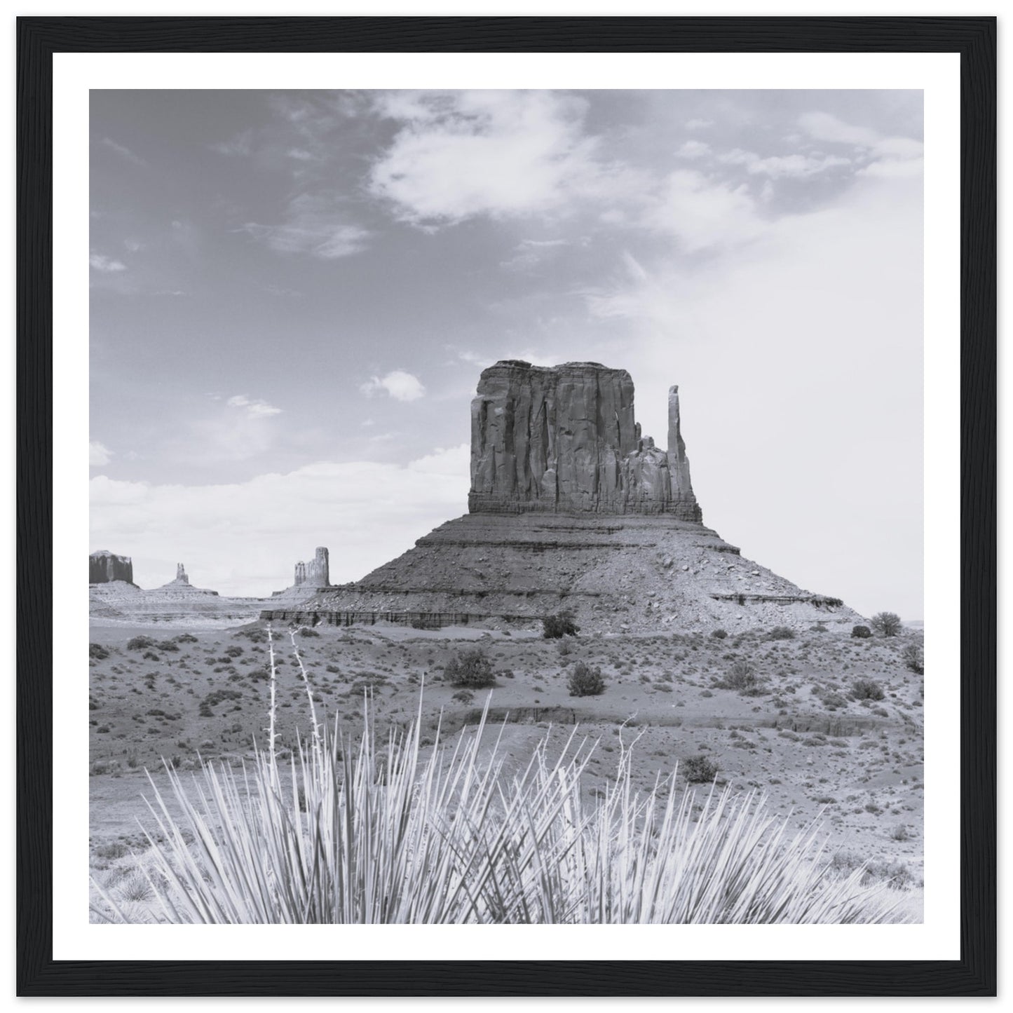 Monument Valley - Black & White - Premium Matte Paper Wooden Framed Poster