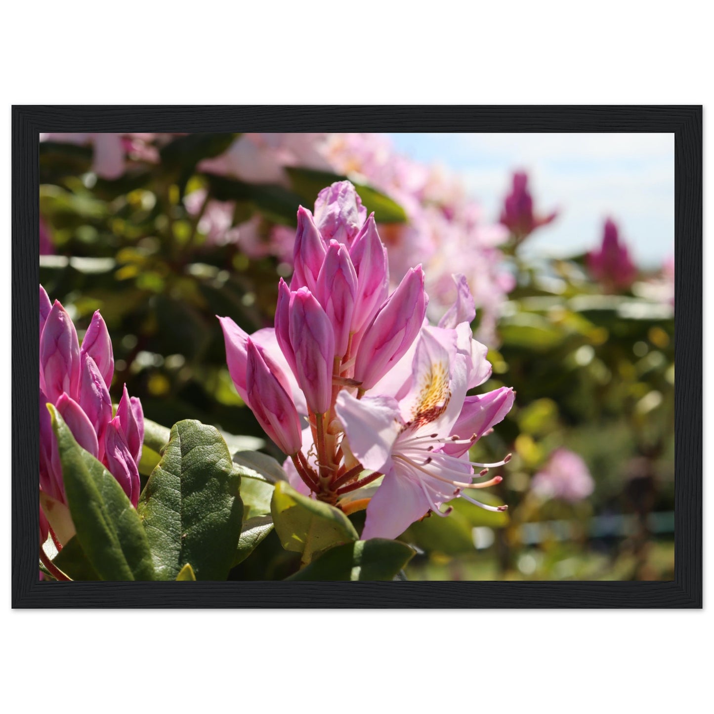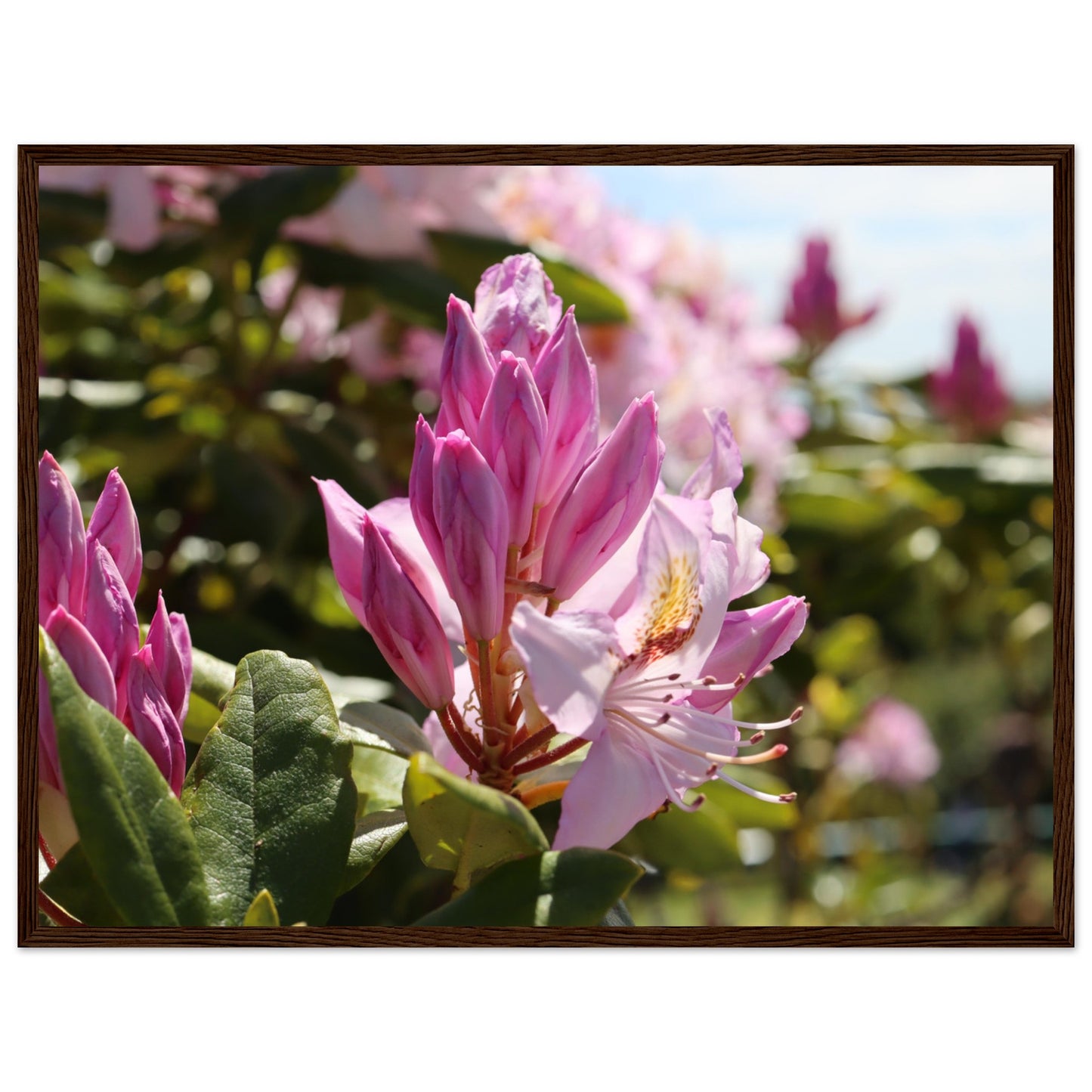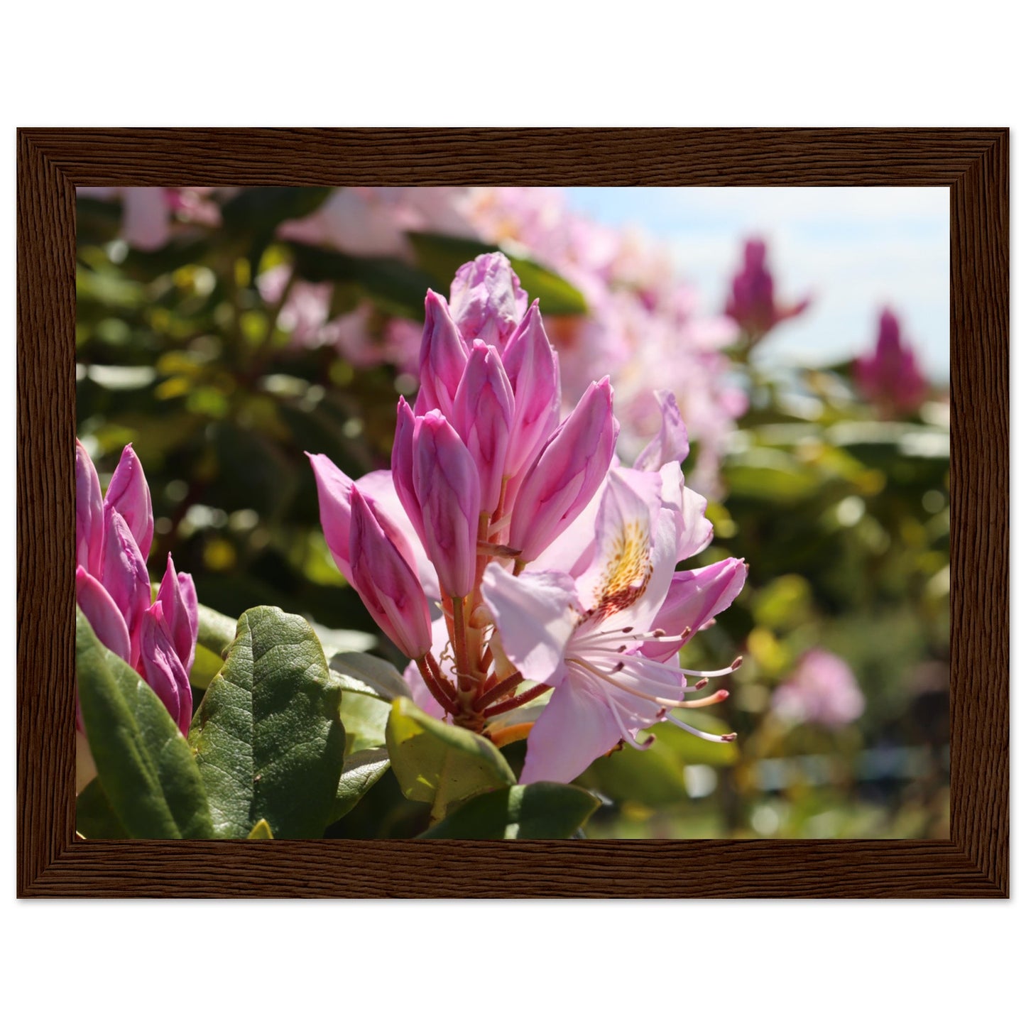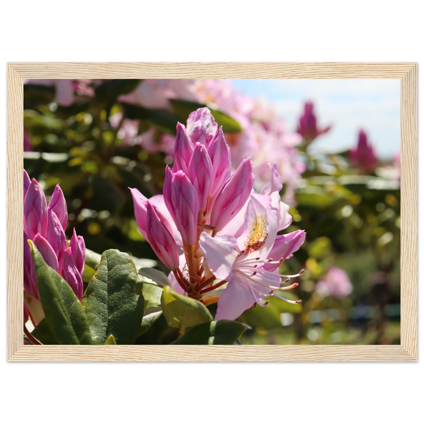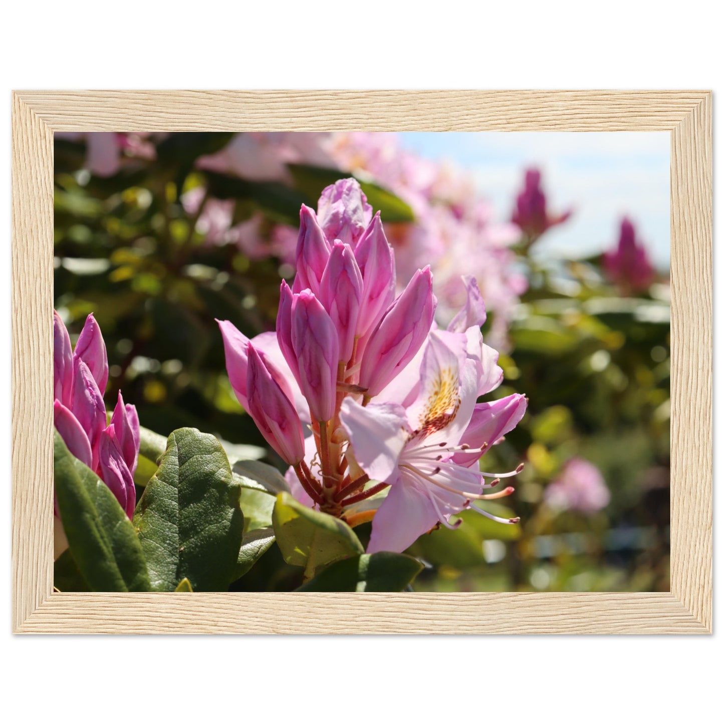 Pink azaleas - Premium matte paper poster with wooden frame