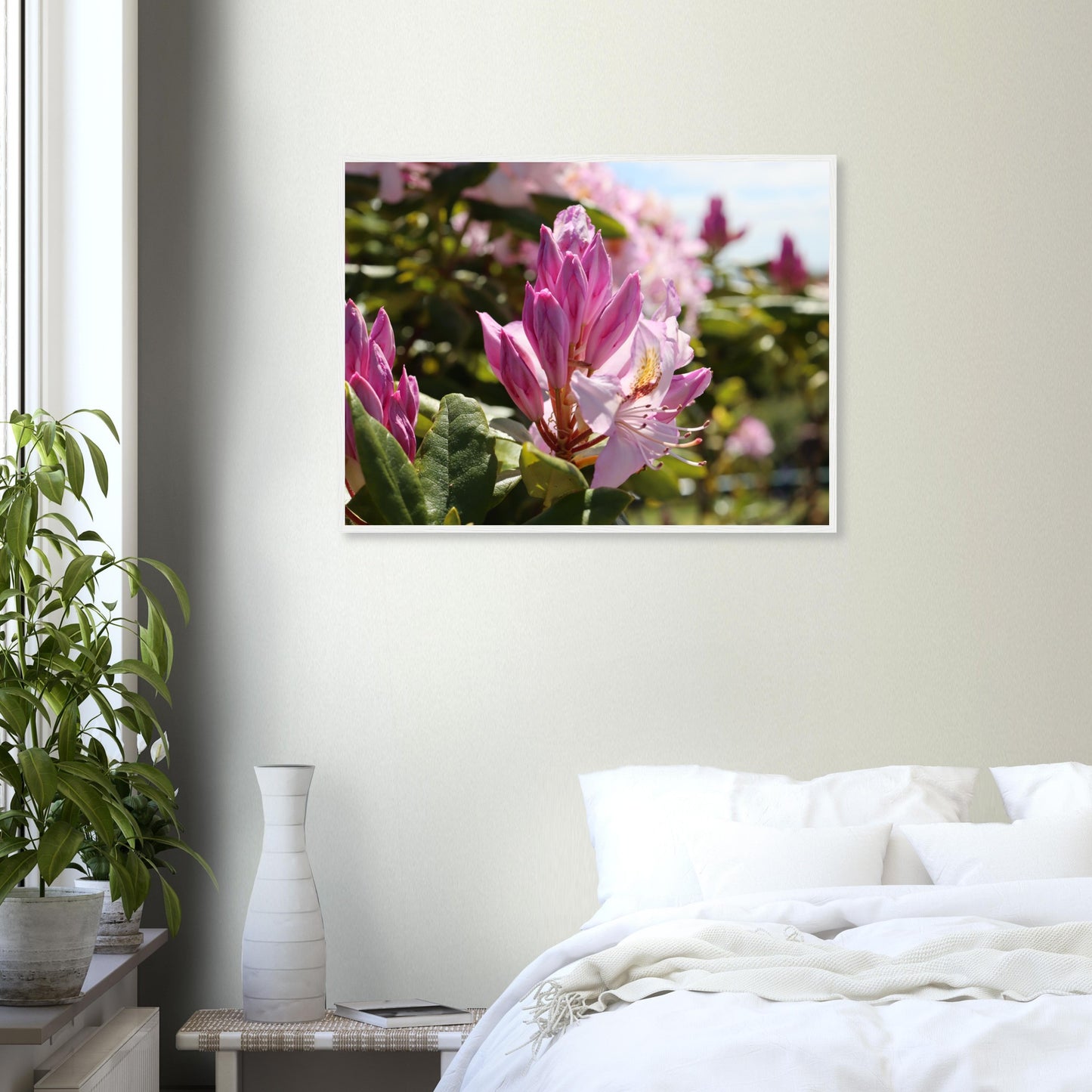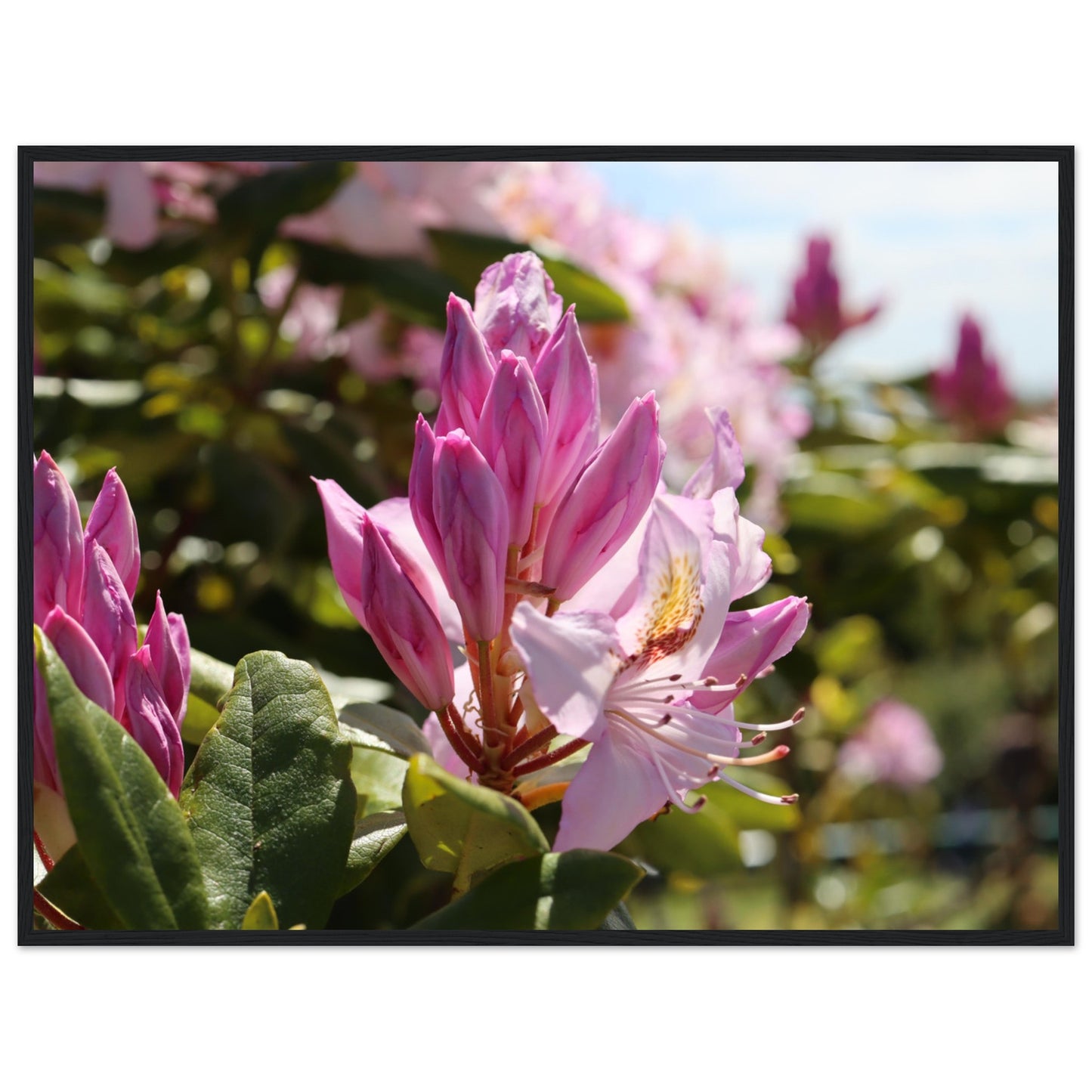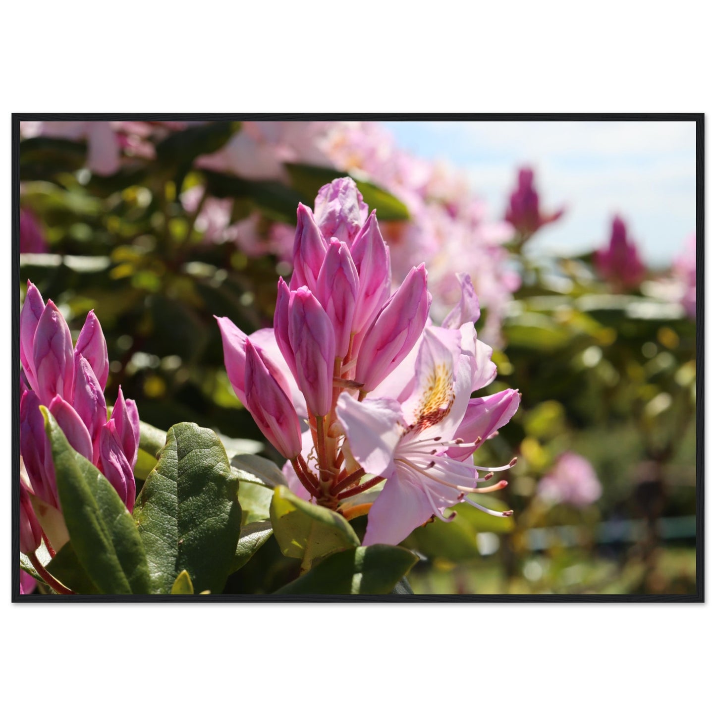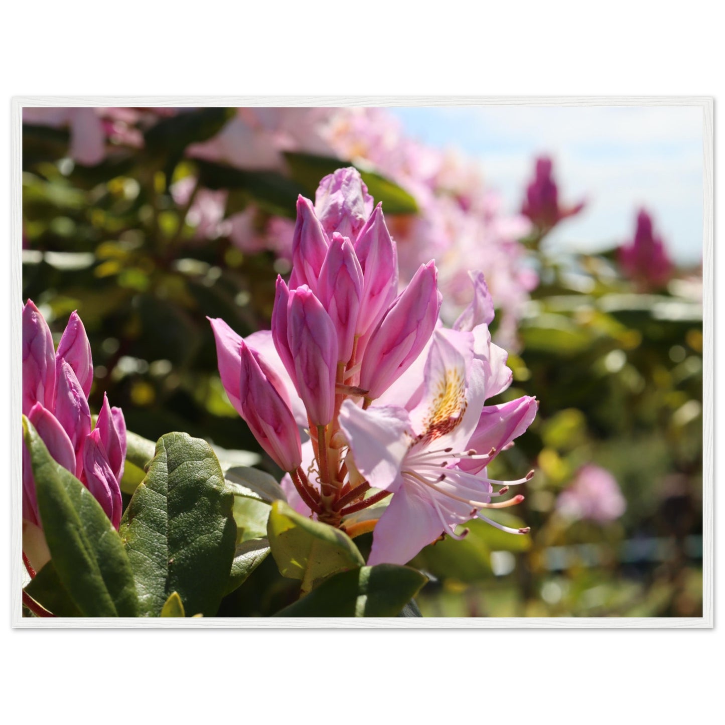 Pink azaleas - Premium matte paper poster with wooden frame