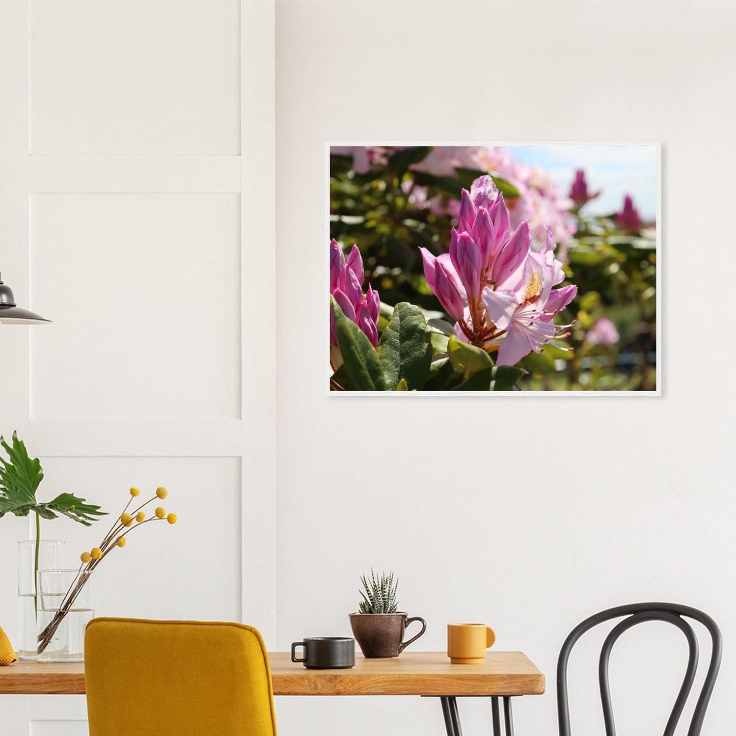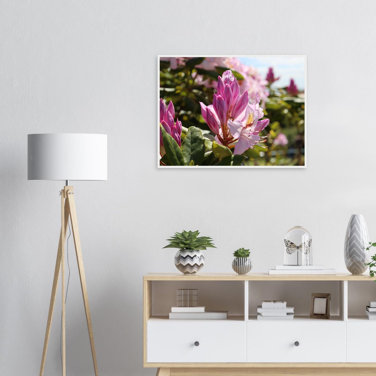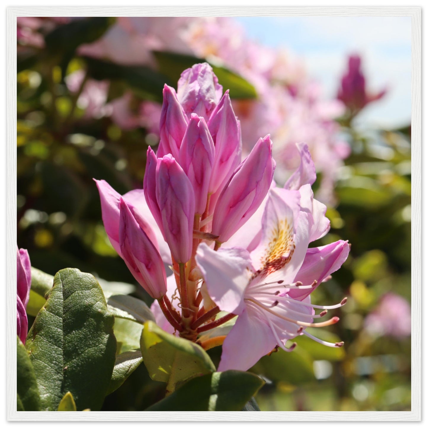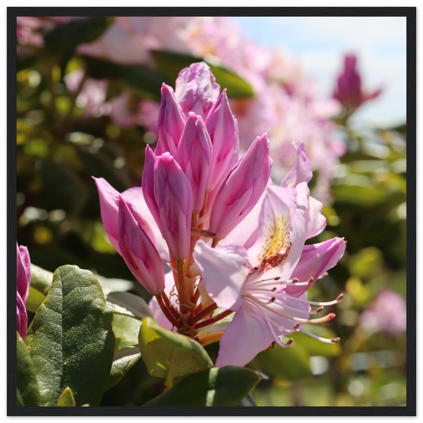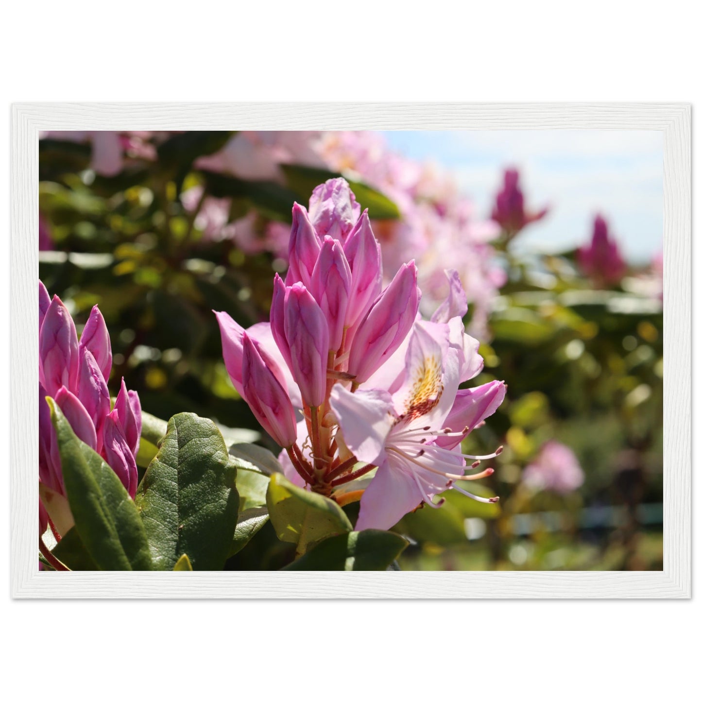 Pink azaleas - Premium matte paper poster with wooden frame