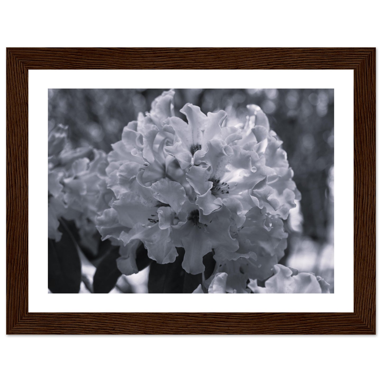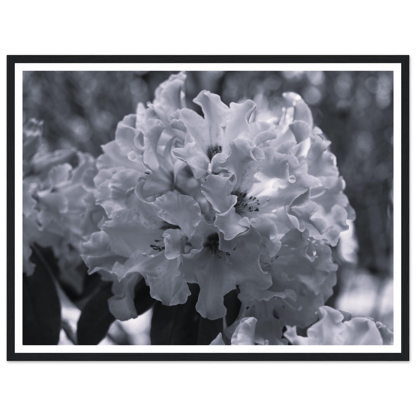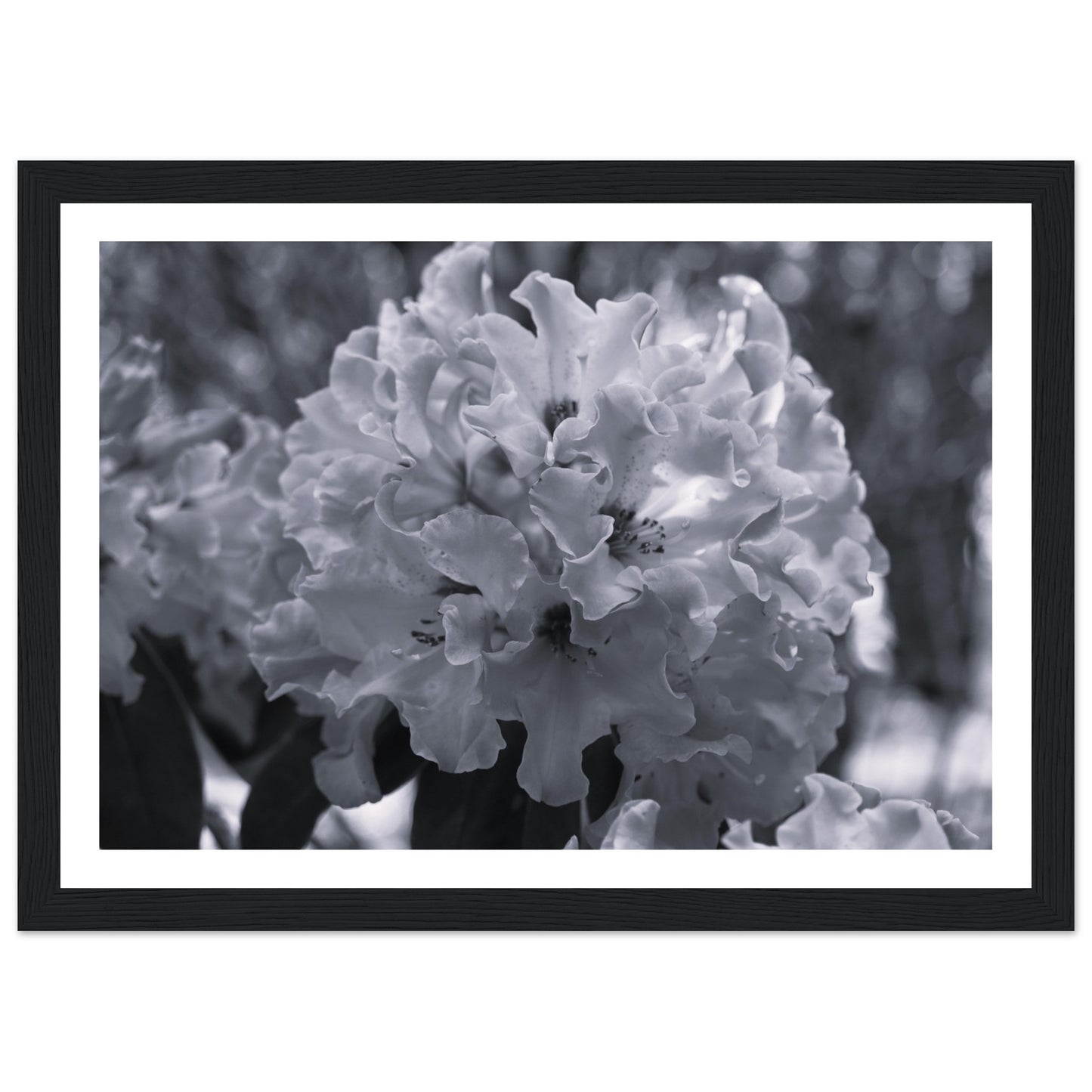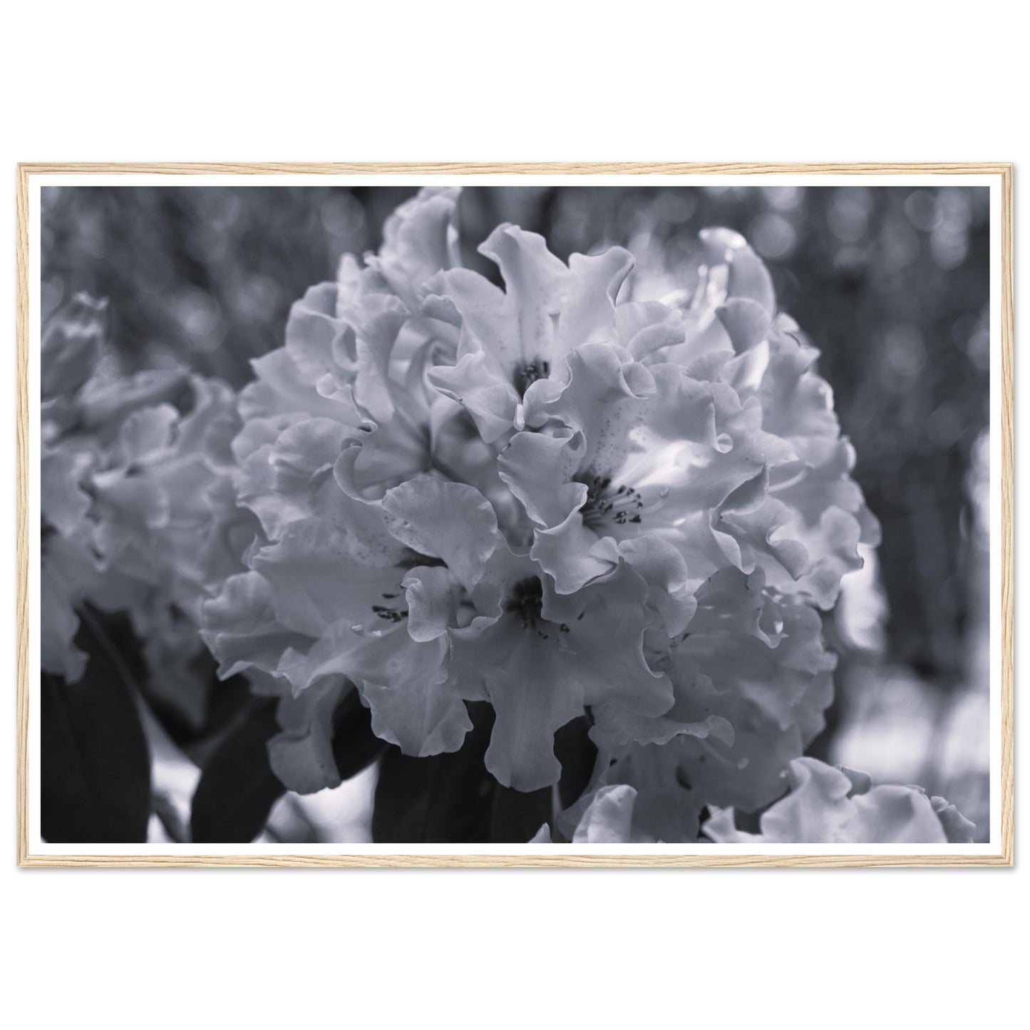 Pink ruffly rhododendrons in spring (B&W) - Premium Matte Paper Wooden Framed Poster