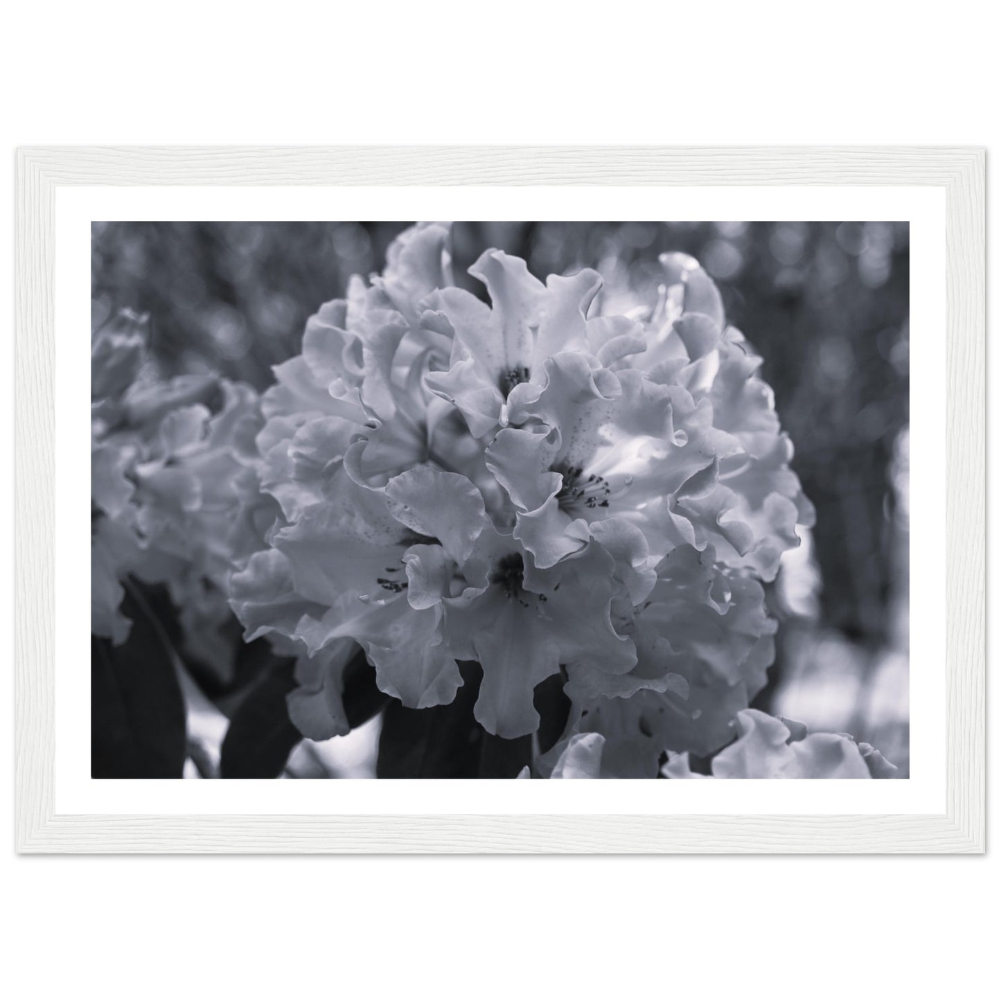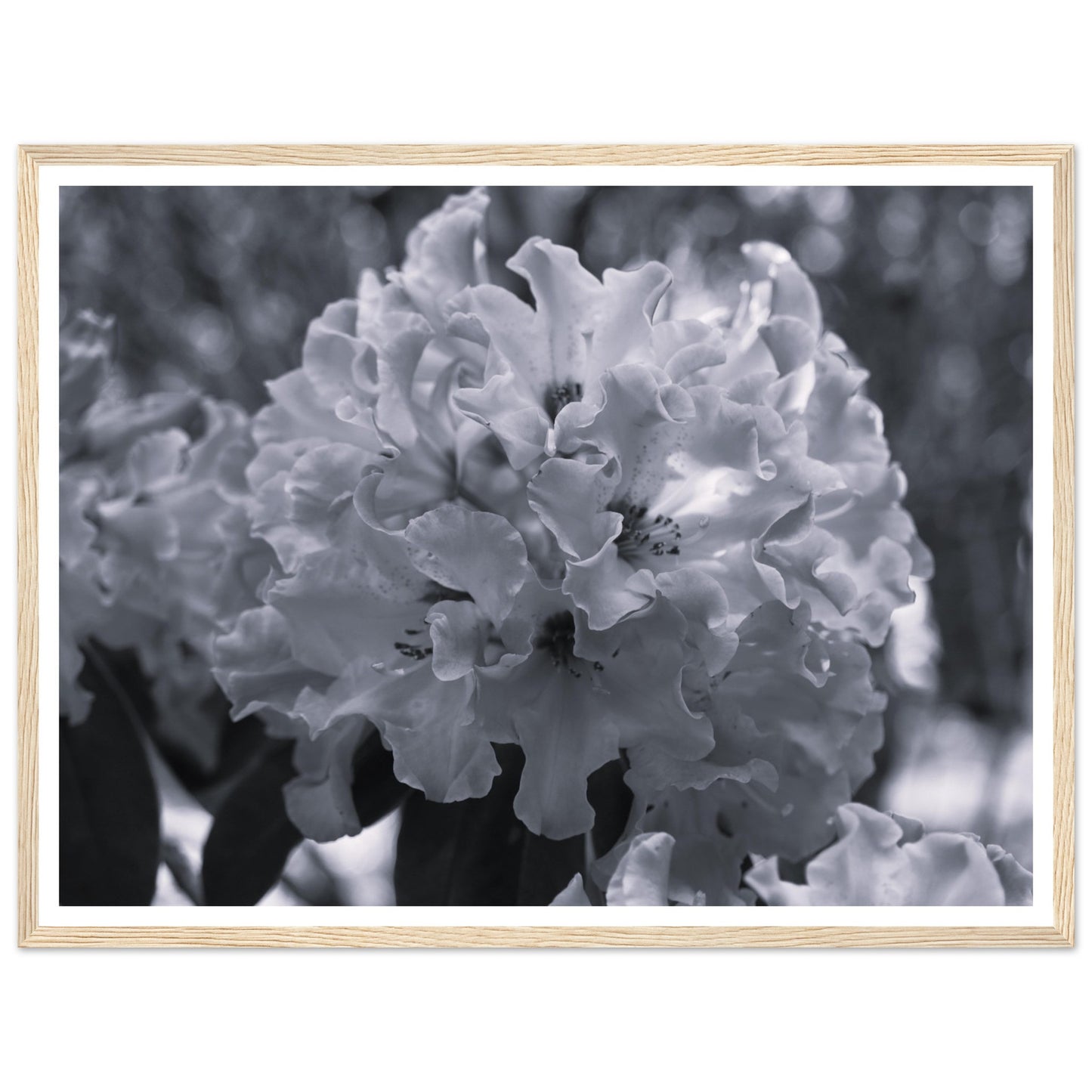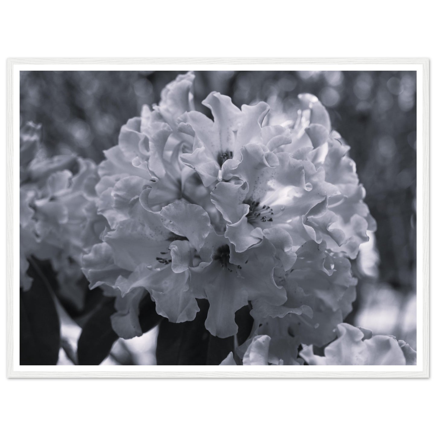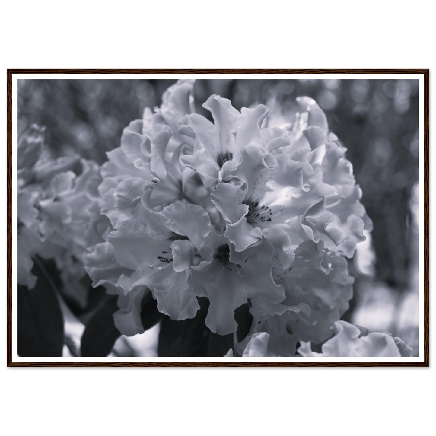 Pink ruffly rhododendrons in spring (B&W) - Premium Matte Paper Wooden Framed Poster