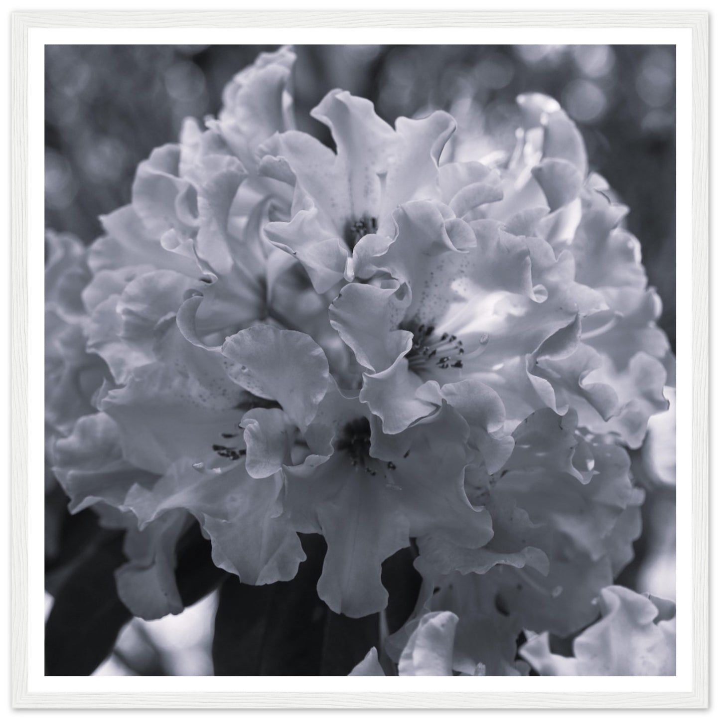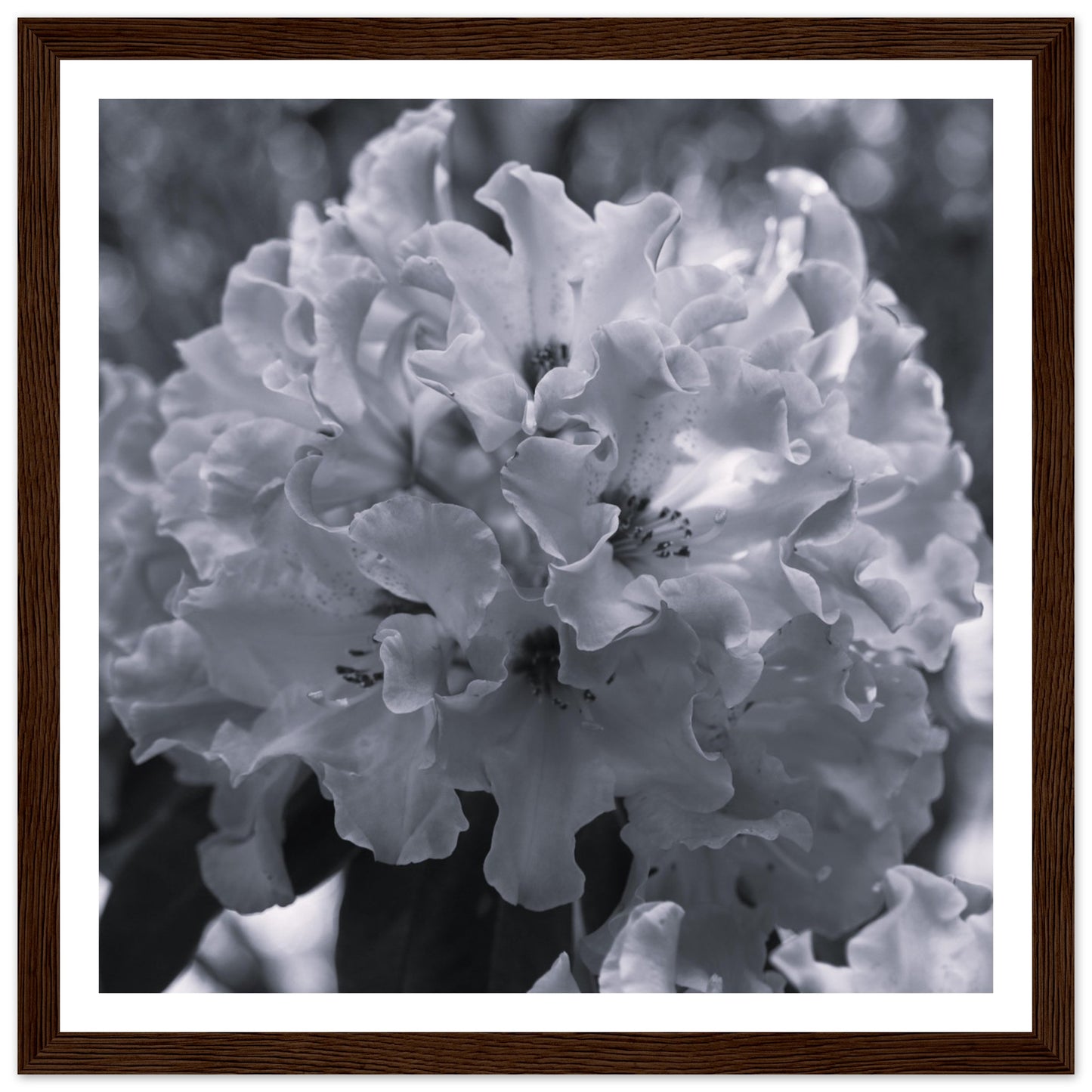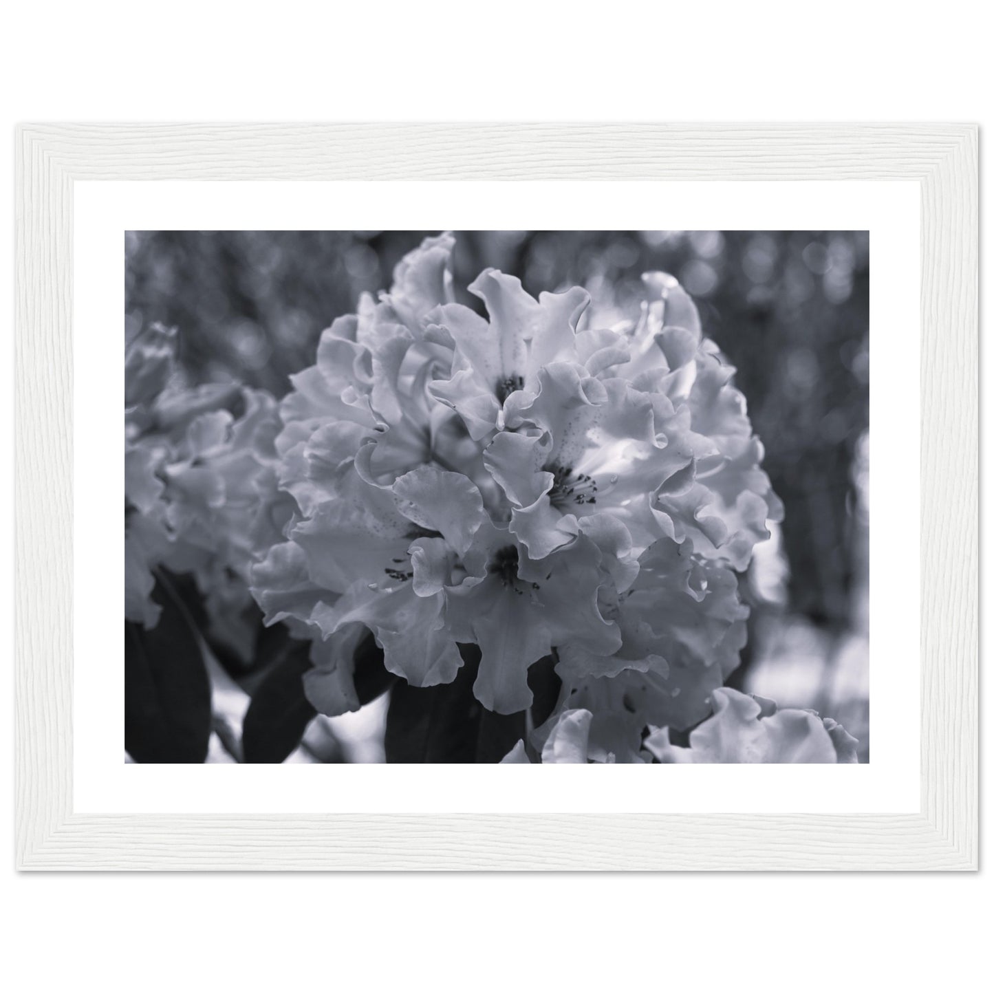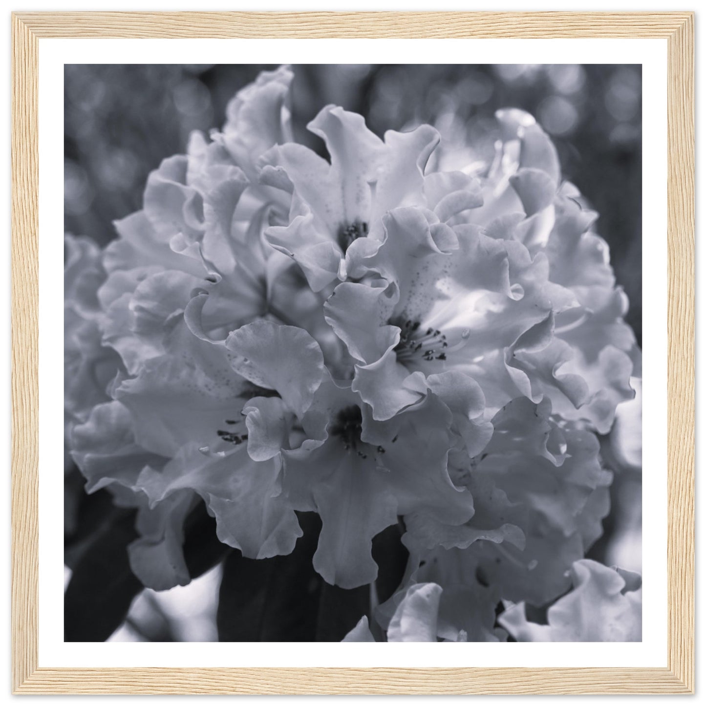 Pink ruffly rhododendrons in spring (B&W) - Premium Matte Paper Wooden Framed Poster
