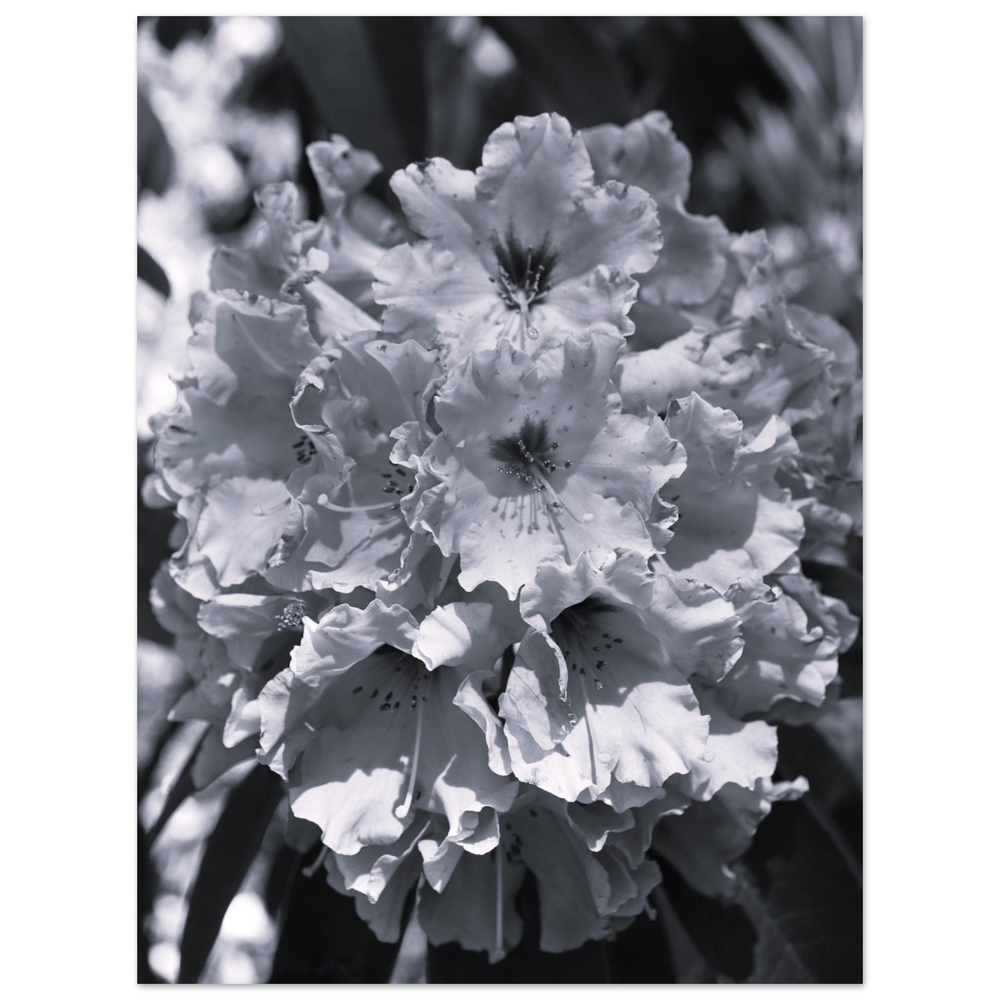 Pink ruffly rhododendrons in bloom - Black & White - Lightweight foam board