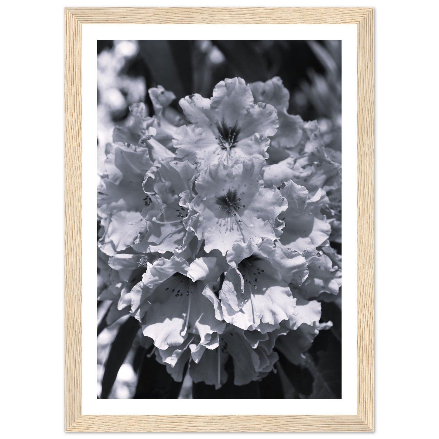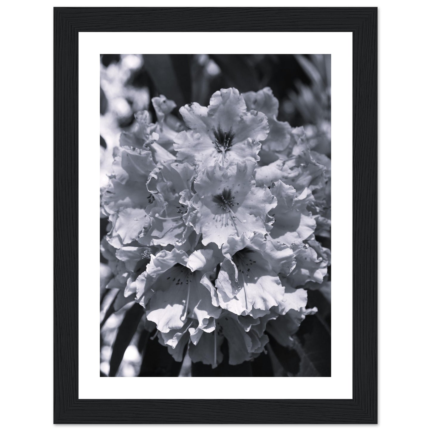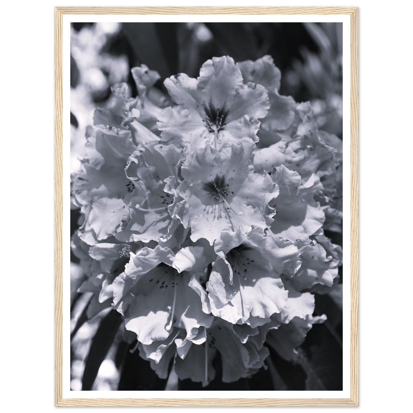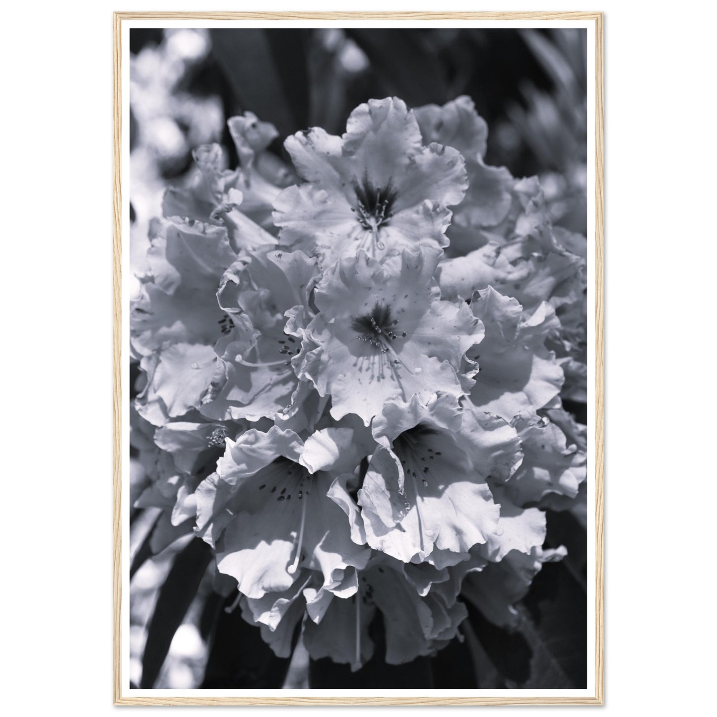 Pink ruffly rhododendrons in bloom (B&W) - Premium Matte Paper Wooden Framed Poster