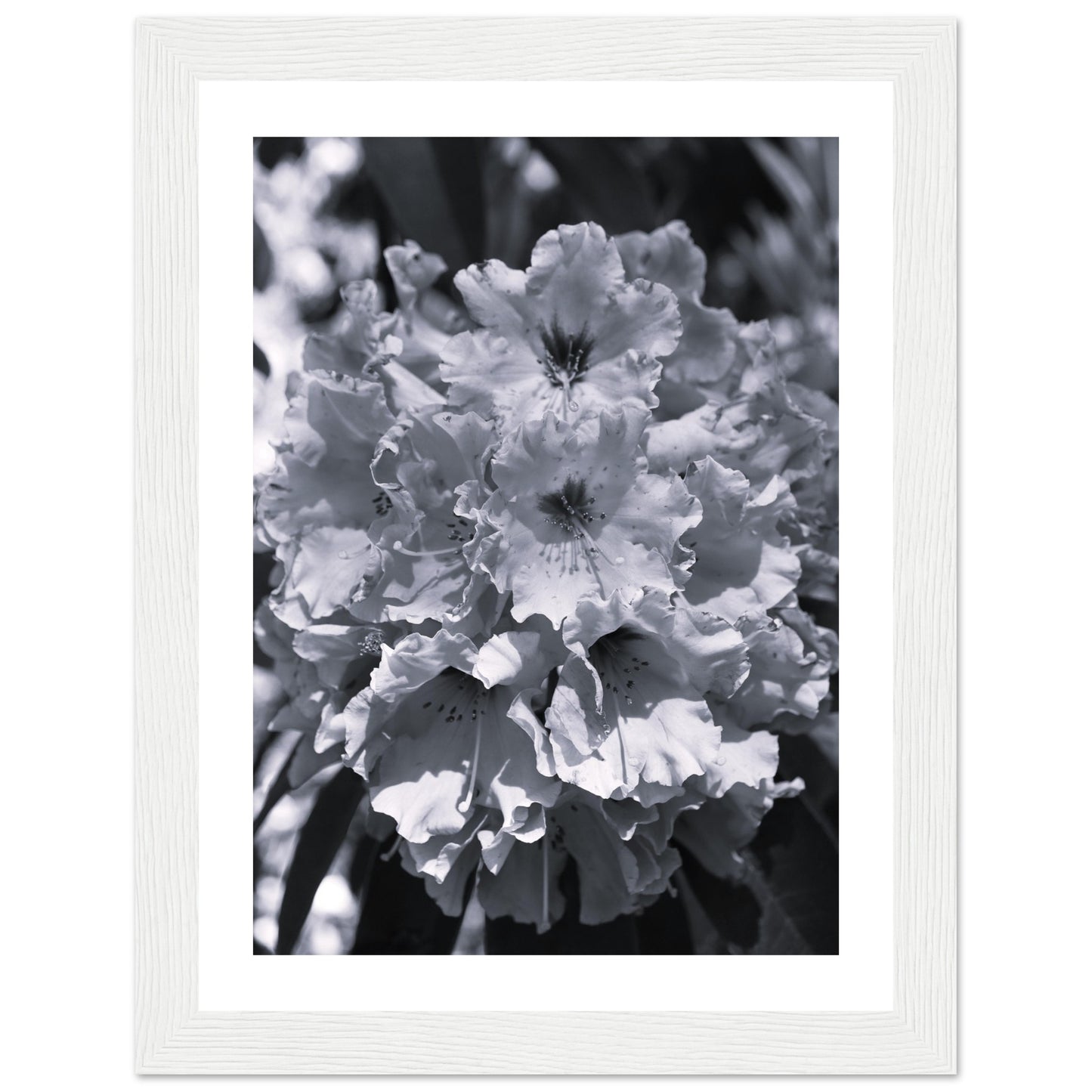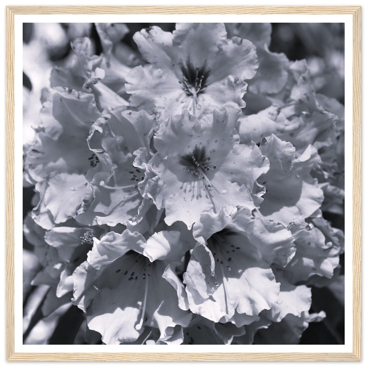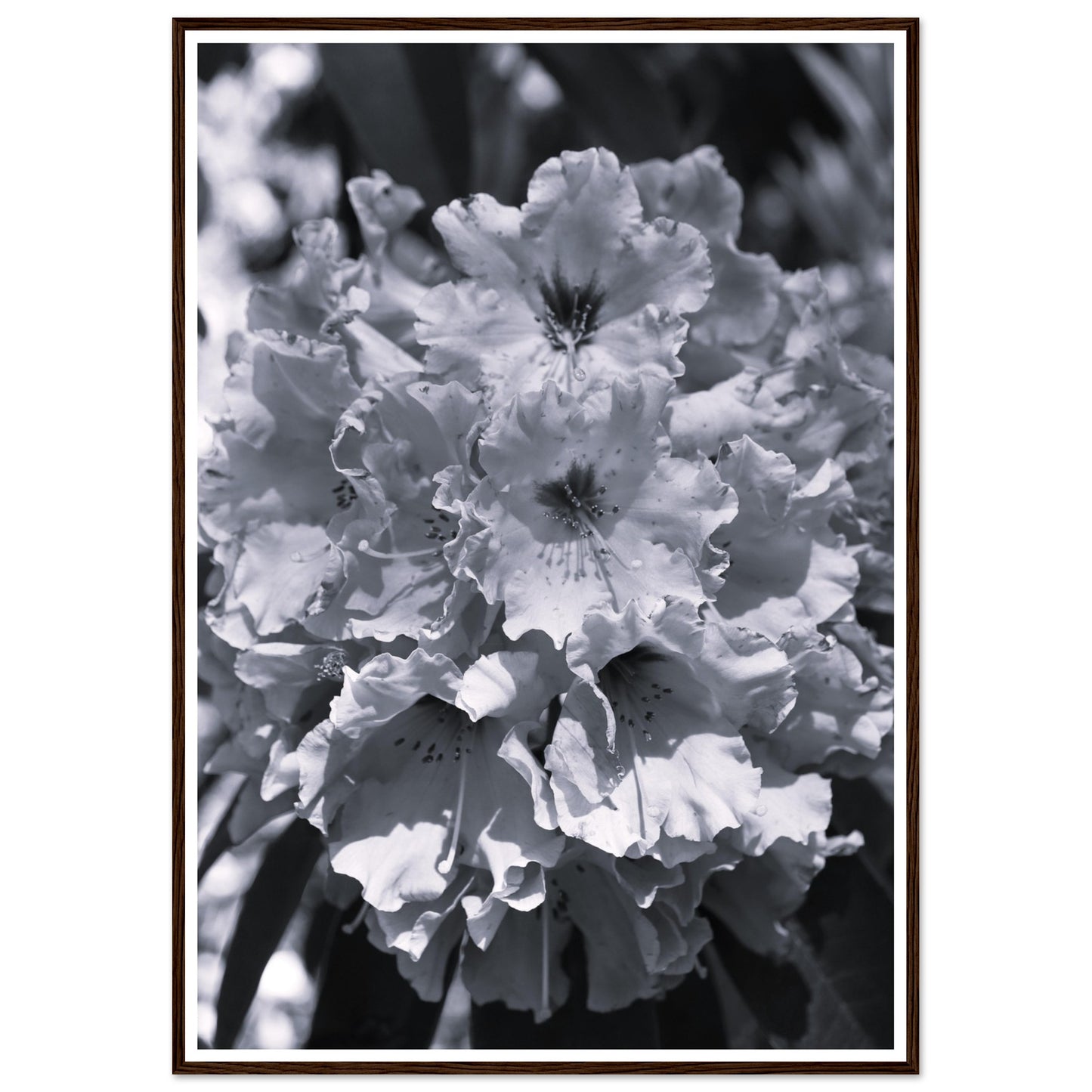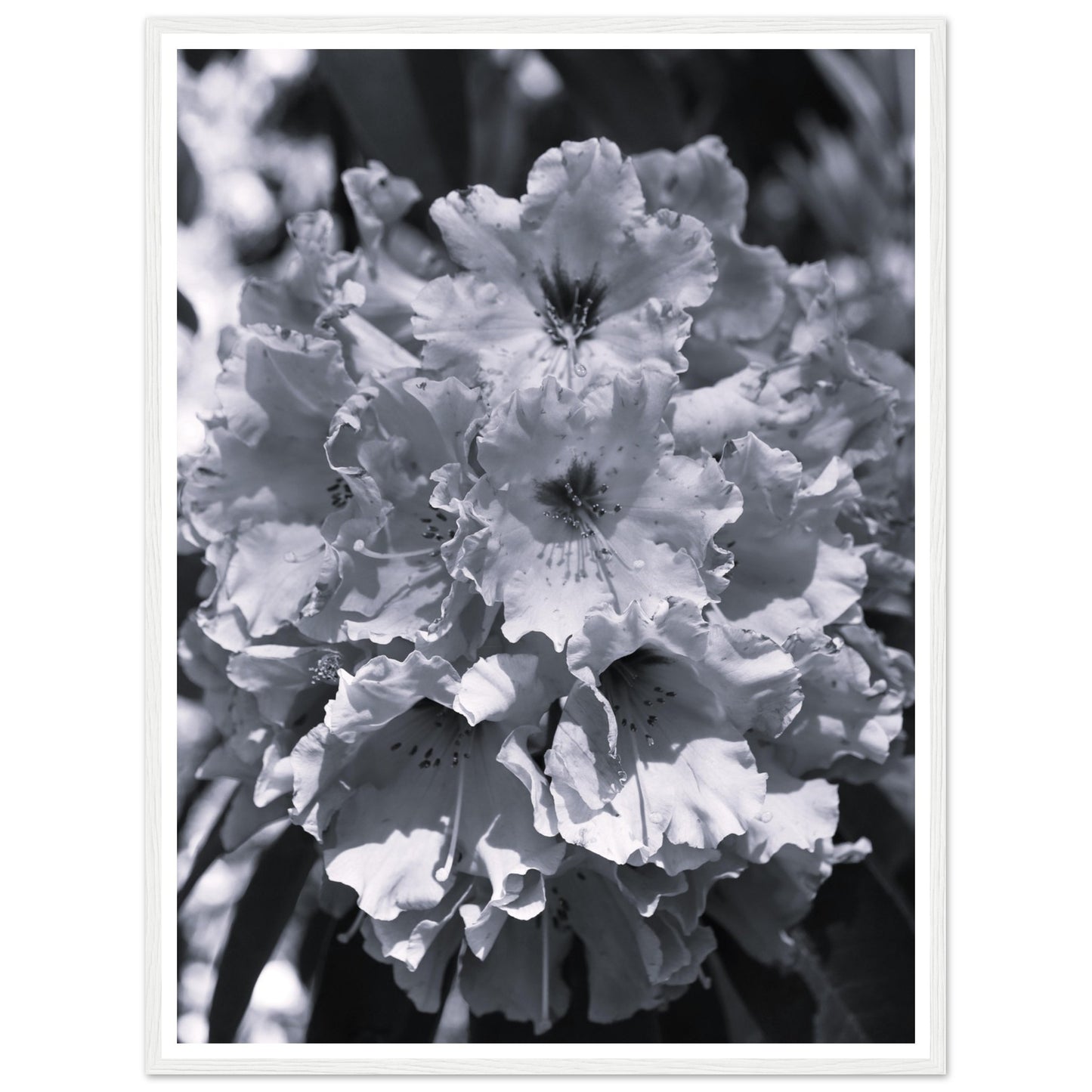Pink ruffly rhododendrons in bloom (B&W) - Premium Matte Paper Wooden Framed Poster