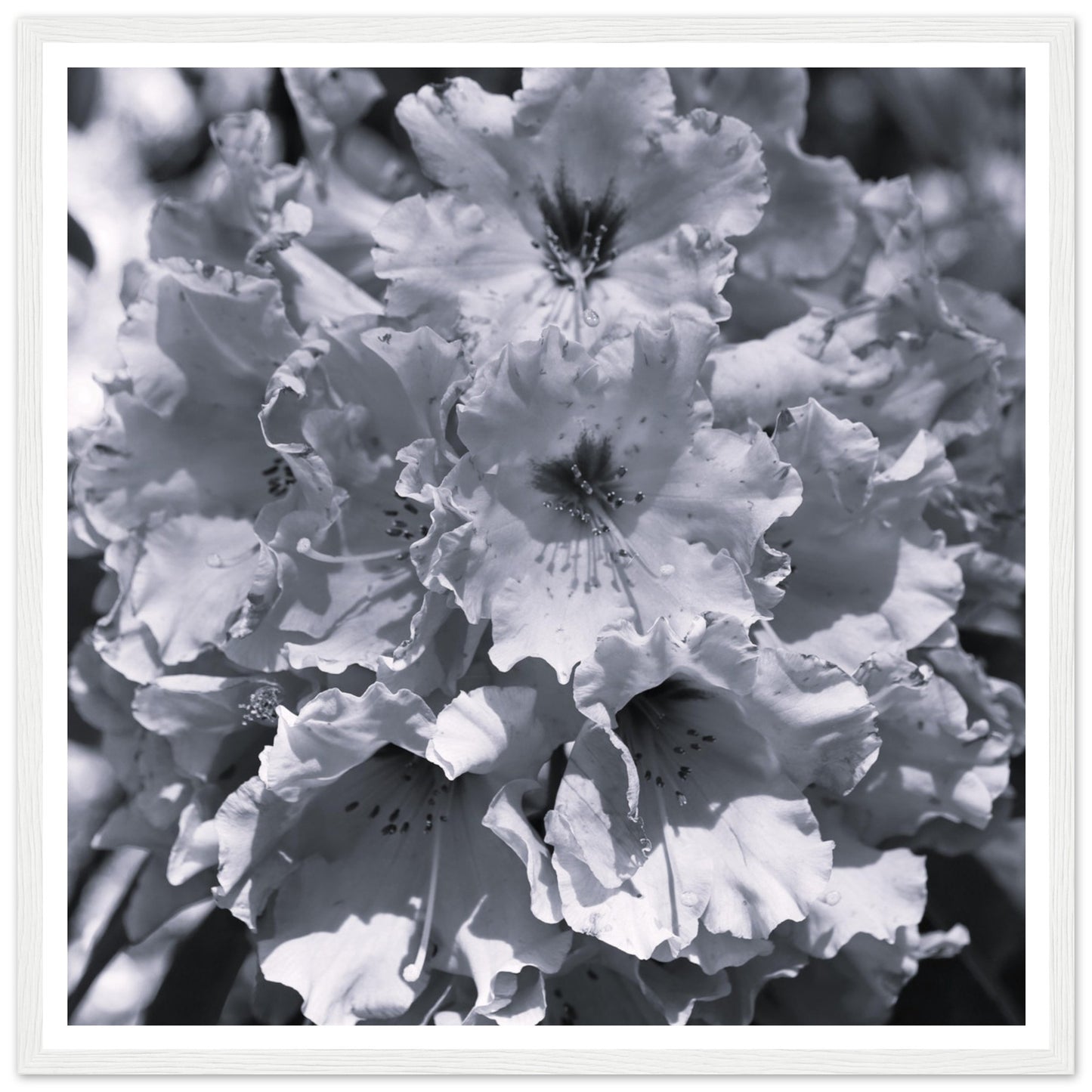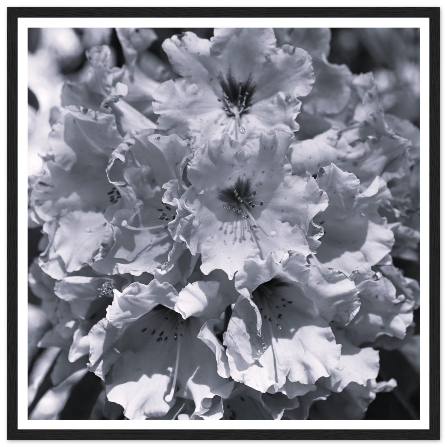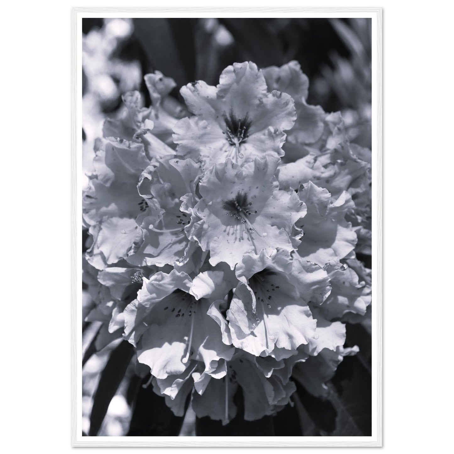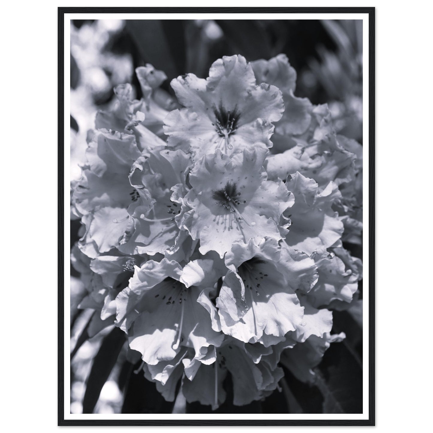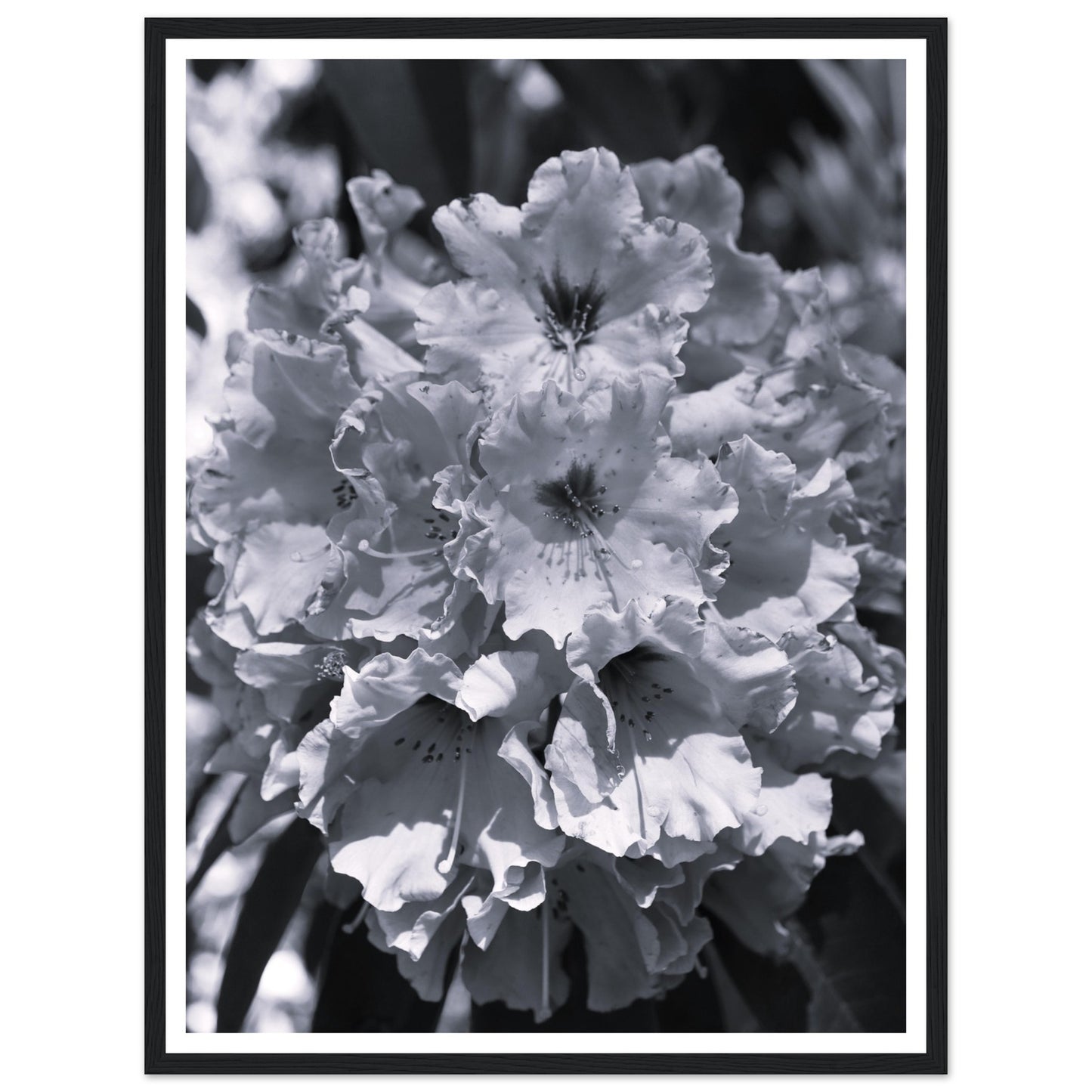 Pink ruffly rhododendrons in bloom - Black & White - Premium Matte Paper Wooden Framed Poster