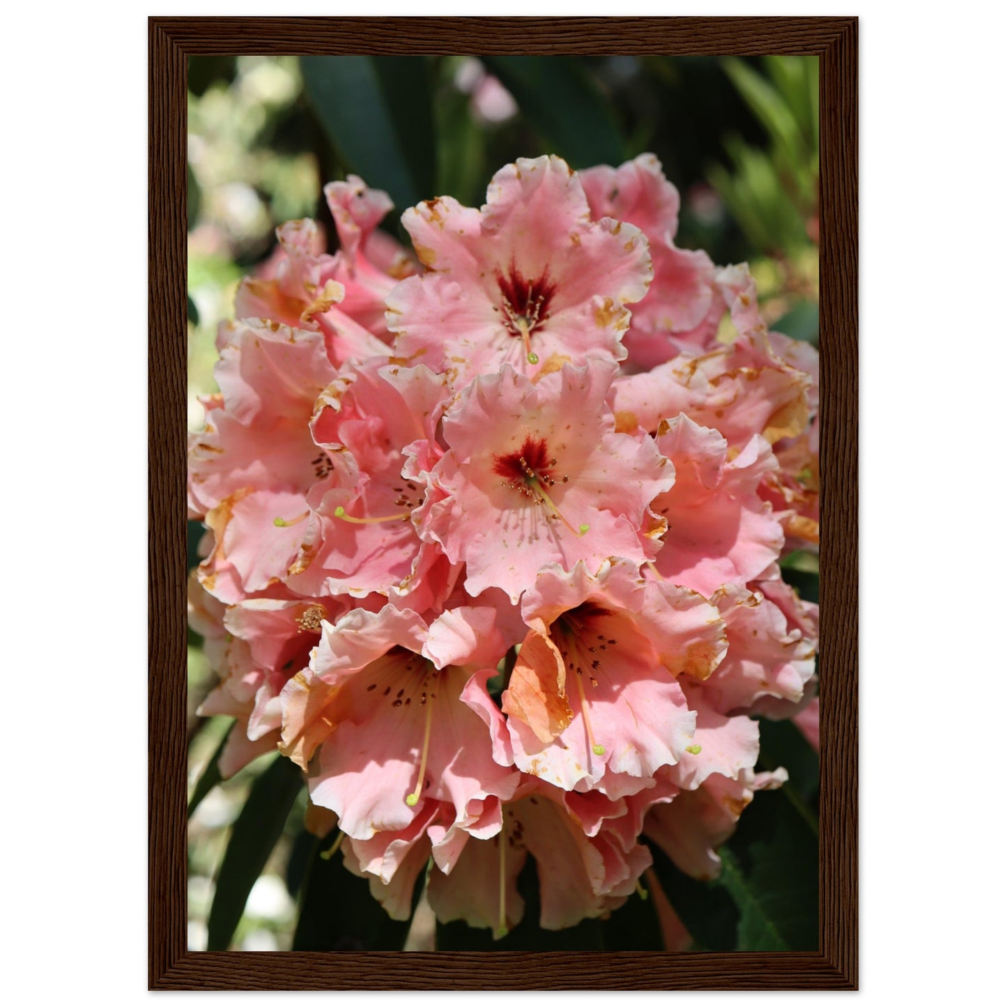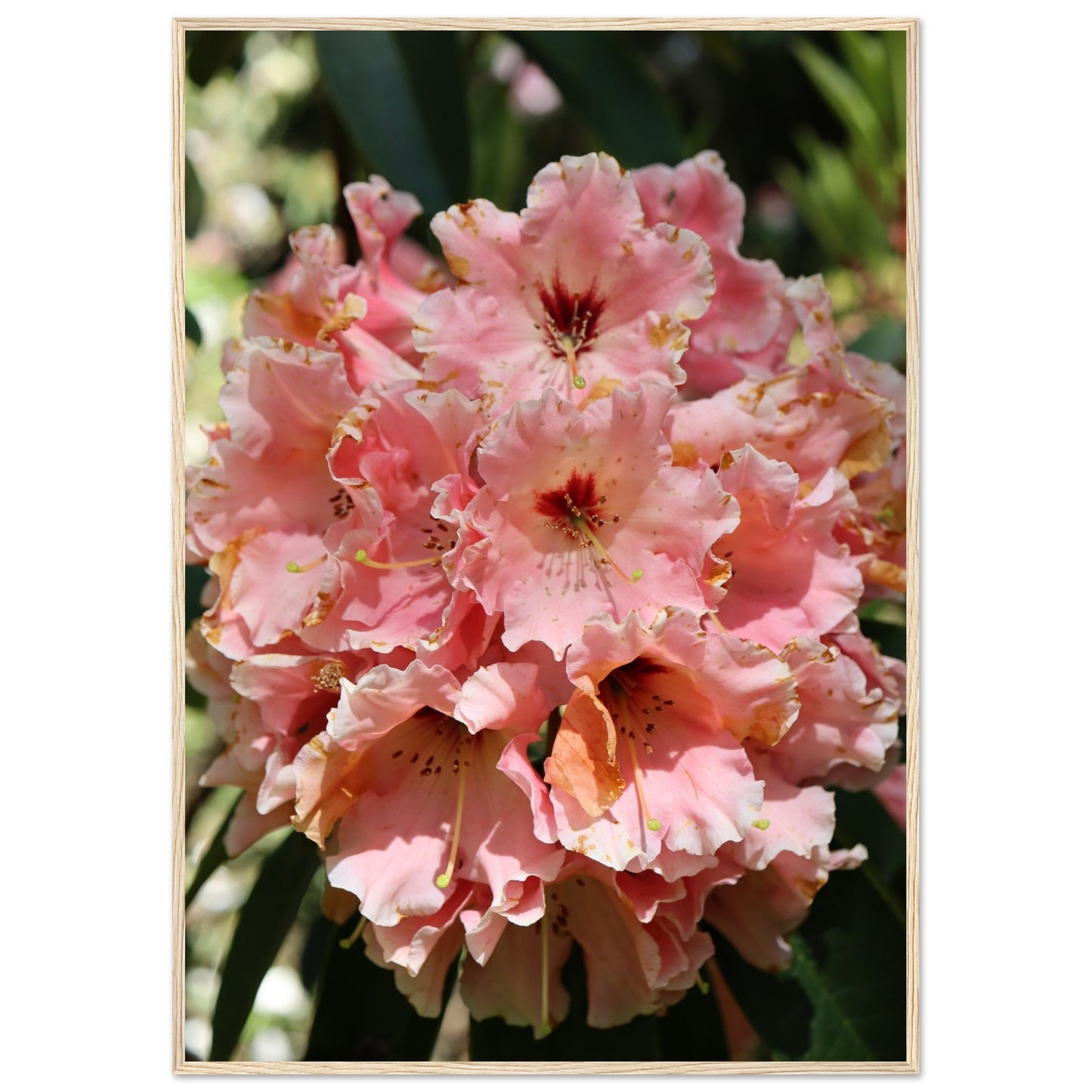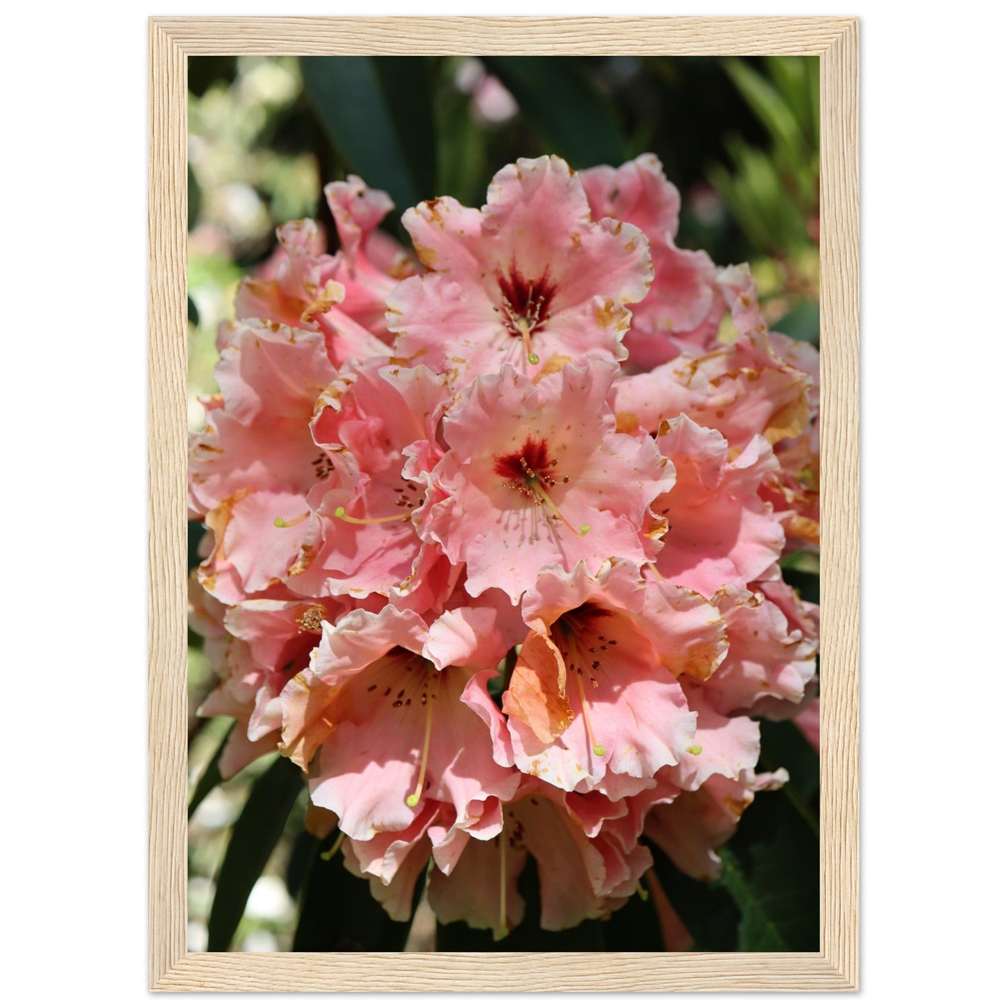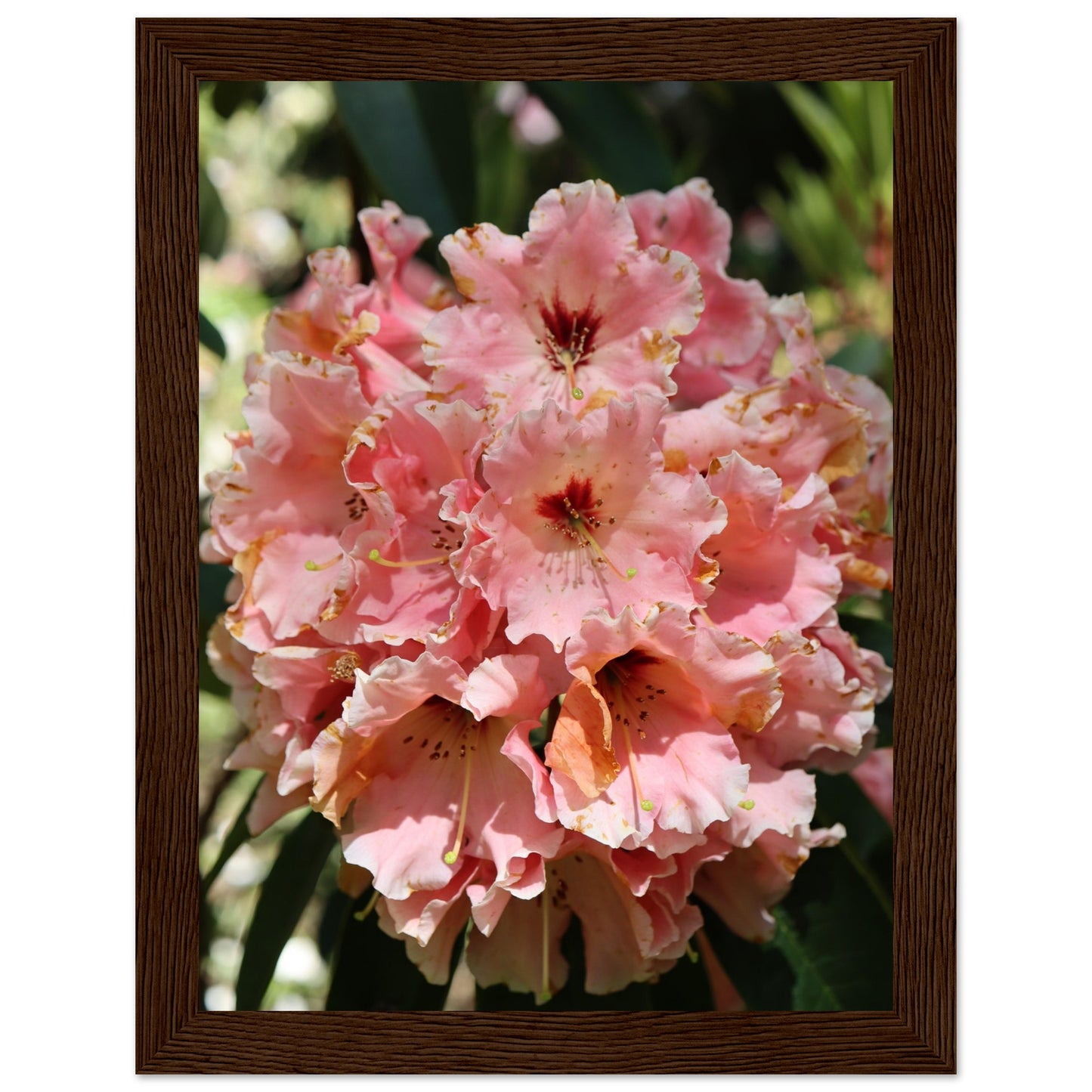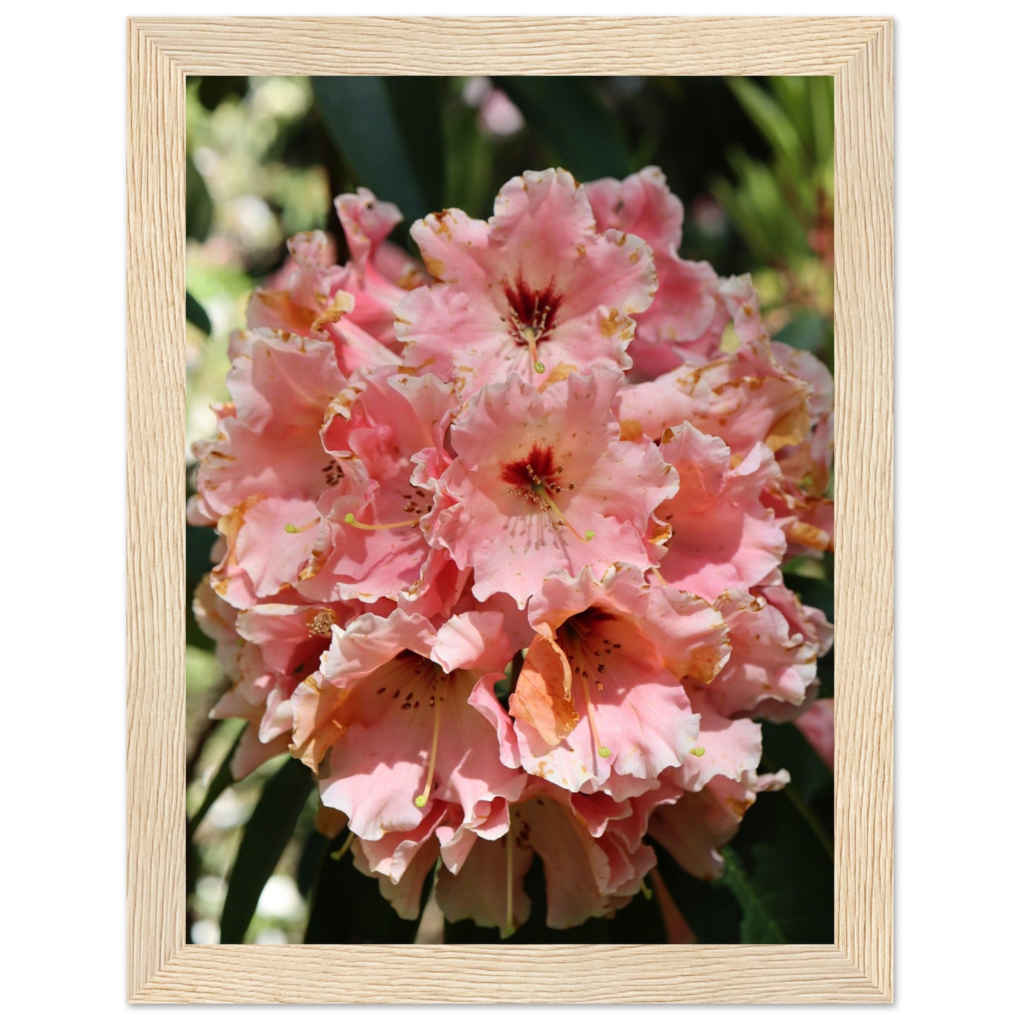 Pink ruffly rhododendrons in bloom - Premium Matte Paper Wooden Framed Poster