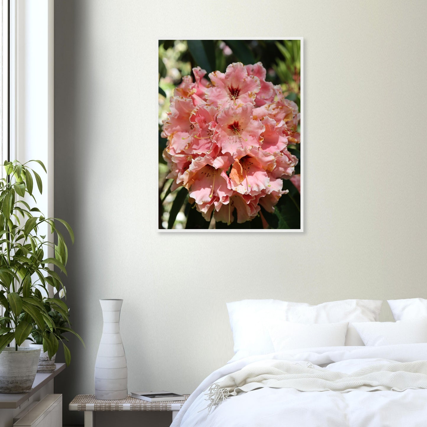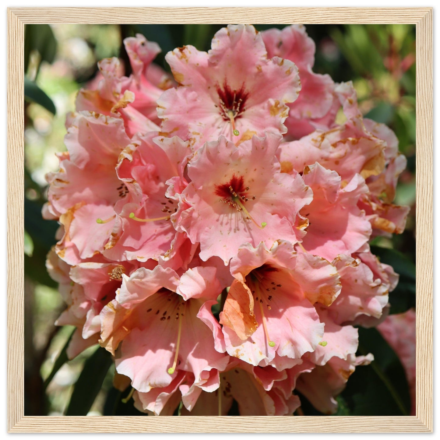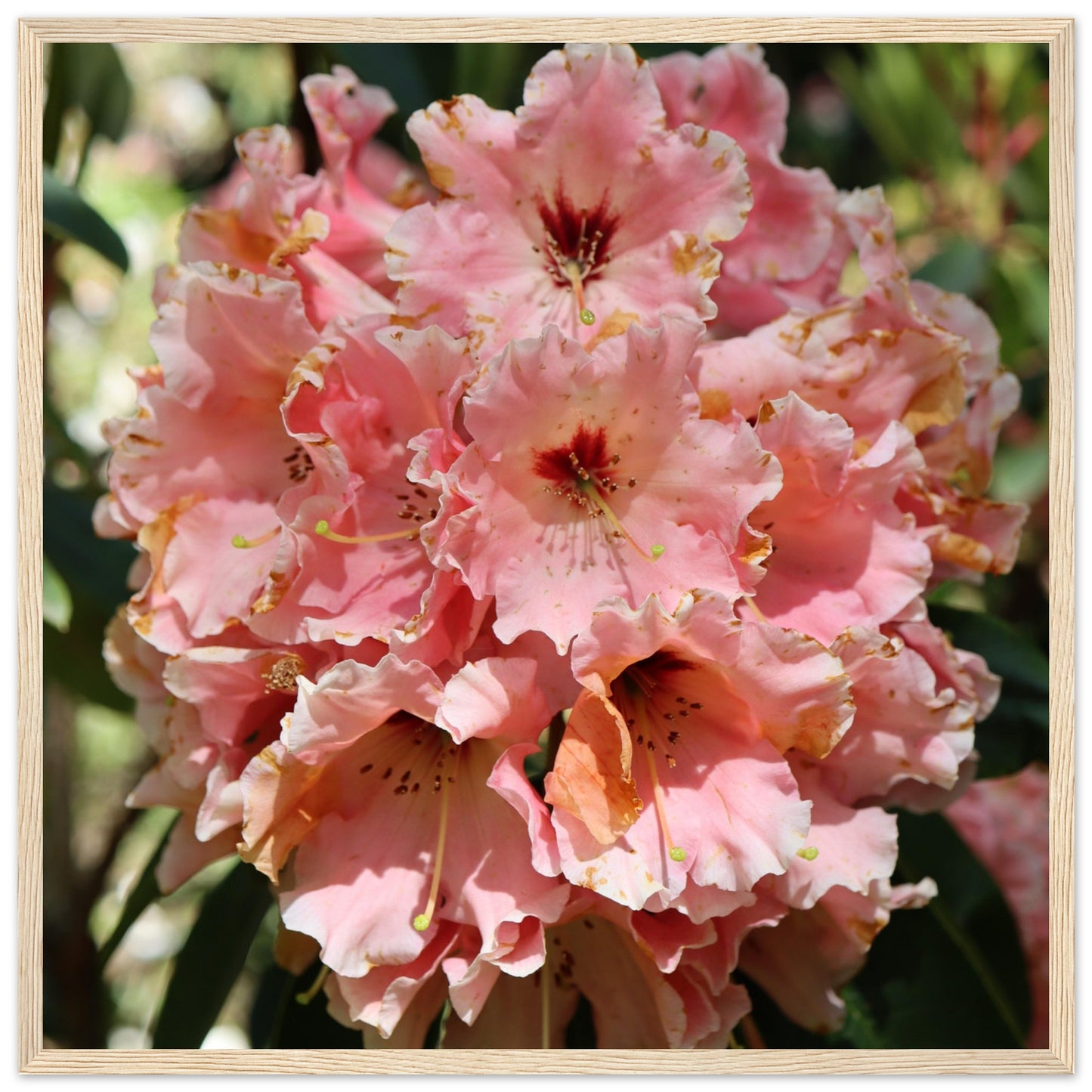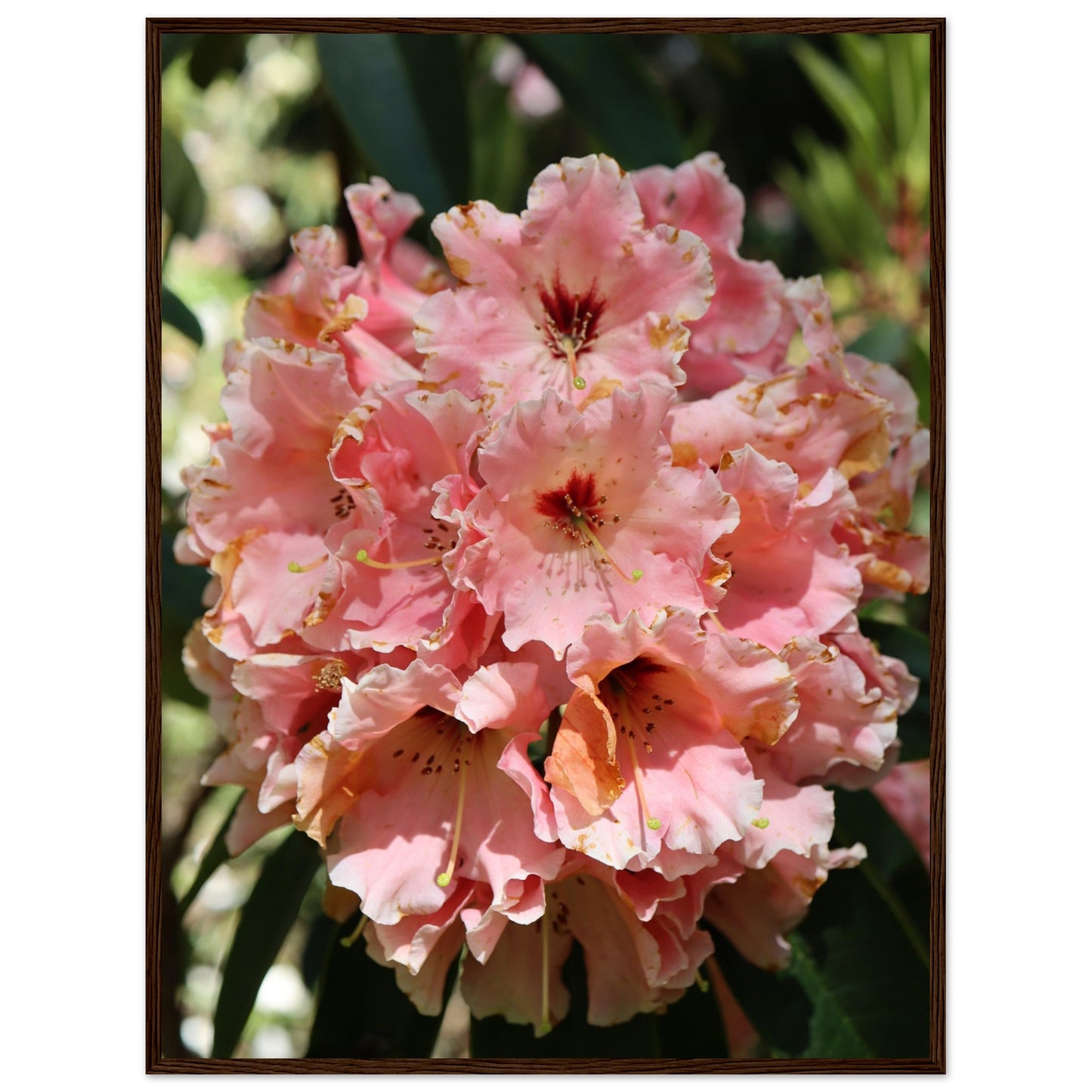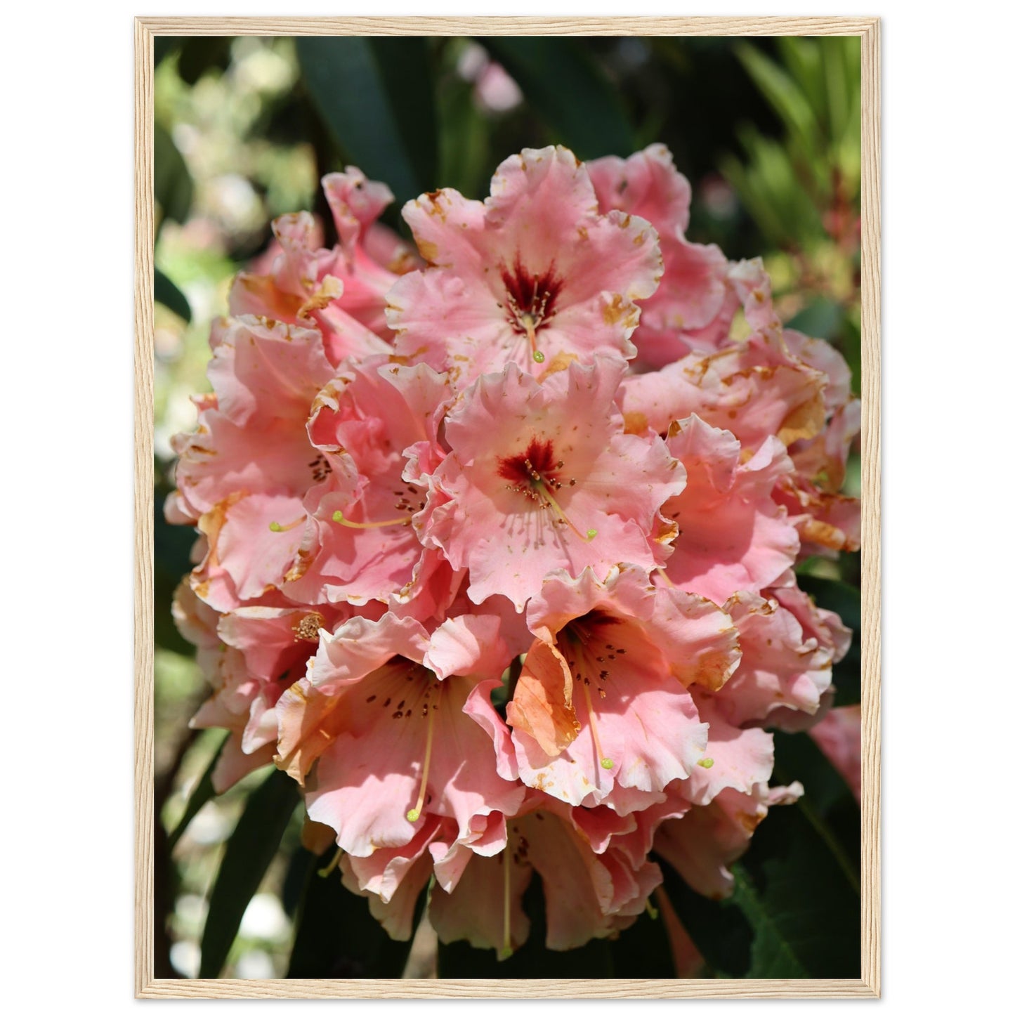 Pink ruffly rhododendrons in bloom - Premium Matte Paper Wooden Framed Poster