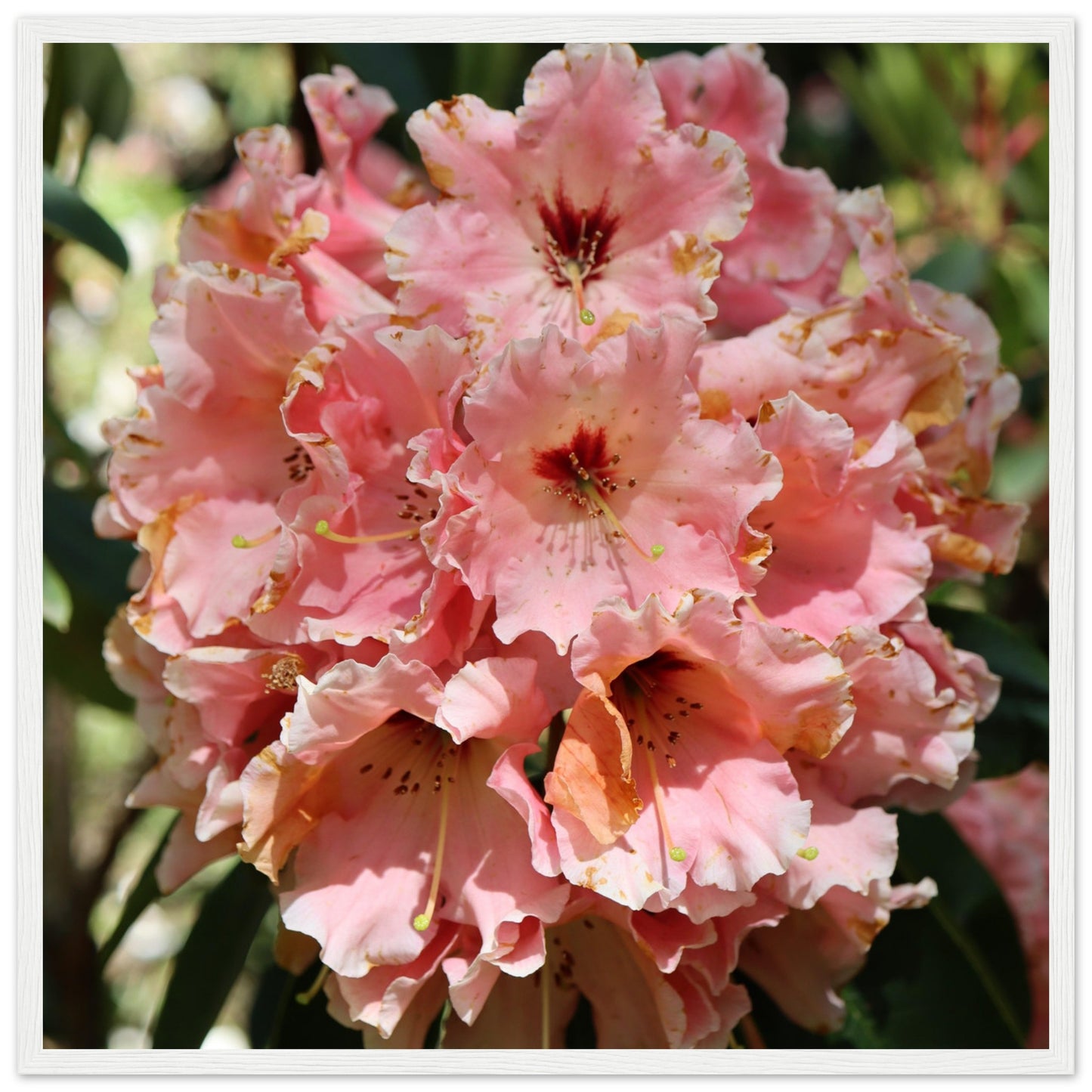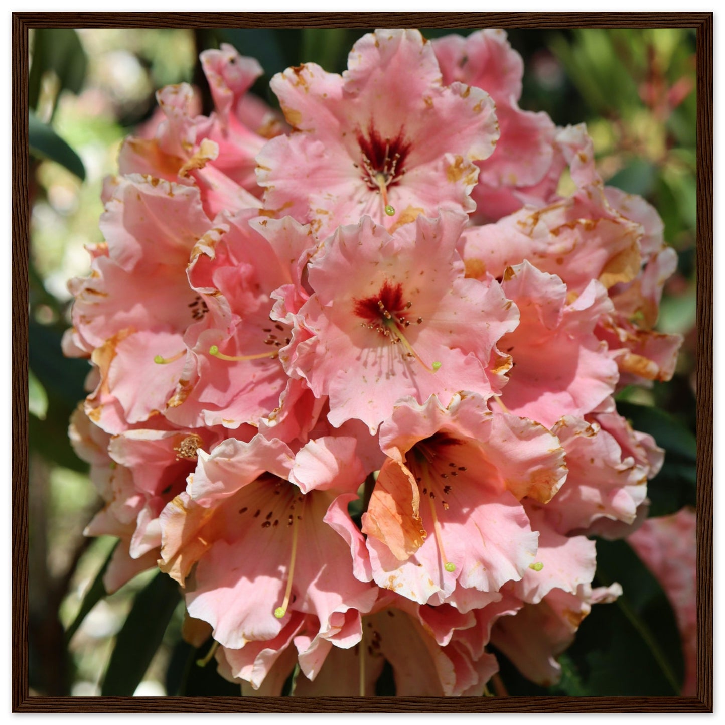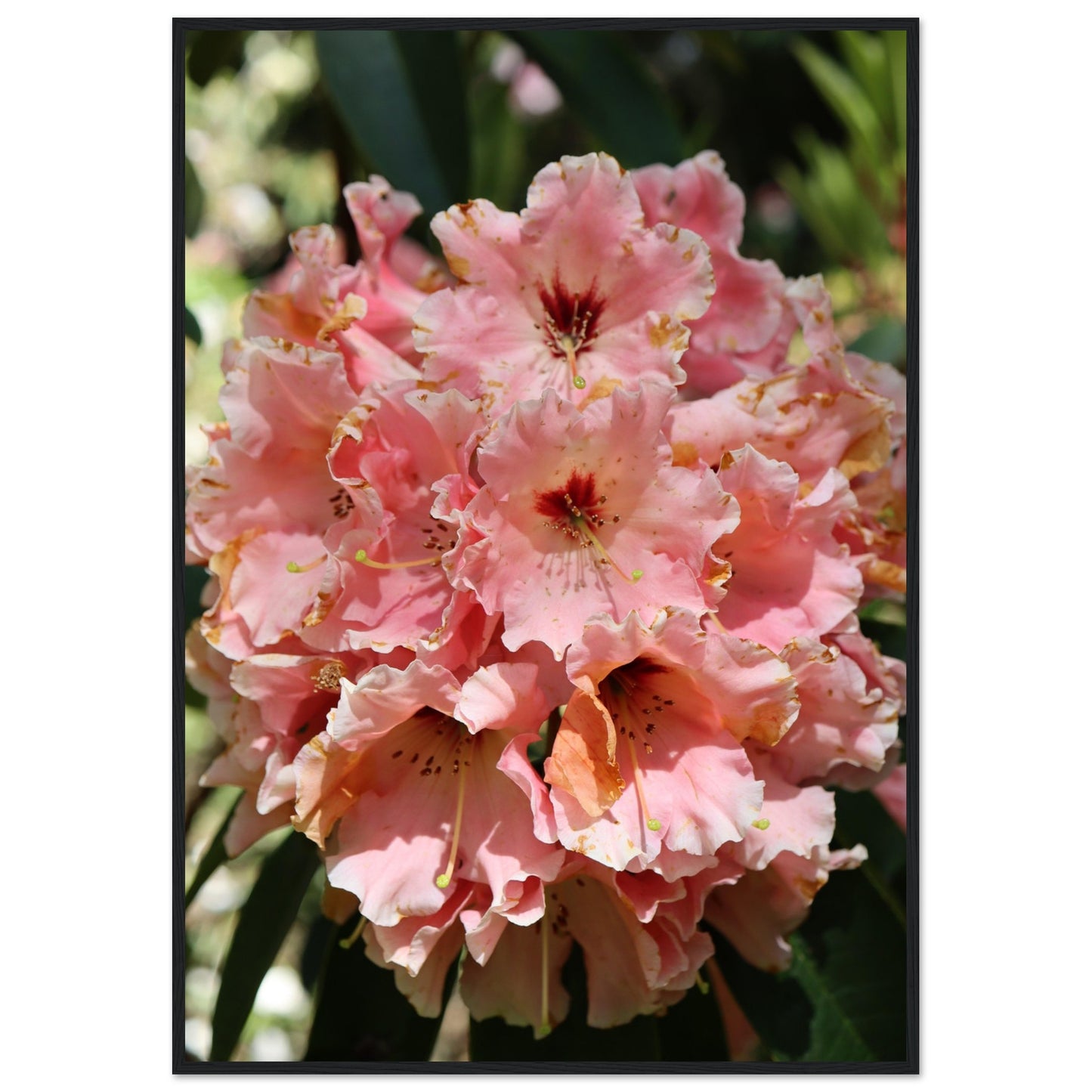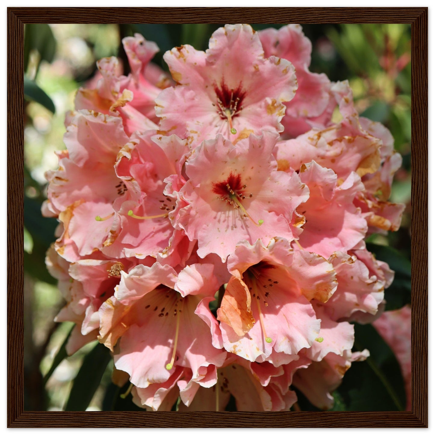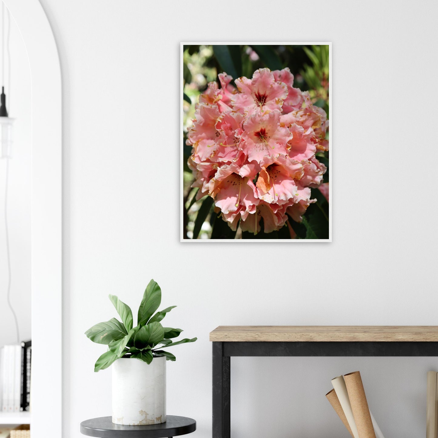 Pink ruffly rhododendrons in bloom - Premium Matte Paper Wooden Framed Poster
