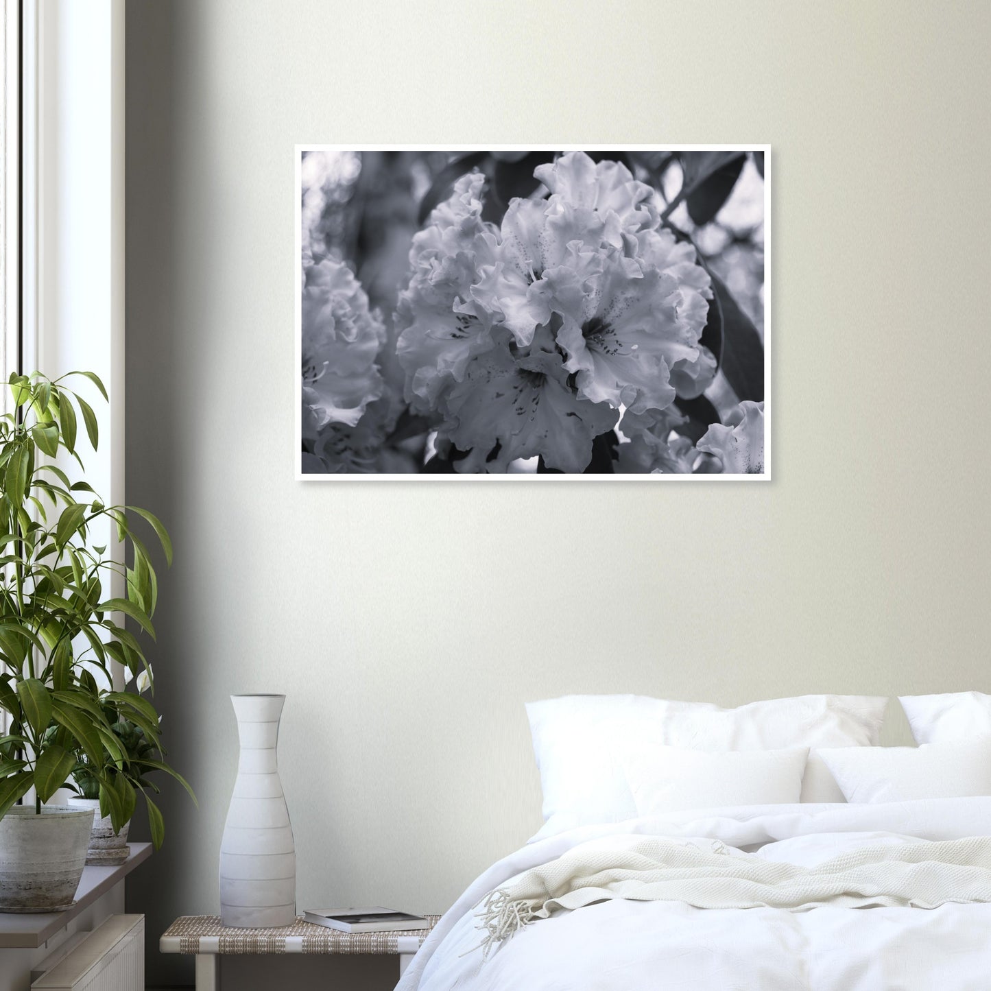 Pink ruffly rhododendrons (B&W) - Premium Matte Paper Poster