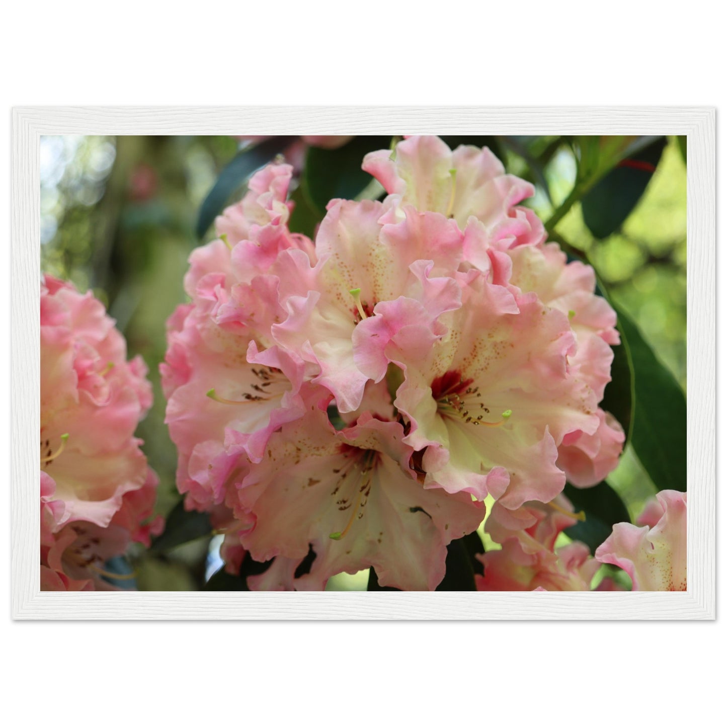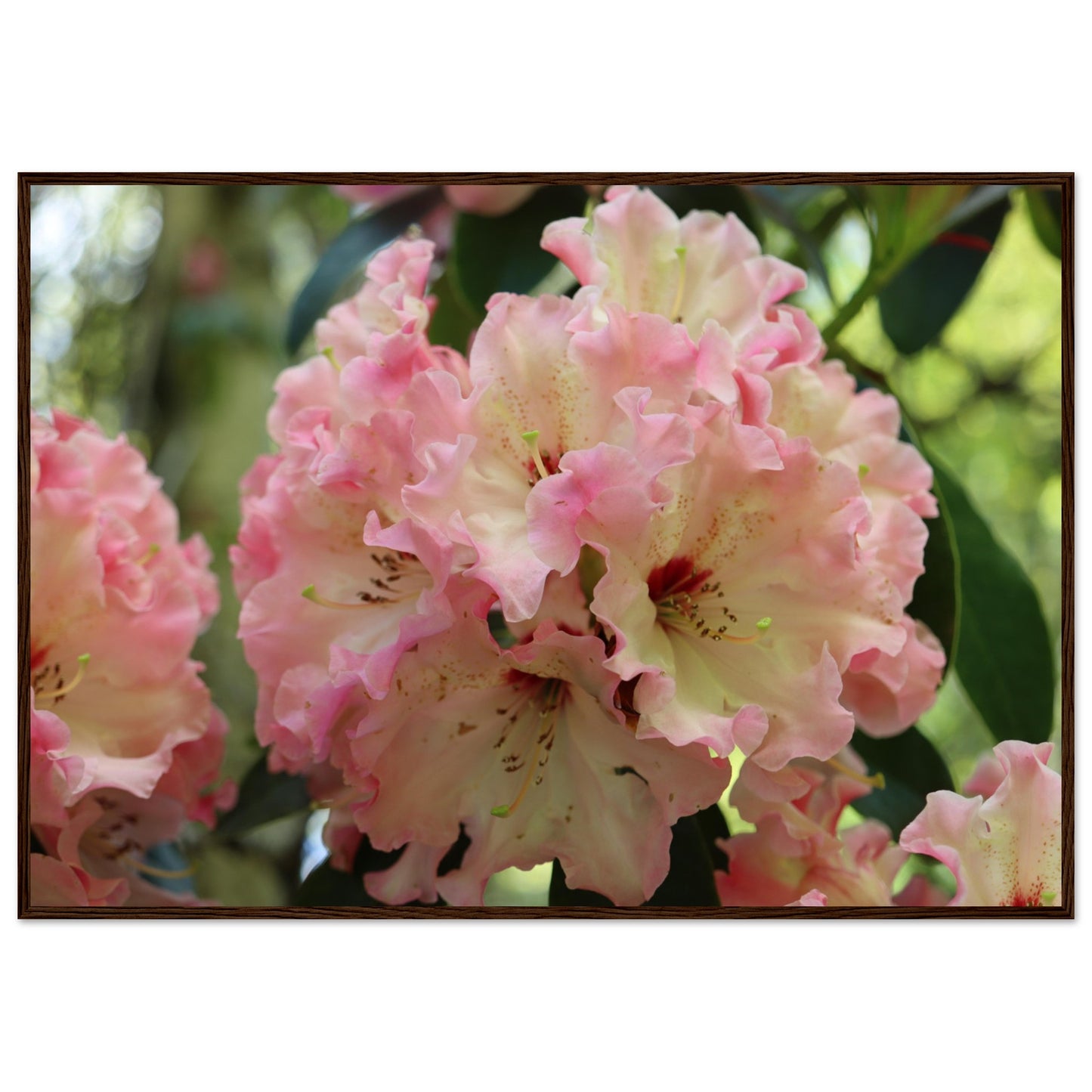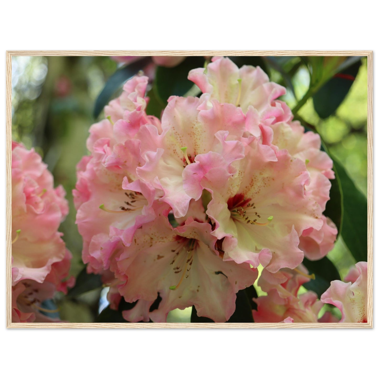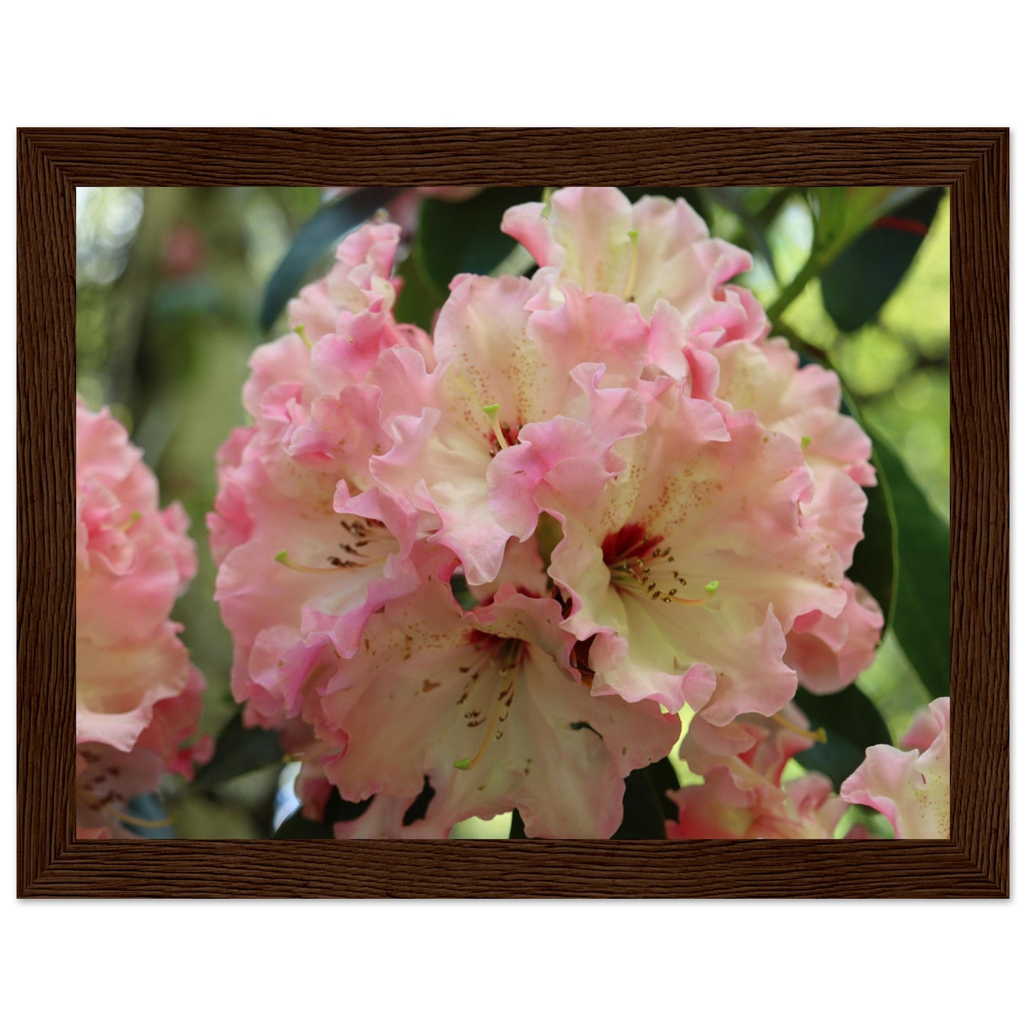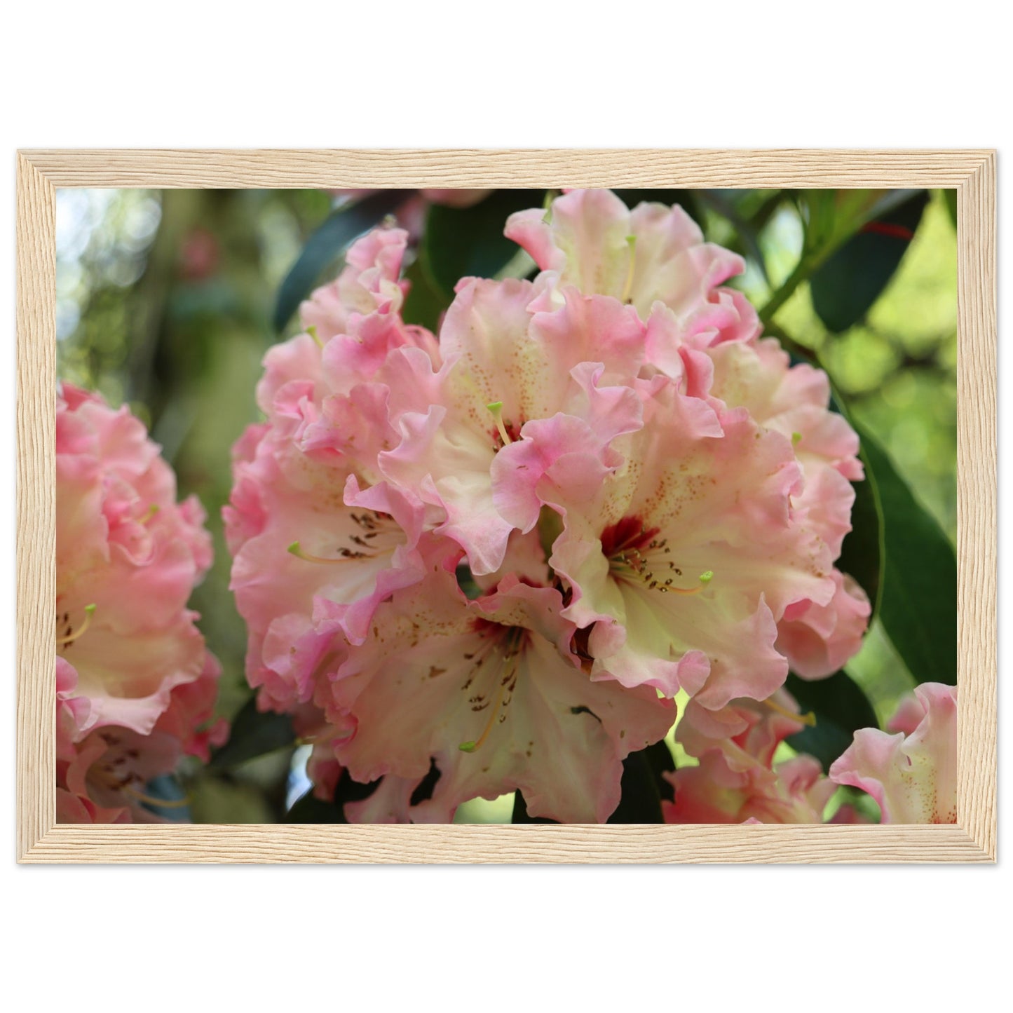 Pink ruffly rhododendrons - Premium Matte Paper Wooden Framed Poster