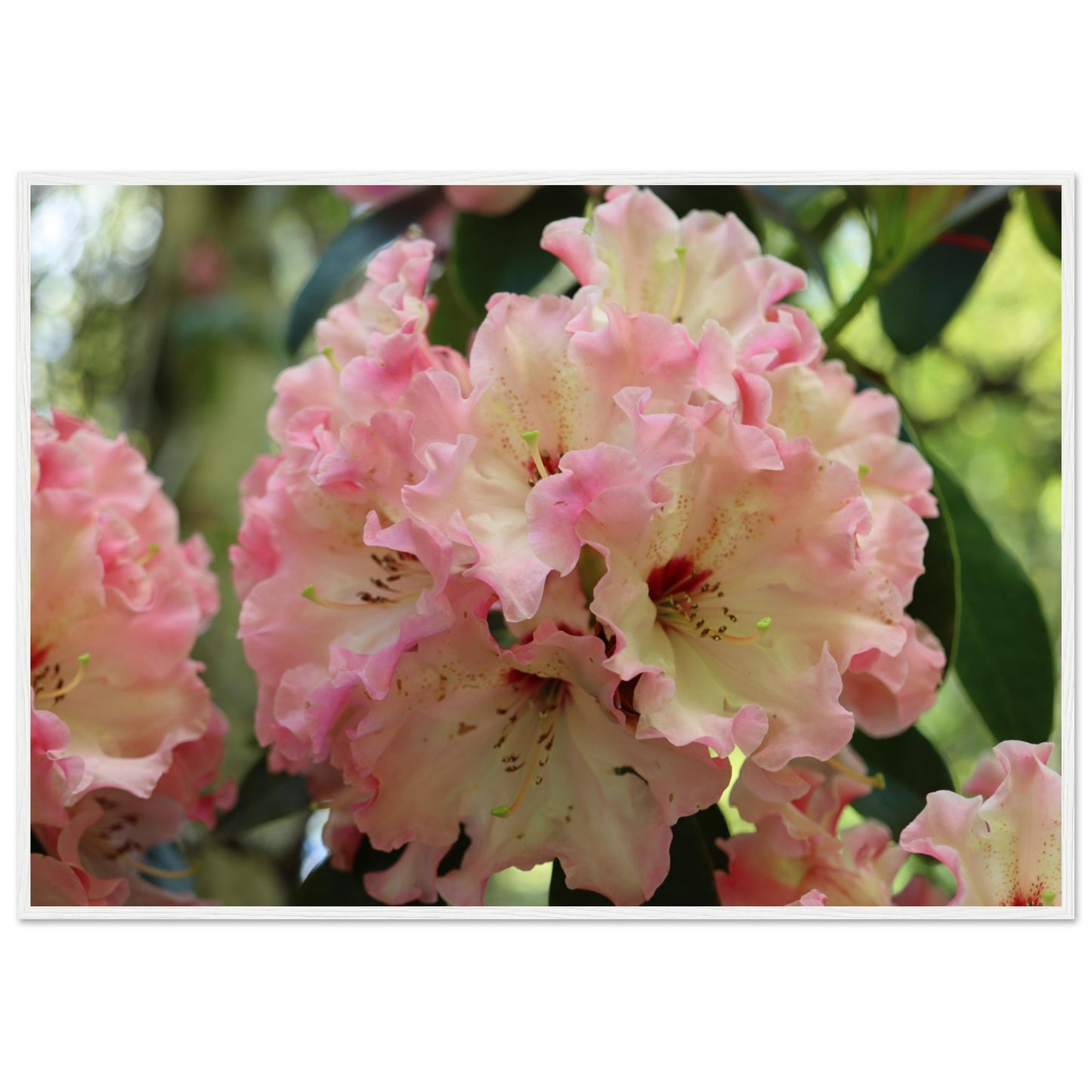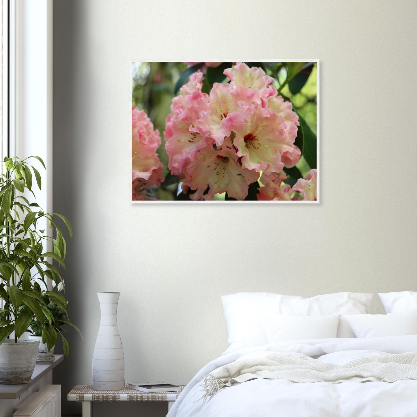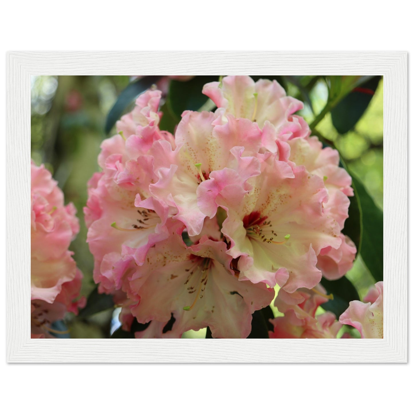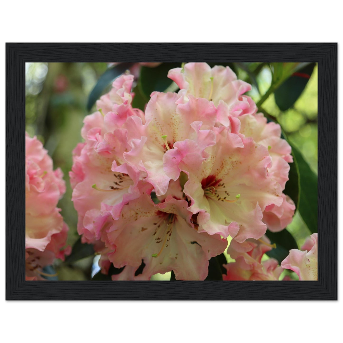 Pink ruffly rhododendrons - Premium Matte Paper Wooden Framed Poster