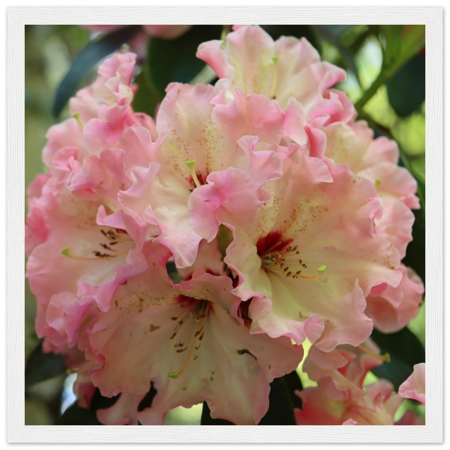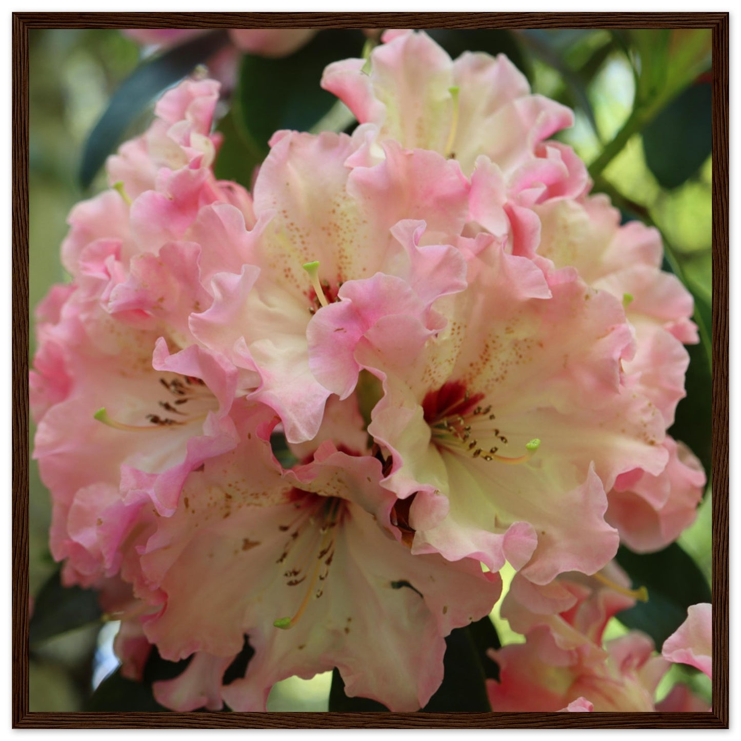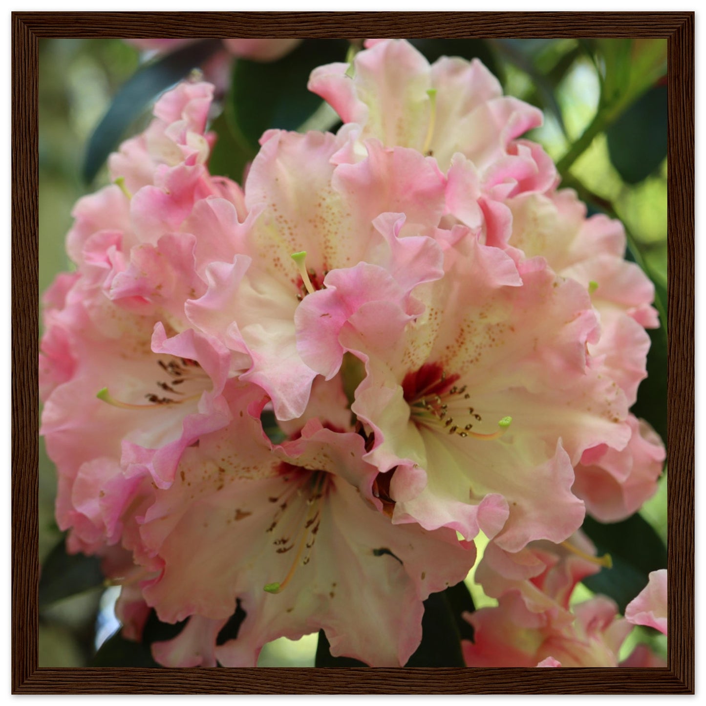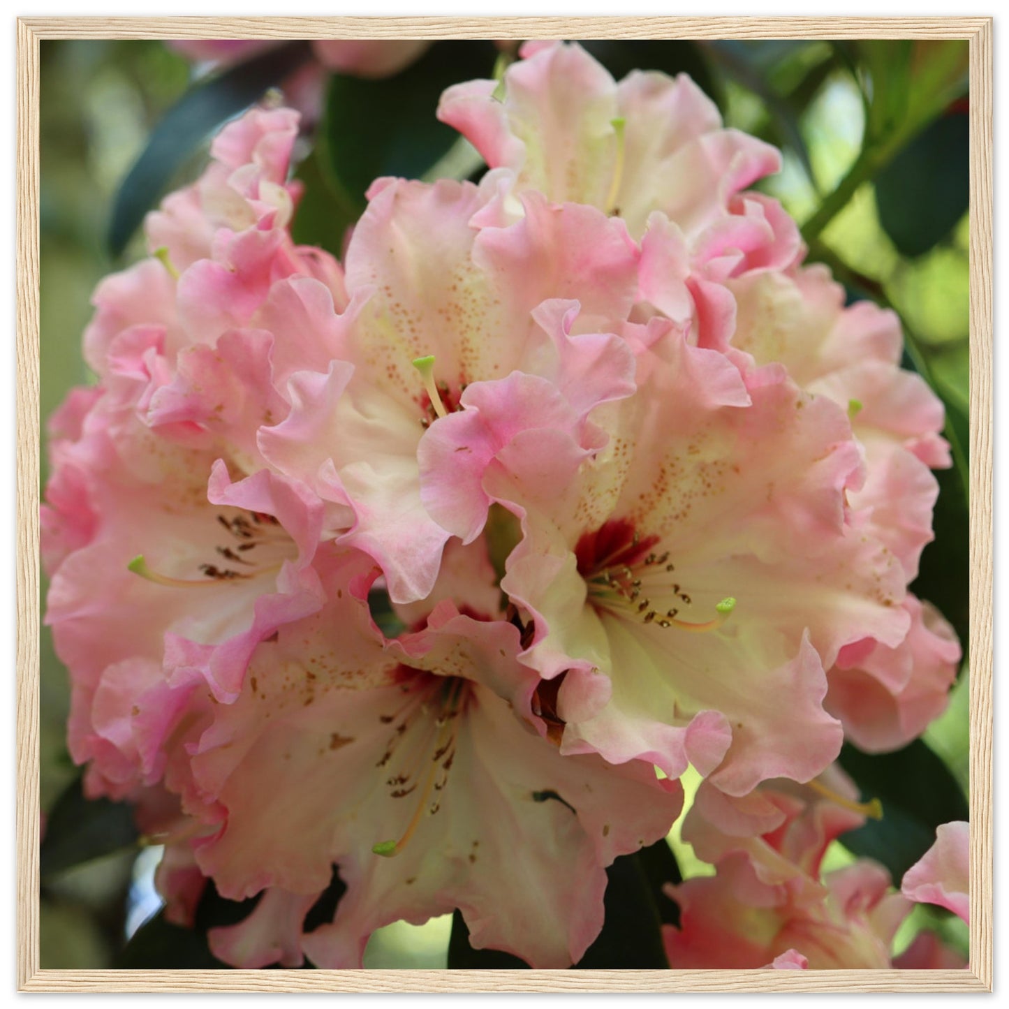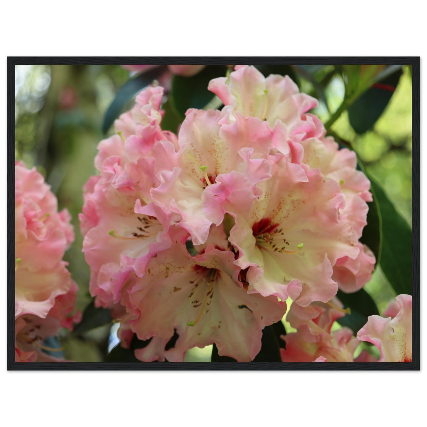Pink ruffly rhododendrons - Premium Matte Paper Wooden Framed Poster