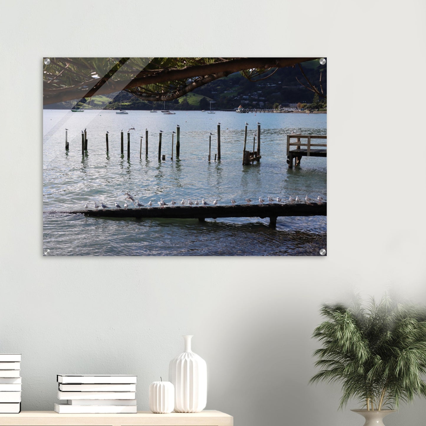Row of seagulls, Akaroa - Acrylic prints (lightweight, shatterproof, and temperature-resistant, making them easy to mount on your walls.)