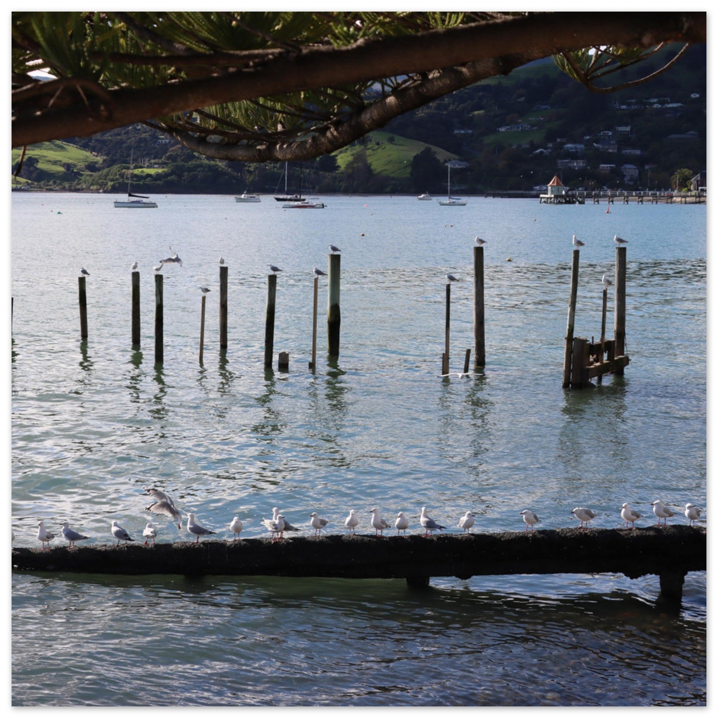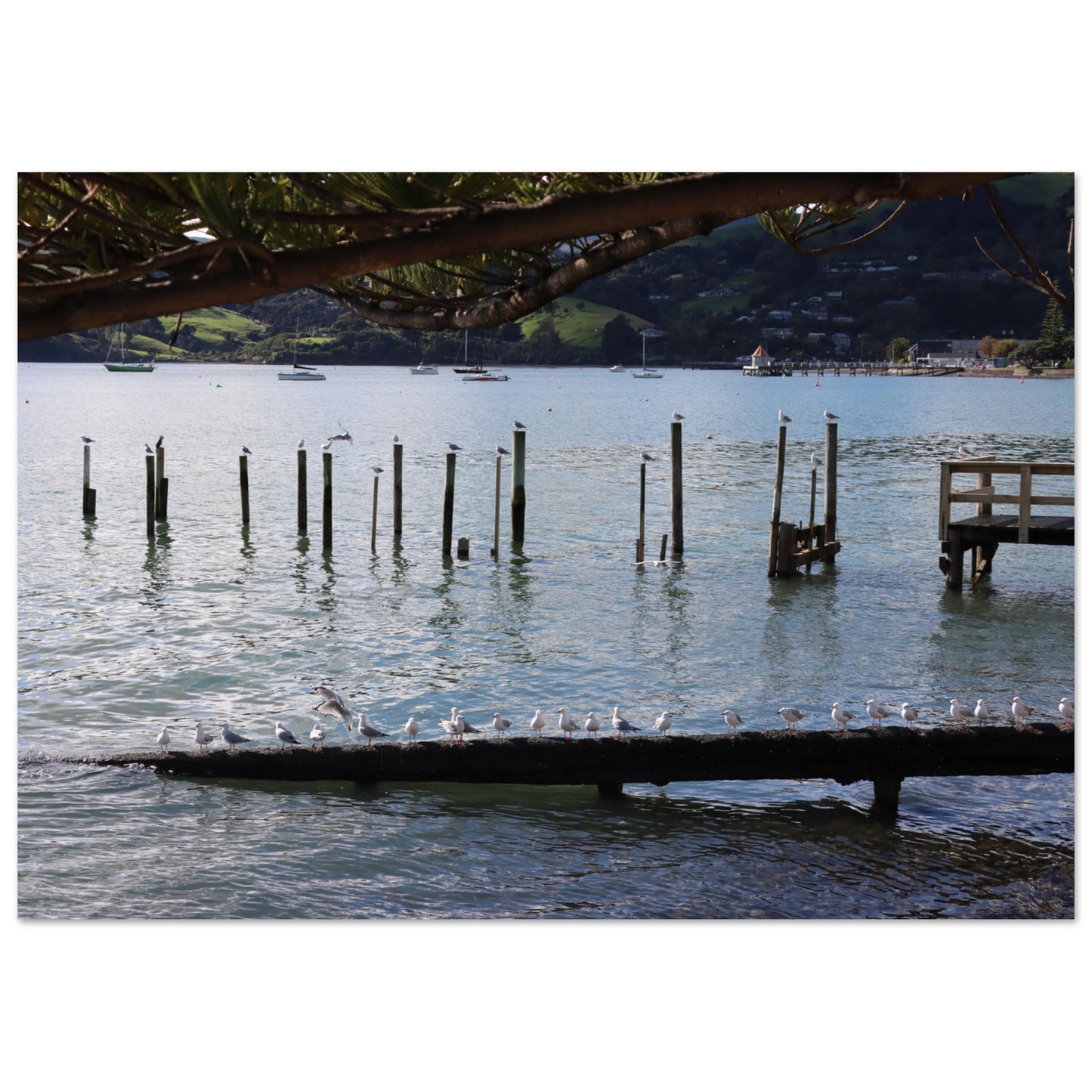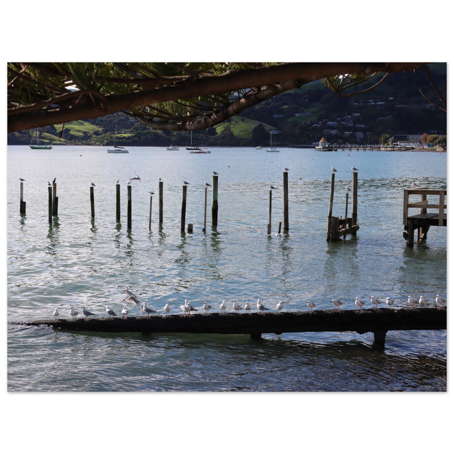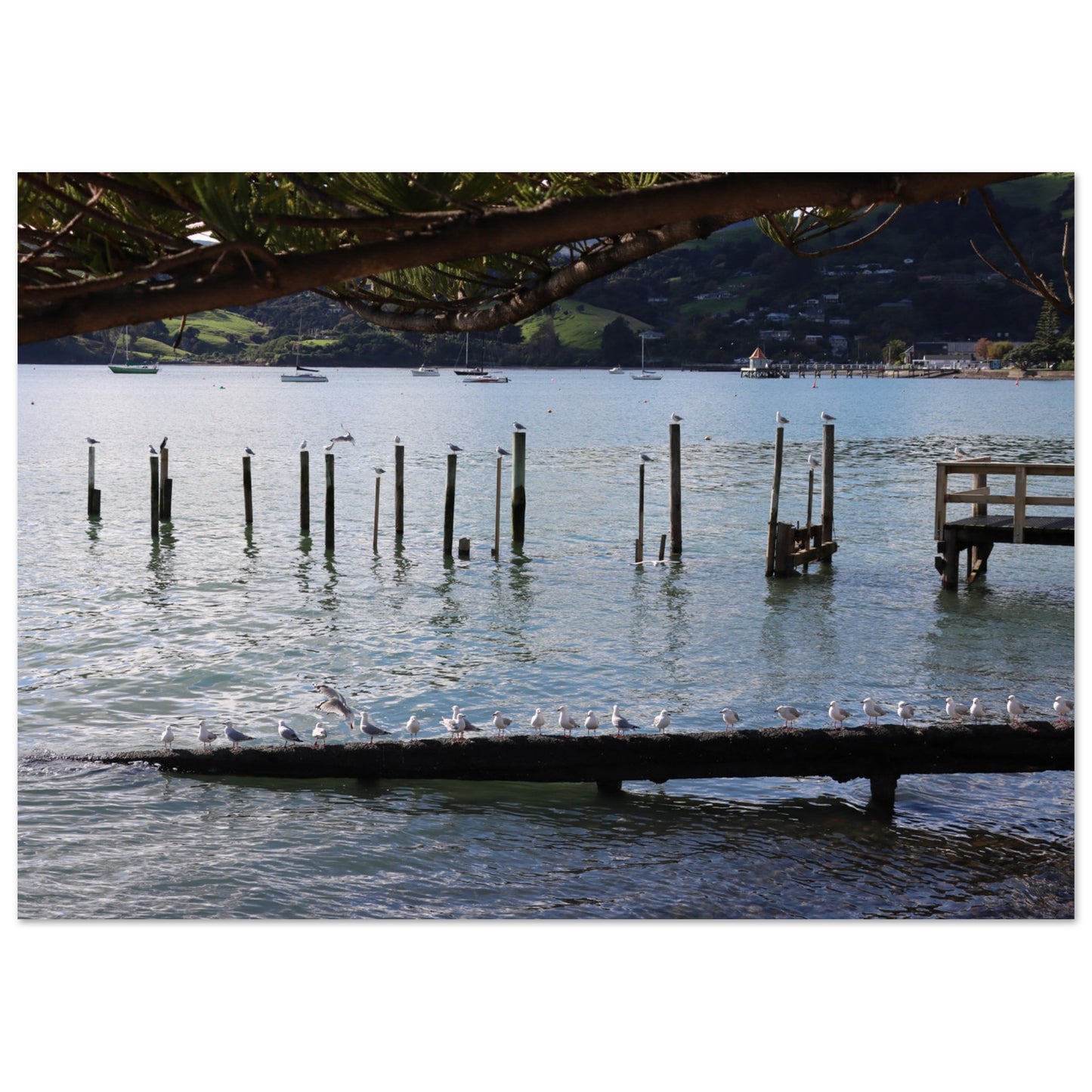 Row of seagulls, Akaroa - Premium Matte Paper Poster