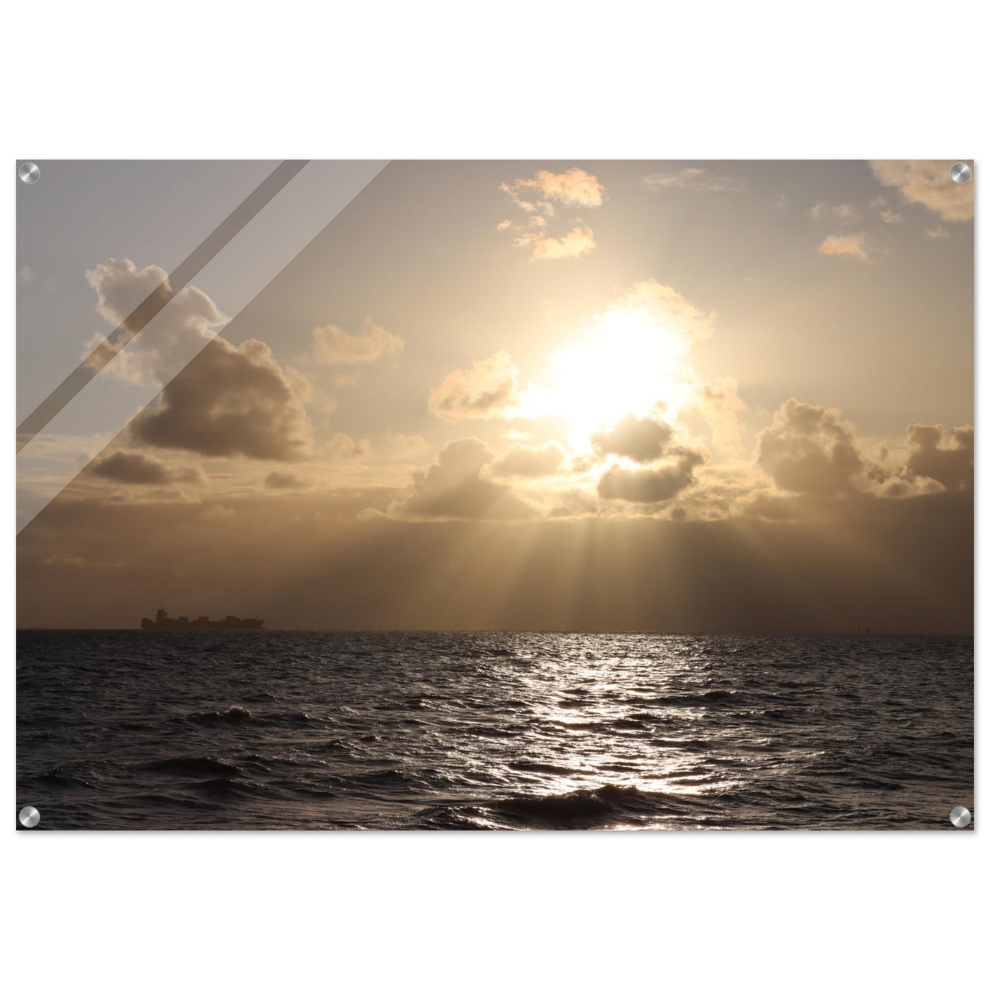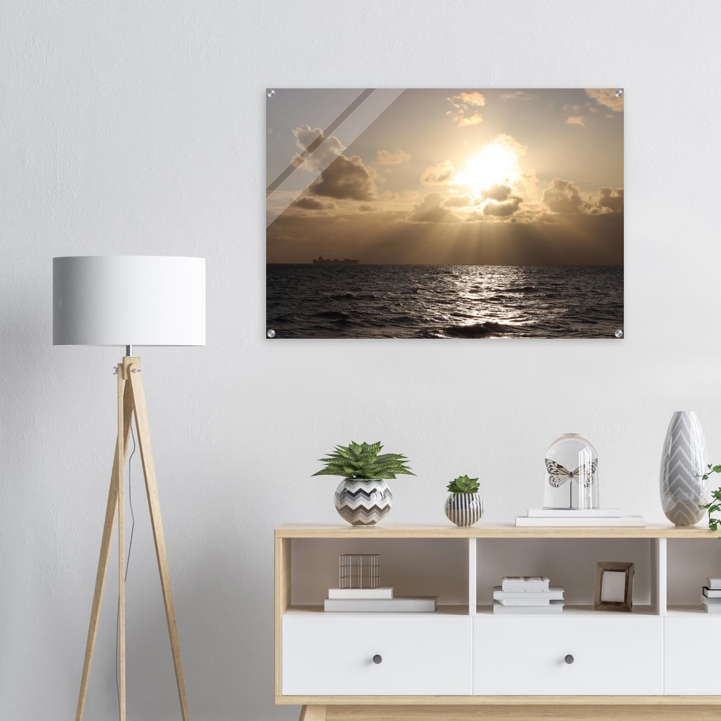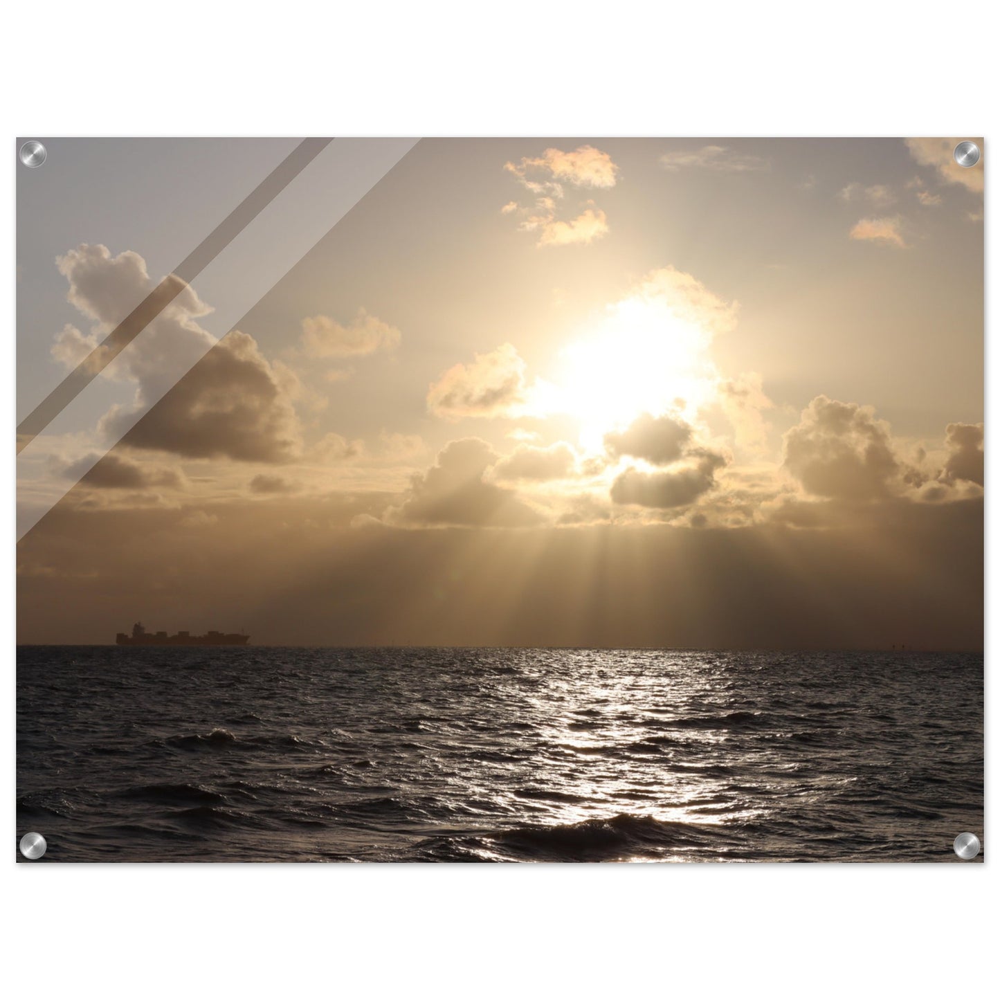 Ship sailing into sunset - Acrylic prints (lightweight, shatterproof, and temperature-resistant, making them easy to mount on your walls.)