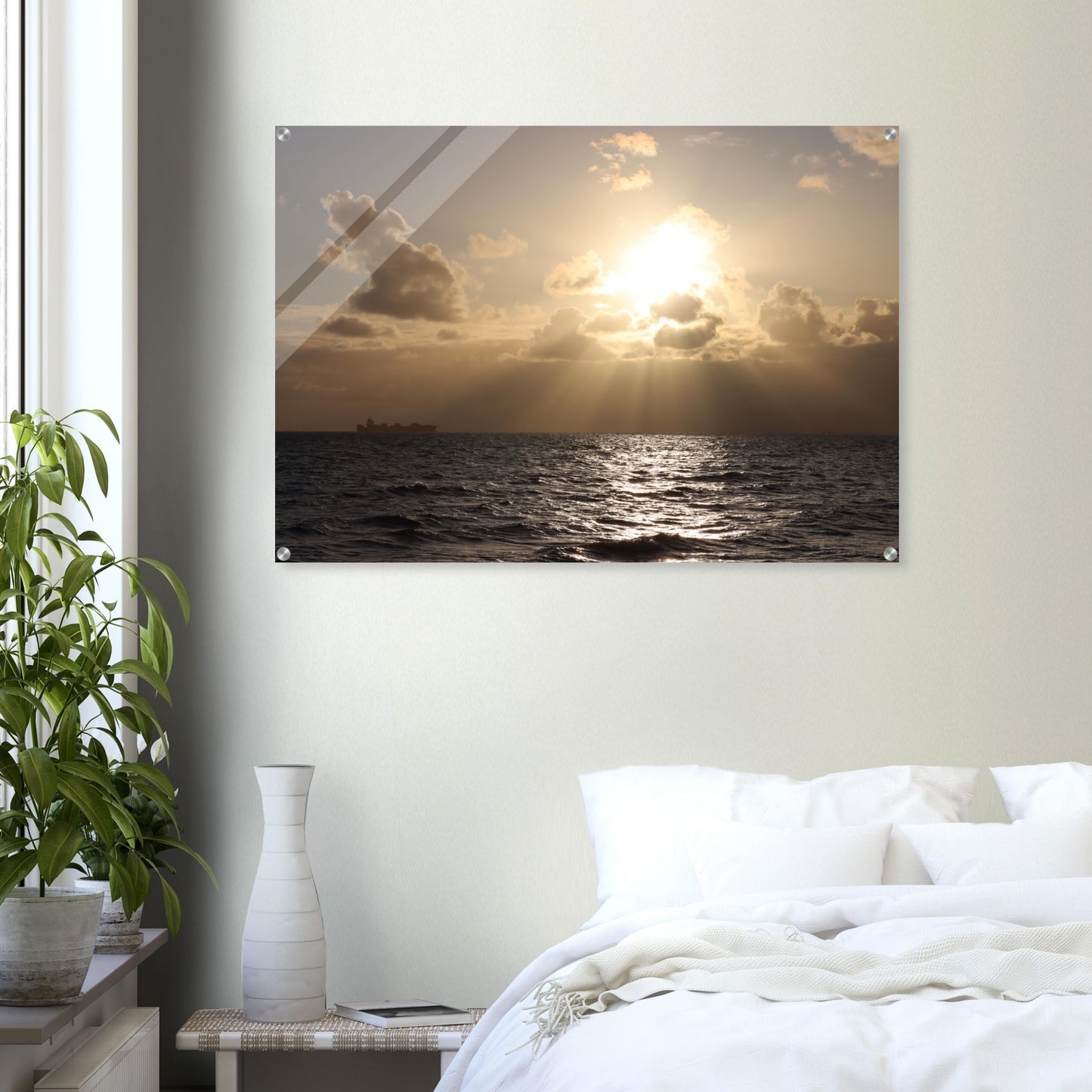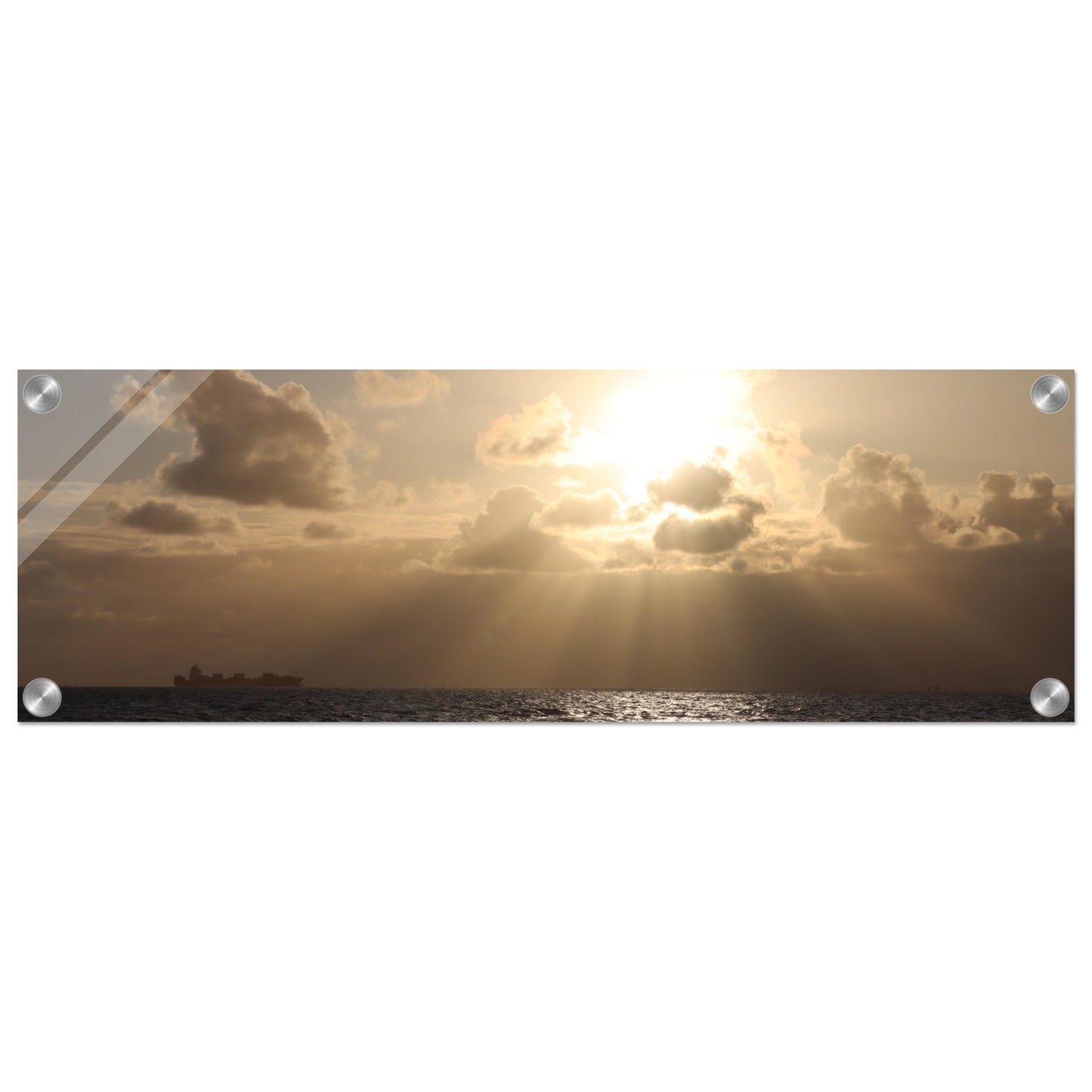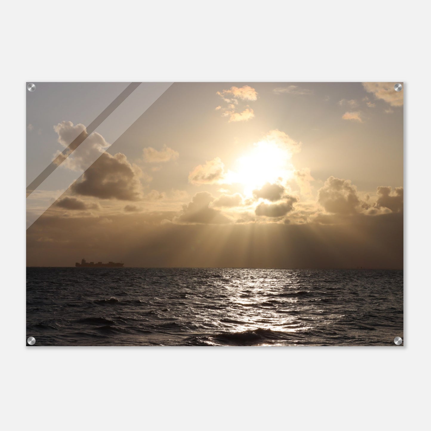 Ship sailing into sunset - Acrylic prints (lightweight, shatterproof, and temperature-resistant, making them easy to mount on your walls.)