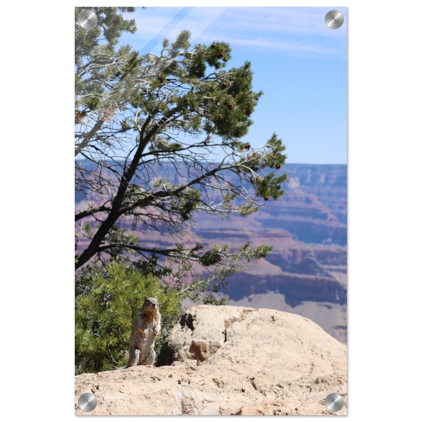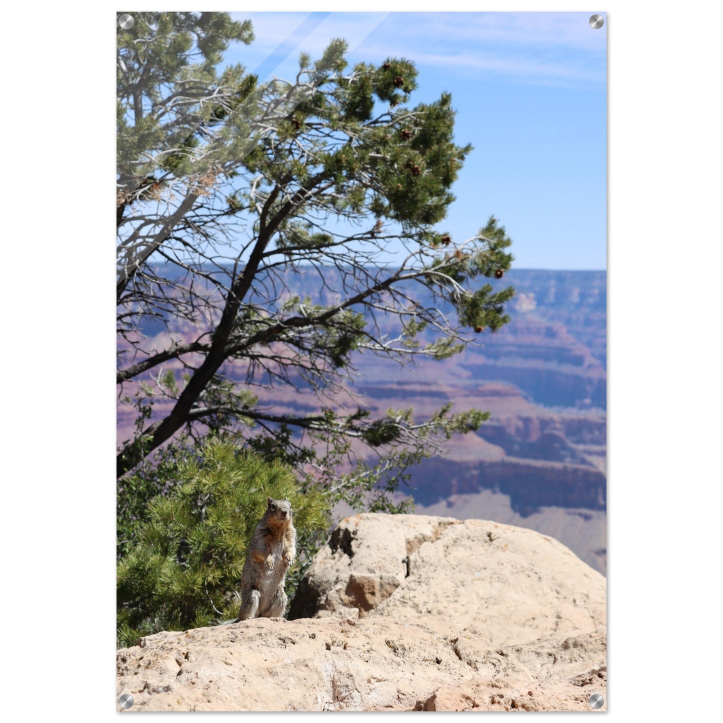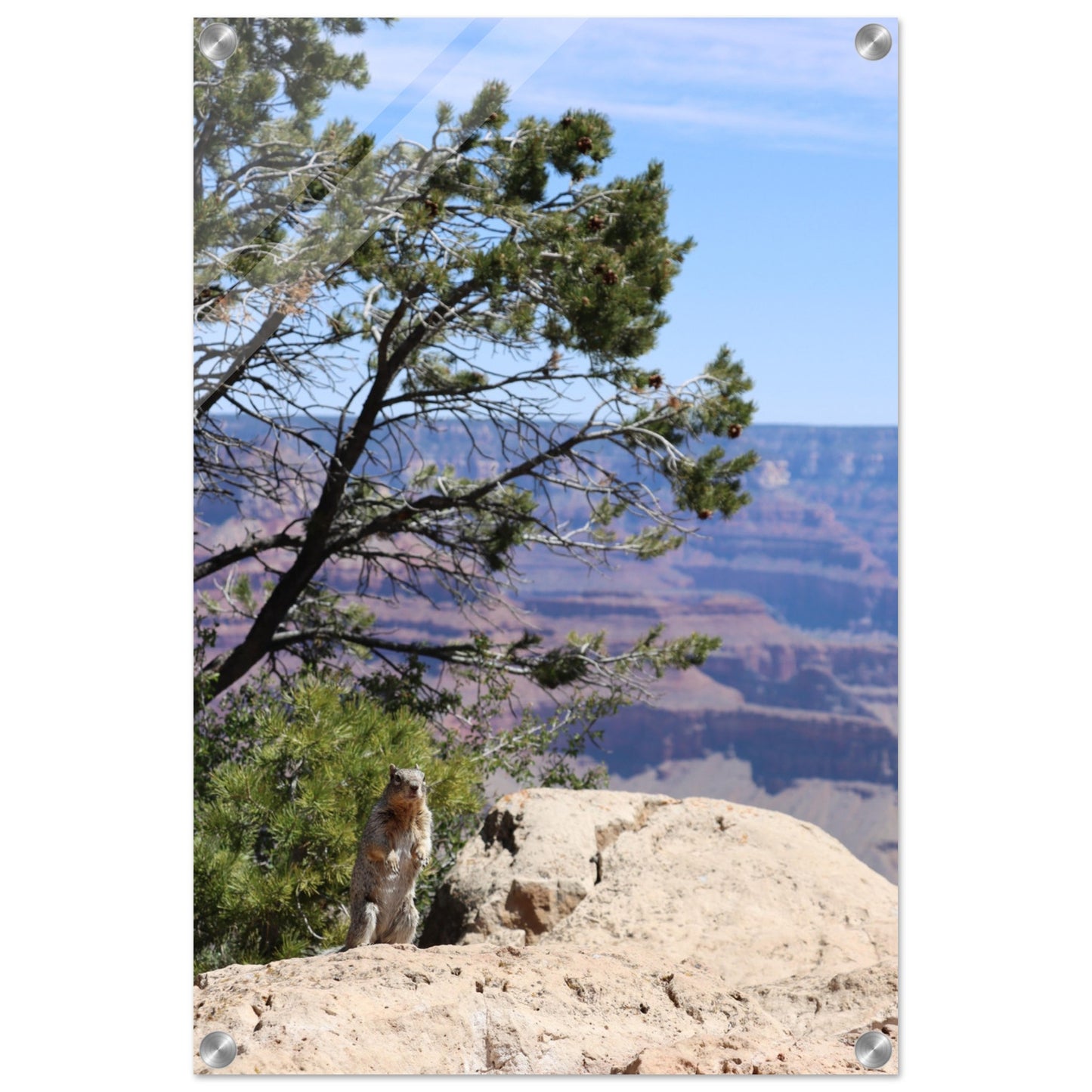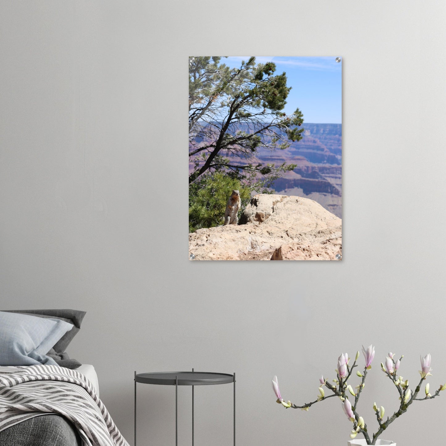 Squirrel by the canyon - Acrylic print (lightweight, shatterproof, and temperature-resistant, making them easy to mount on your walls.)