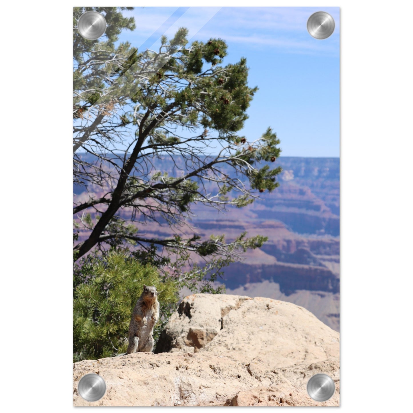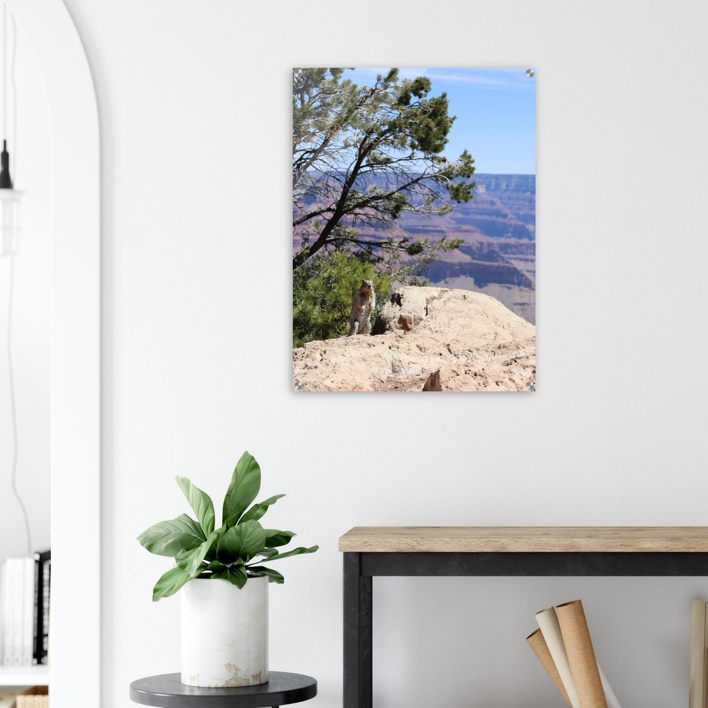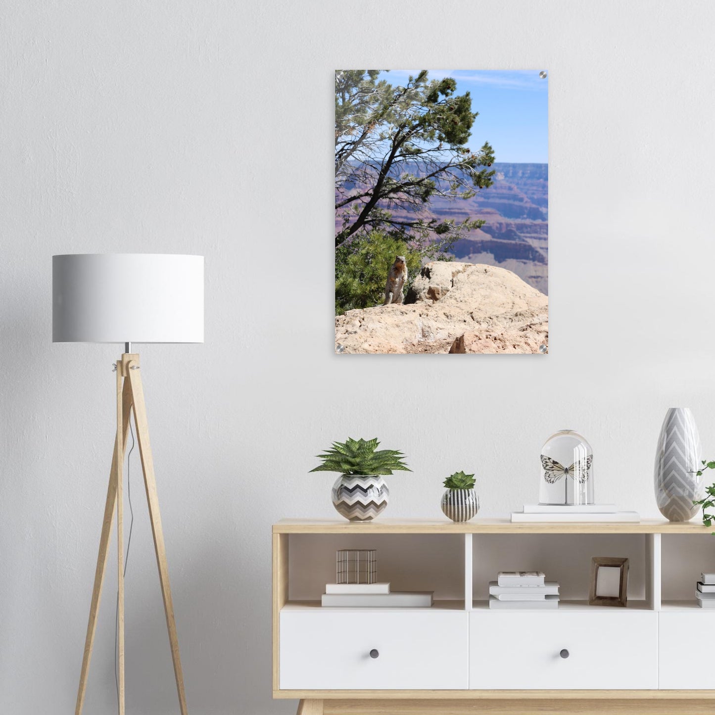 Squirrel by the canyon - Acrylic print (lightweight, shatterproof, and temperature-resistant, making them easy to mount on your walls.)