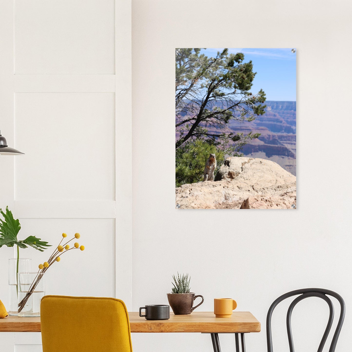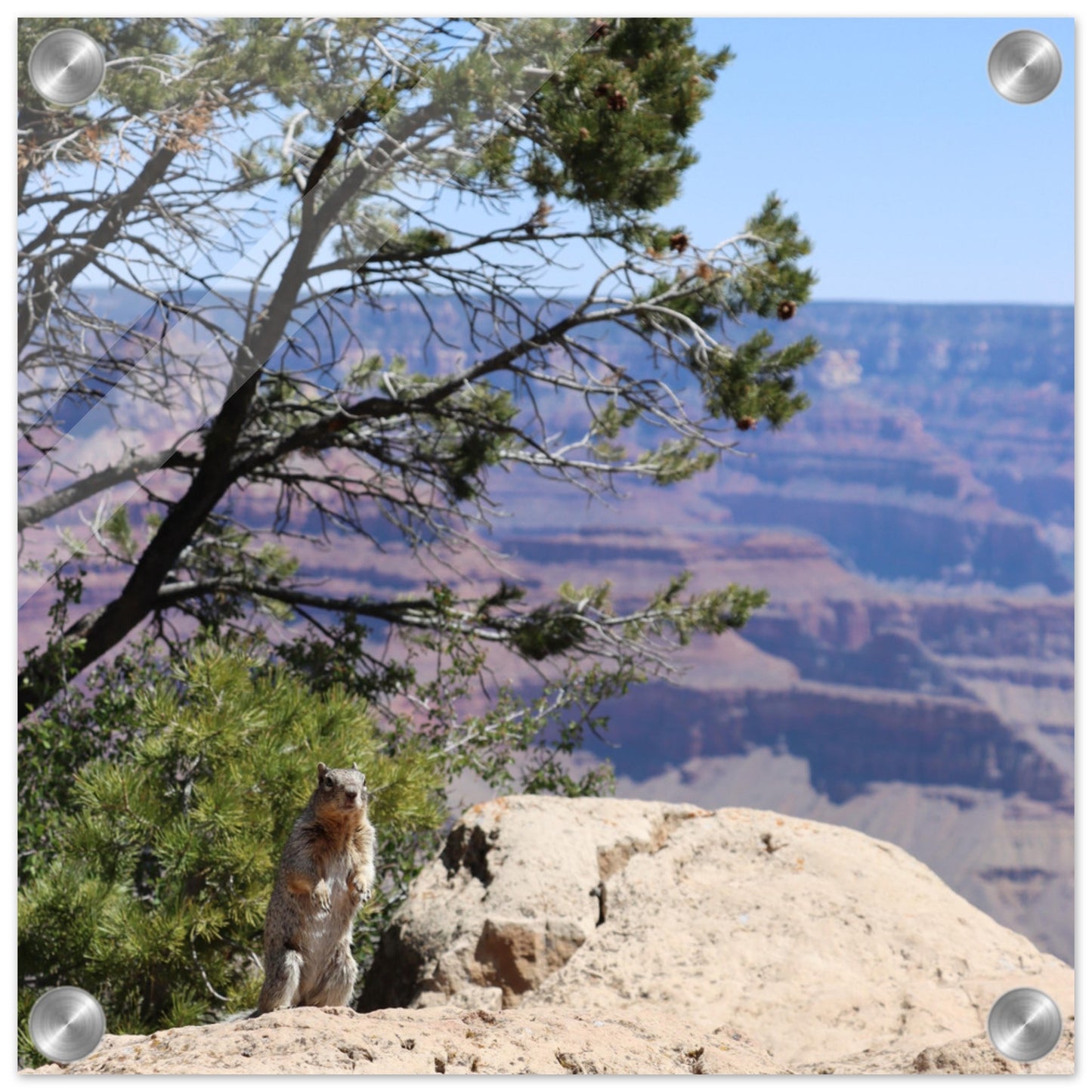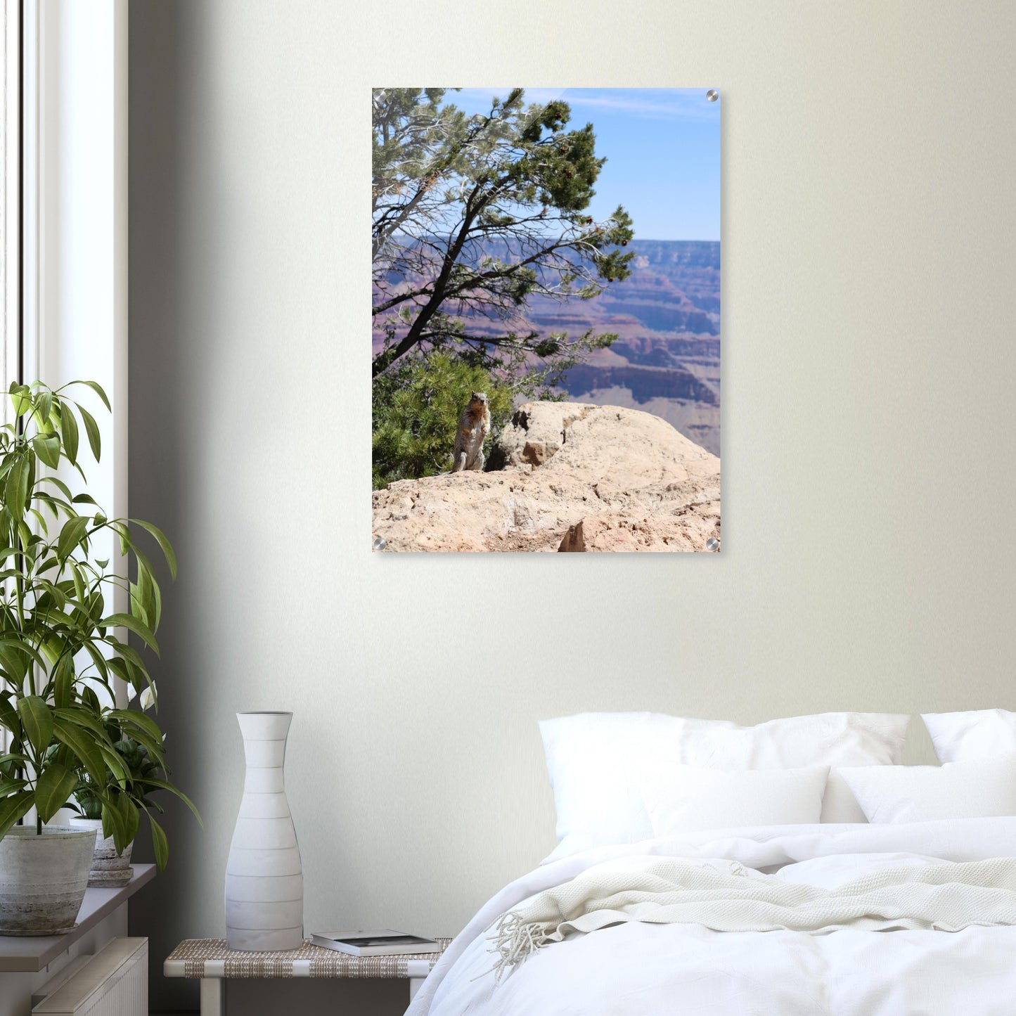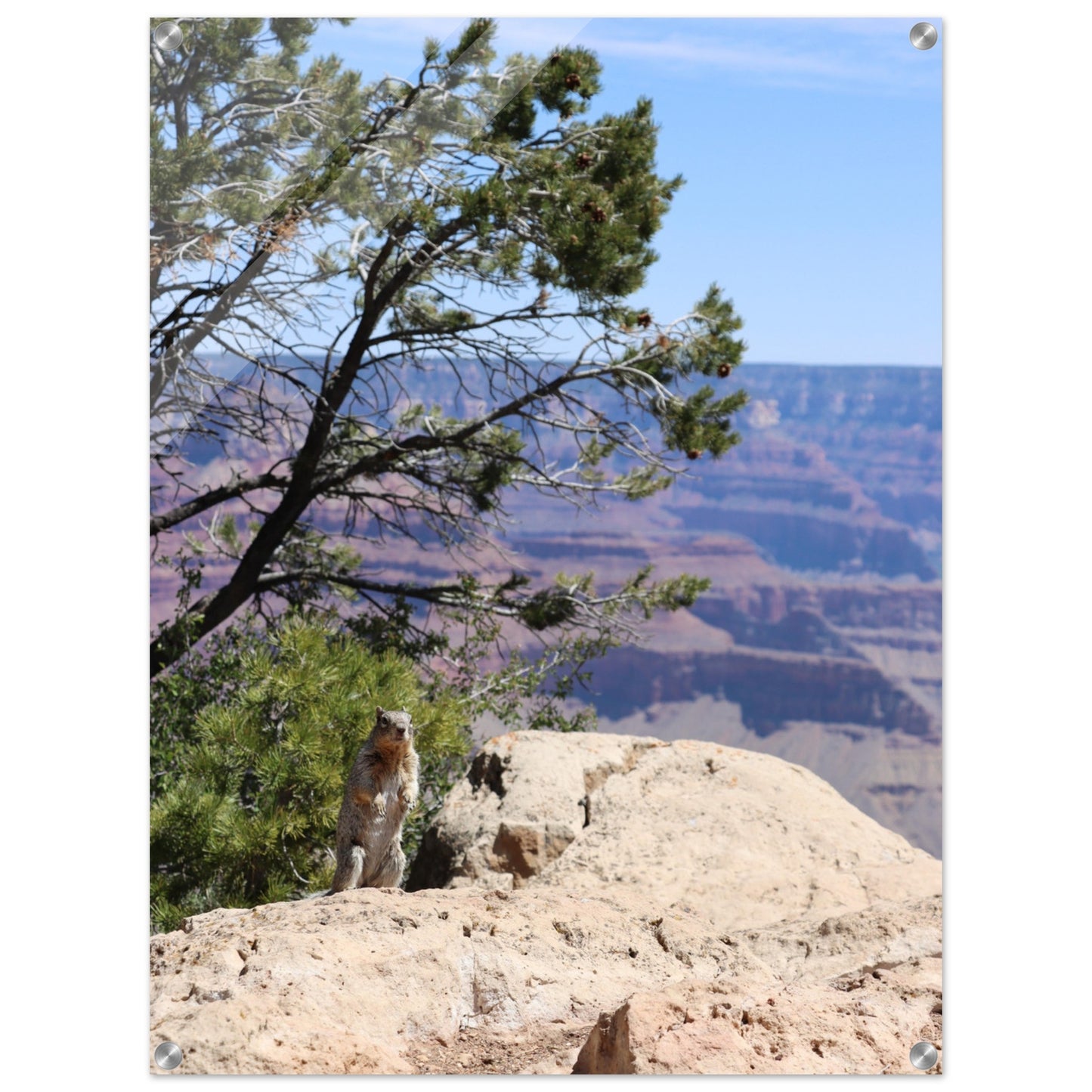 Squirrel by the canyon - Acrylic print (lightweight, shatterproof, and temperature-resistant, making them easy to mount on your walls.)